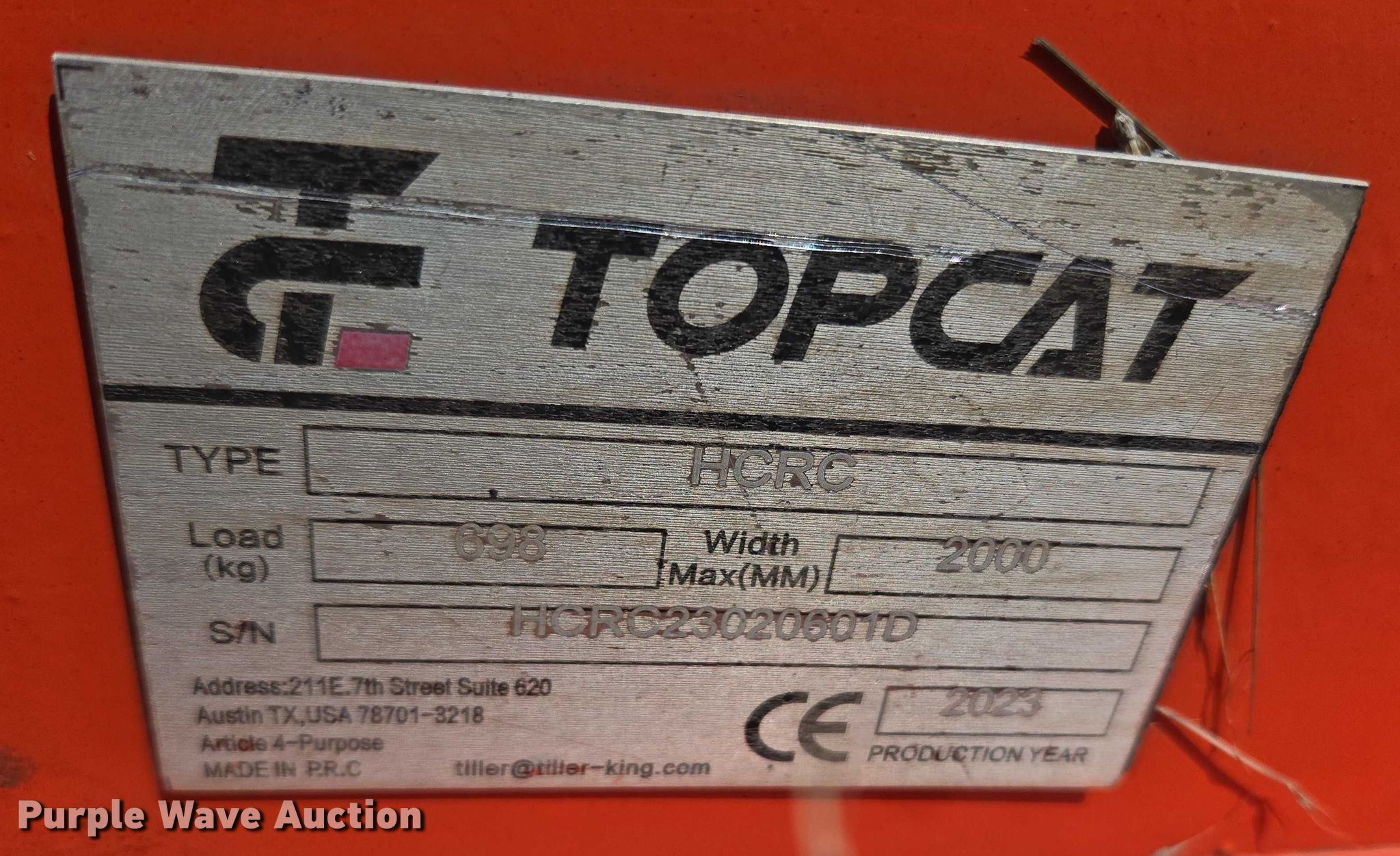 Purple Wave is selling a used Skid Steer Attach. in Oklahoma. This item is a 2023 Top Cat HCRC skid steer rotary mower with the following: Serial: HCRC23020601D, Width: 5' 11"