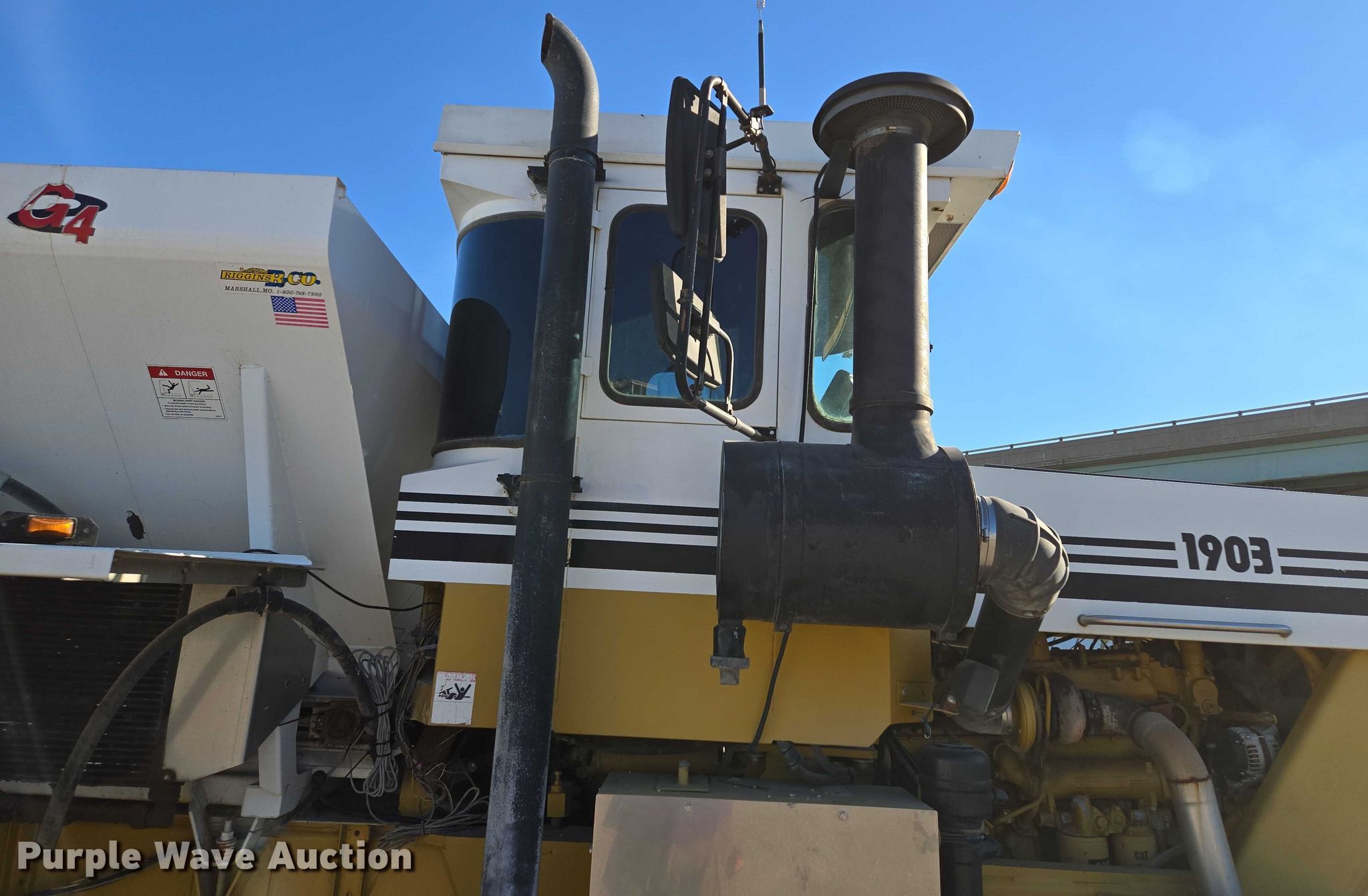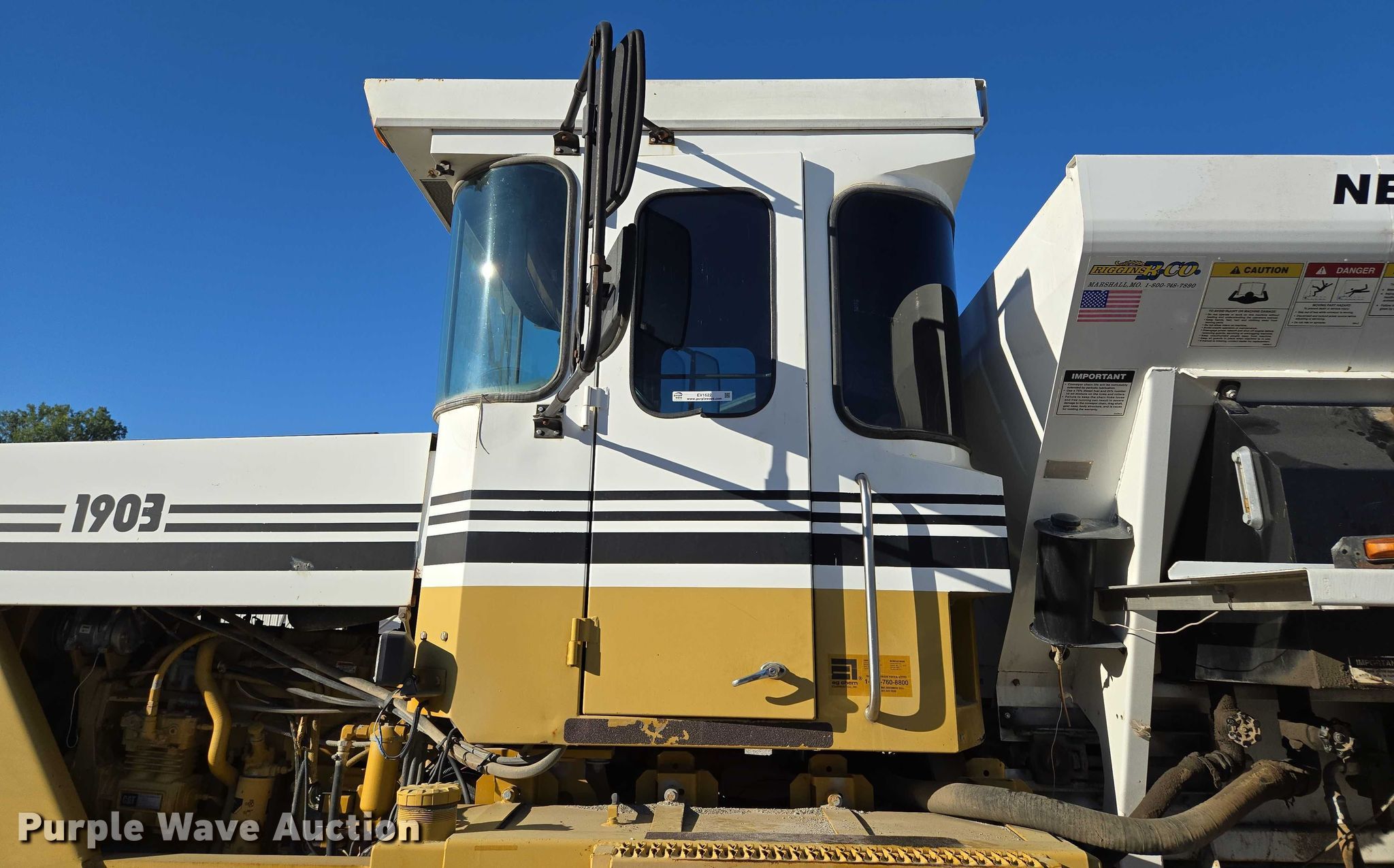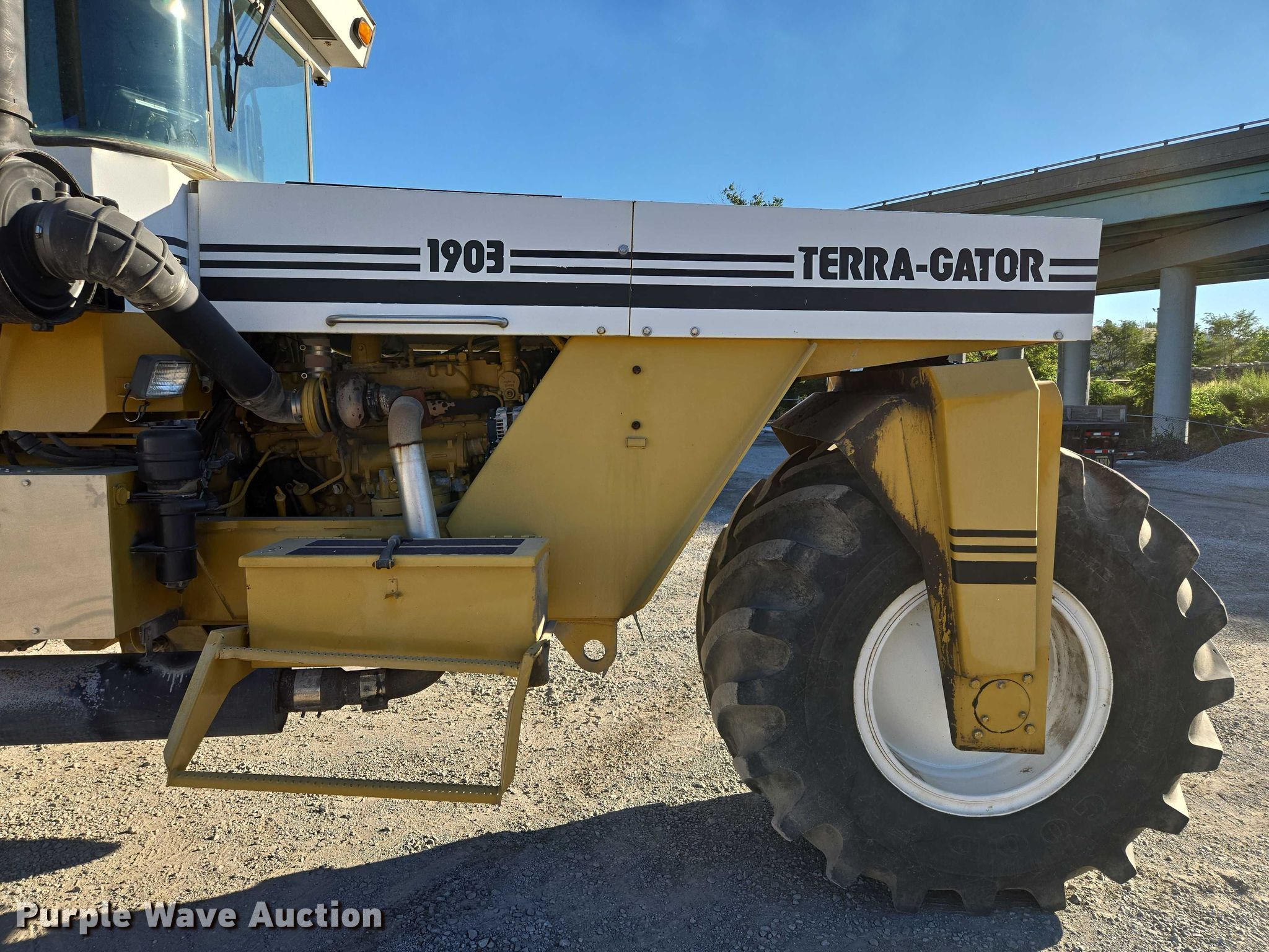 1997 TerraGator 1903 spreader. Miles: 28,746 on odometer, Engine hours: 4,045 on meter, Serial: 1902807. Engine Caterpillar, Cylinders: 6, Fuel type: Diesel. Transmission Eaton Fuller, Manual, 18F - 4R. Operators station AC, Heat. Features Dry fertilizer spreader bed Highway Equipment Company L3220G4-13, Serial: 120419, Length: 13', Dual spinners, Conveyor belt Width: 24", Electronics GPS monitor AG Leader.. Tires Size: VA73x44.00-32. Notes Unknown operating condition of AC, Hydraulic leak. MFA Inc. Saint Joseph, MO 64501
