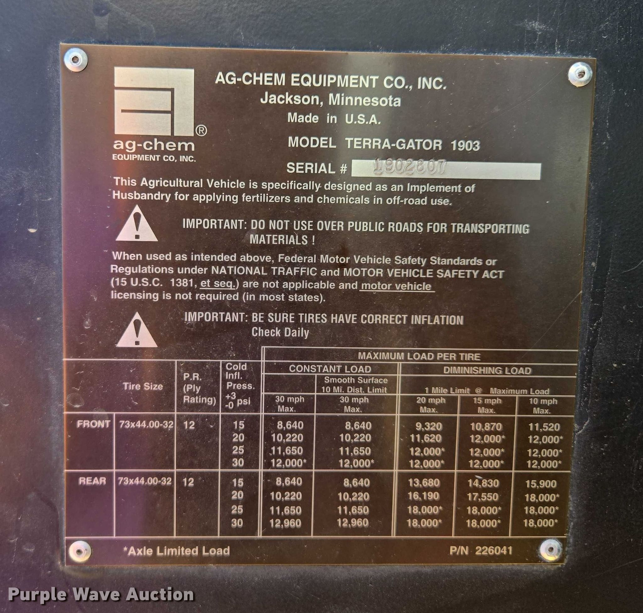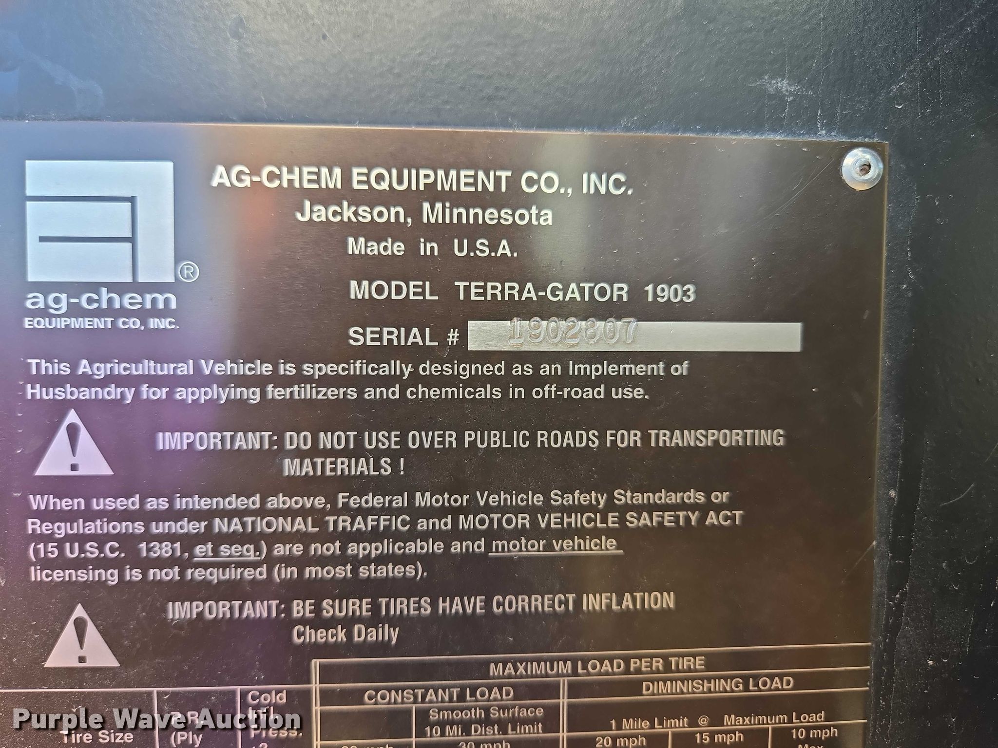 Purple Wave is selling a used Applicator Self Propelled in Missouri. This item is a 1997 TerraGator 1903 spreader with the following: Miles: 28,746 on odometer, Engine hours: 4,045 on meter, Serial: 1902807