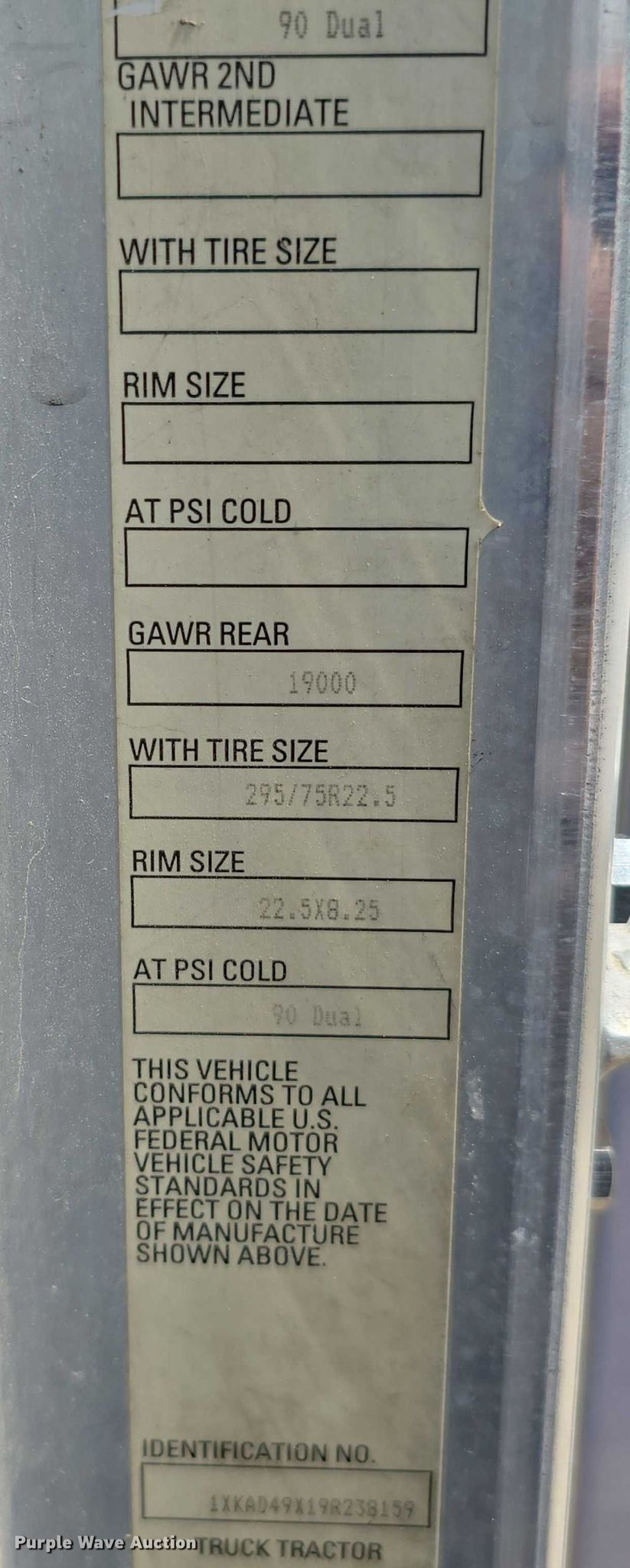 - VIN: 1XKAD49X19R238159