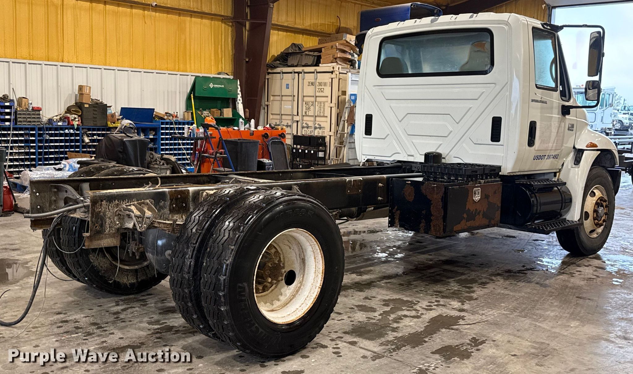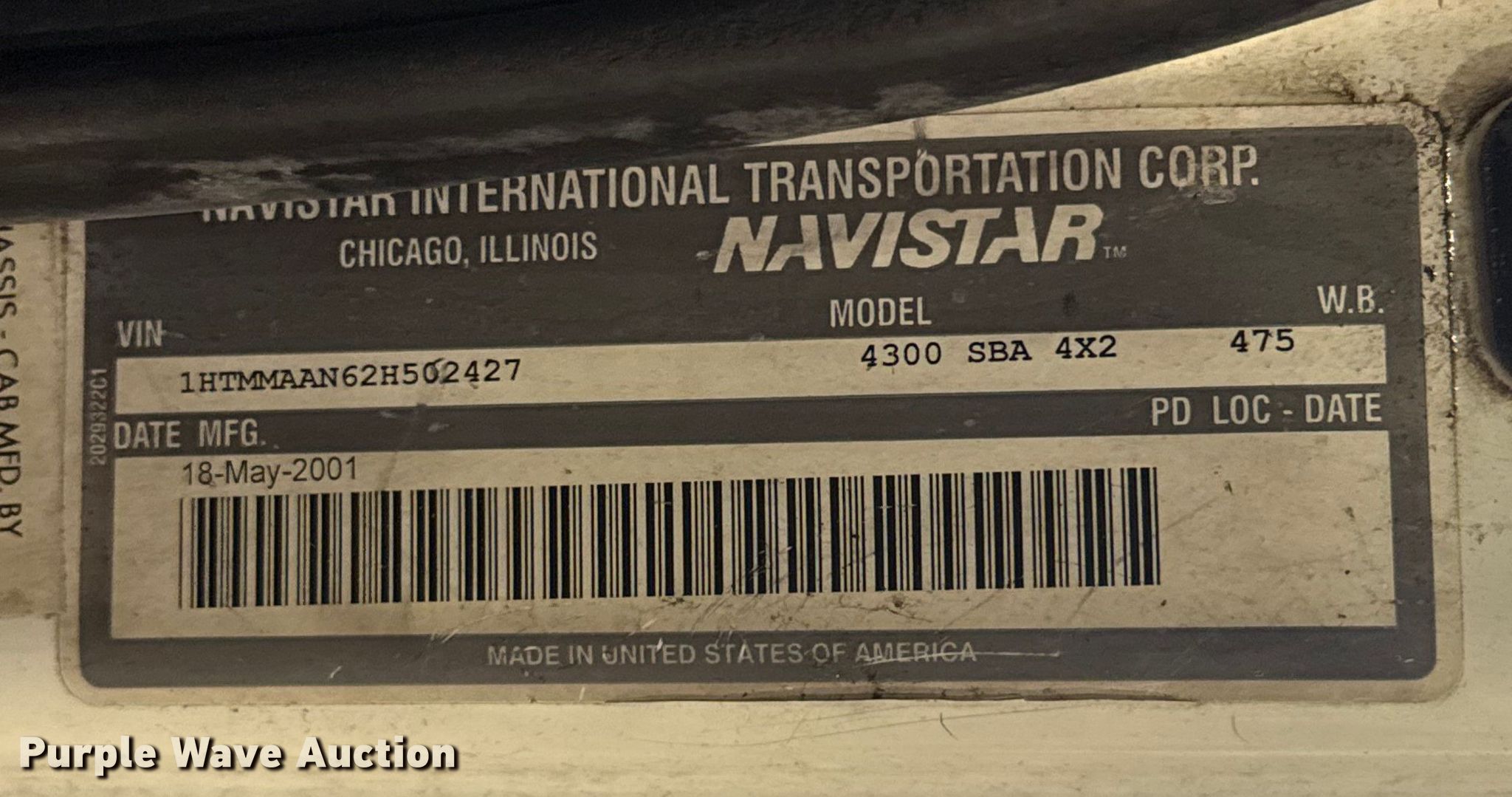 This 2002 International 4300 truck cab and chassis will sell to the highest bidder regardless of price.