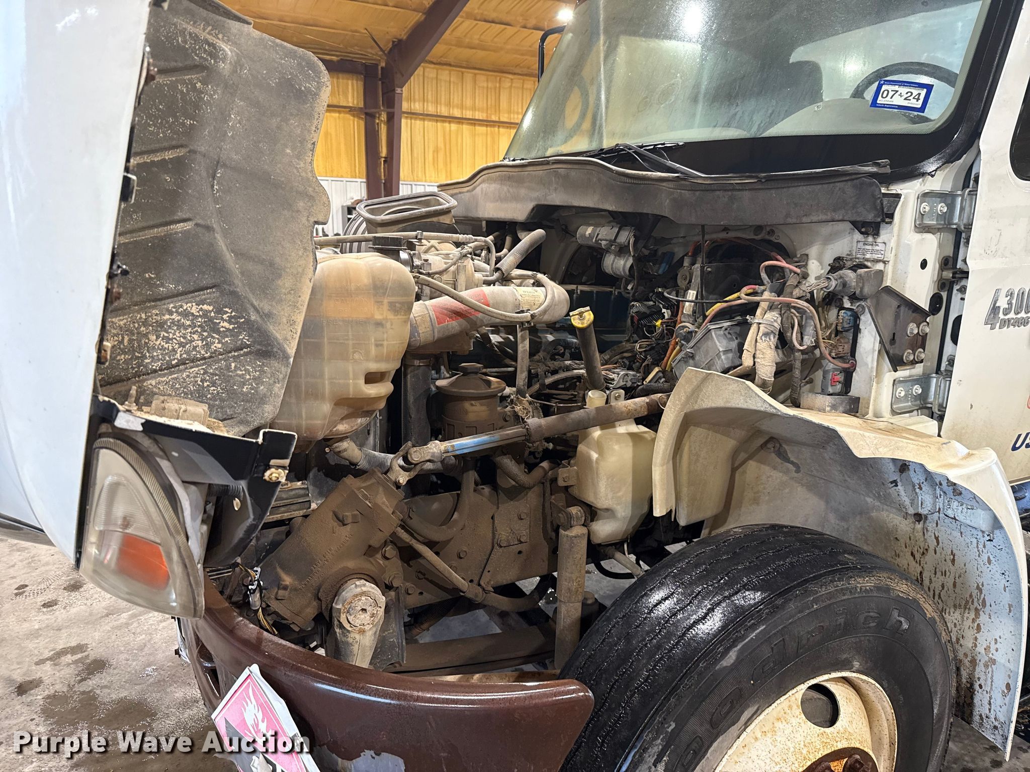 2002 International 4300 truck cab and chassis. Miles: 602,772 on odometer, VIN: 1HTMMAAN62H502427. Engine International DT466, Displacement: 7.6L, Cylinders: 6, Fuel type: Diesel. Transmission Eaton Fuller, Manual, Speed: 6. Chassis Axles: Single, Suspension: Spring, Brakes: Air, PTO, Truck chassis: 13' 1", Wheelbase: 475". Interior AC, Heat, Cruise control. Features Fuel tank: Dual. Tires Size: 11R22.5. Notes Battery not included, Dash warning indicator: ABS, Windshield chipped or cracked. Oklahoma title. Title distribution may be delayed up to 30 days from verification of funds. Cactus Tanks L.L.C.. Chandler, OK 74834