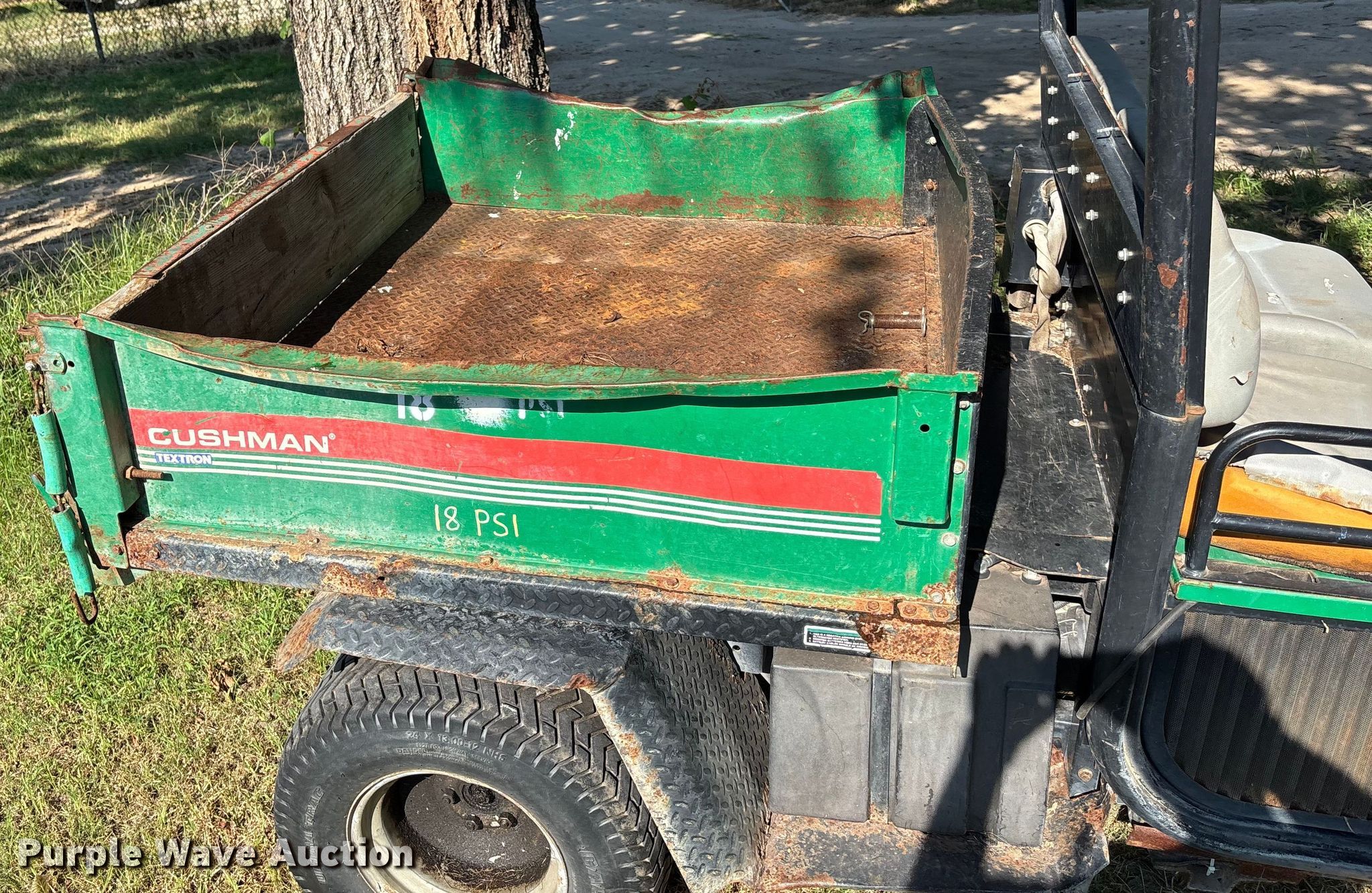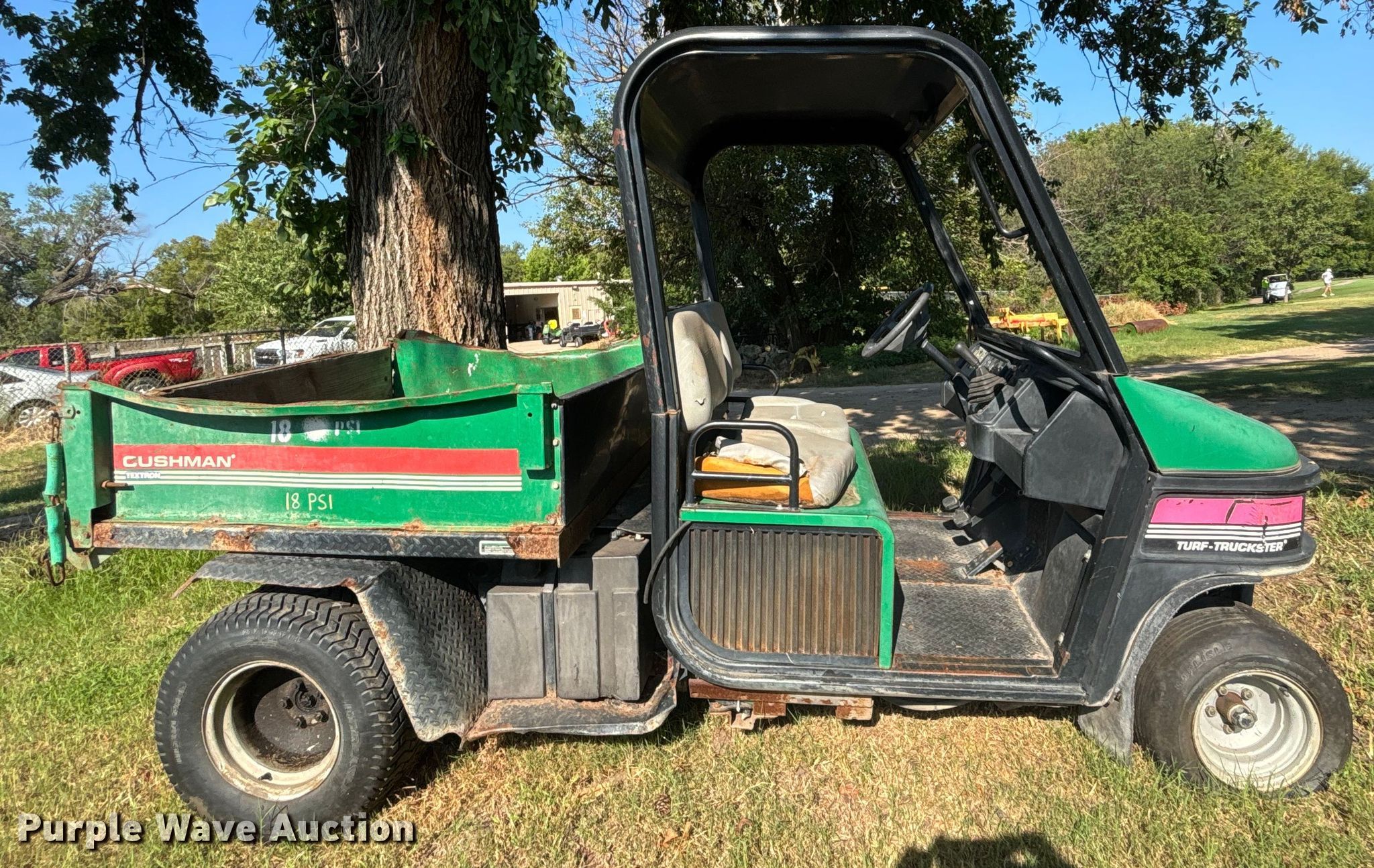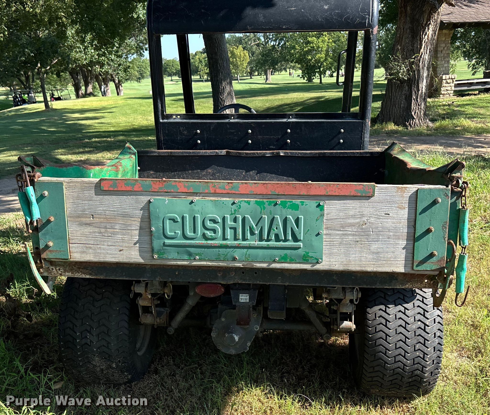 Cushman Textron utility vehicle. Hours: 4,383 on meter, Serial: 99002752. Engine Cylinders: 3, Fuel type: Gas, Electric start. Transmission Automatic. Operators station OROPS. Features Receiver hitch, Dump bed 48" L x 56" W, Dump bed type: Electric/ Hydraulic. Tires Front: 20x10:00, Rear: 24x13:00-12. Notes Dump bed disconnected, Non-operational unit. Mileage has not been verified. Exempt will be written in the odometer disclosure on the title. Transfer of ownership documentation will be a bill of sale. Arthur B. Sim Golf Course. Wichita, KS 67203