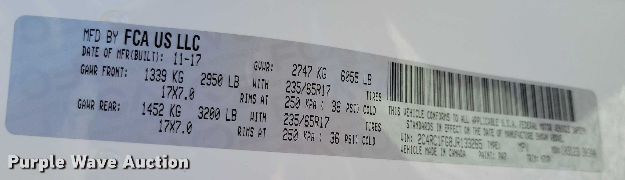 Purple Wave is selling a used Passenger Vehicle in Iowa. This item is a 2018 Chrysler Pacifica van with the following: Miles: 176,764 on odometer, VIN: 2C4RC1FG8JR133265