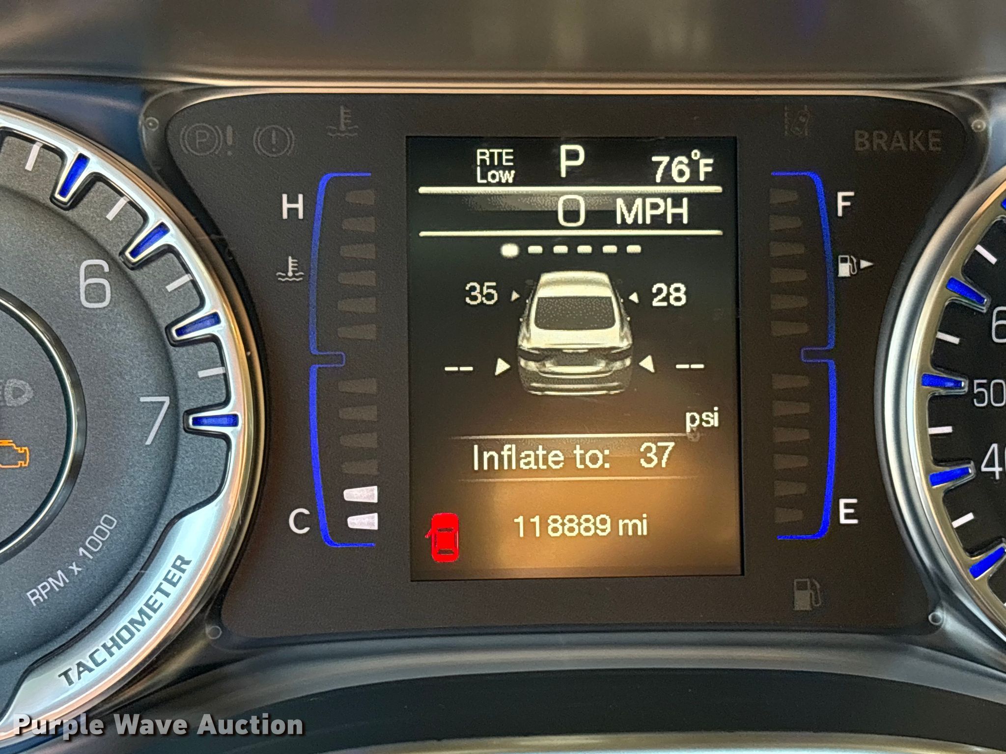 • Dash warning indicator: Check engine, TPMS
