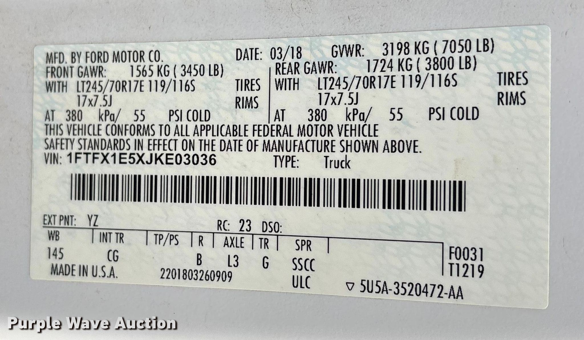 - VIN: 1FTFX1E5XJKE03036
