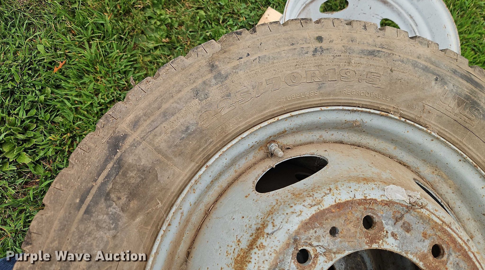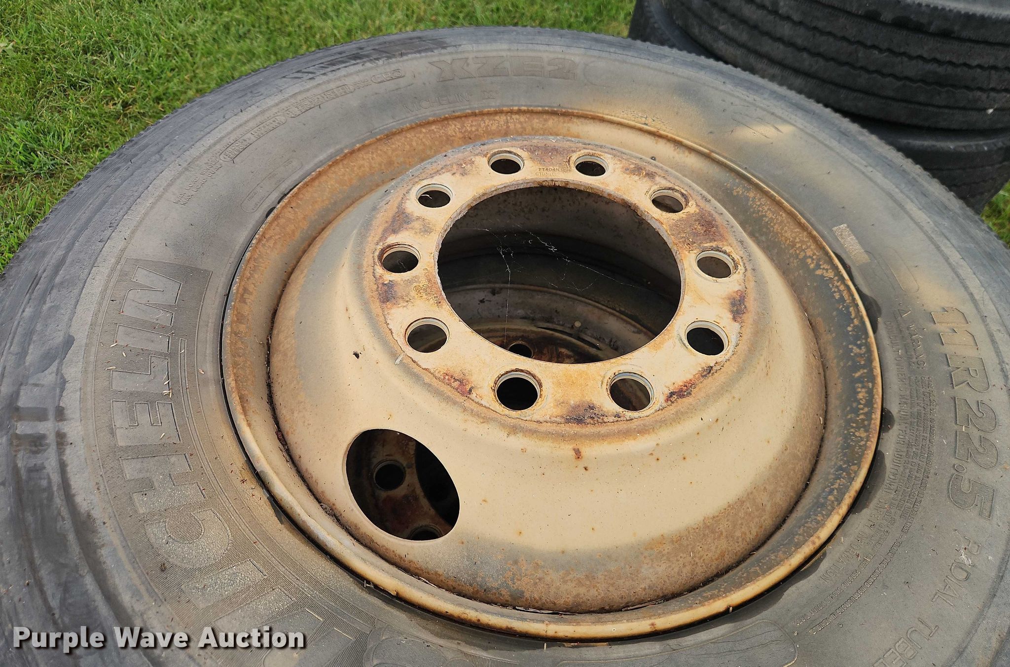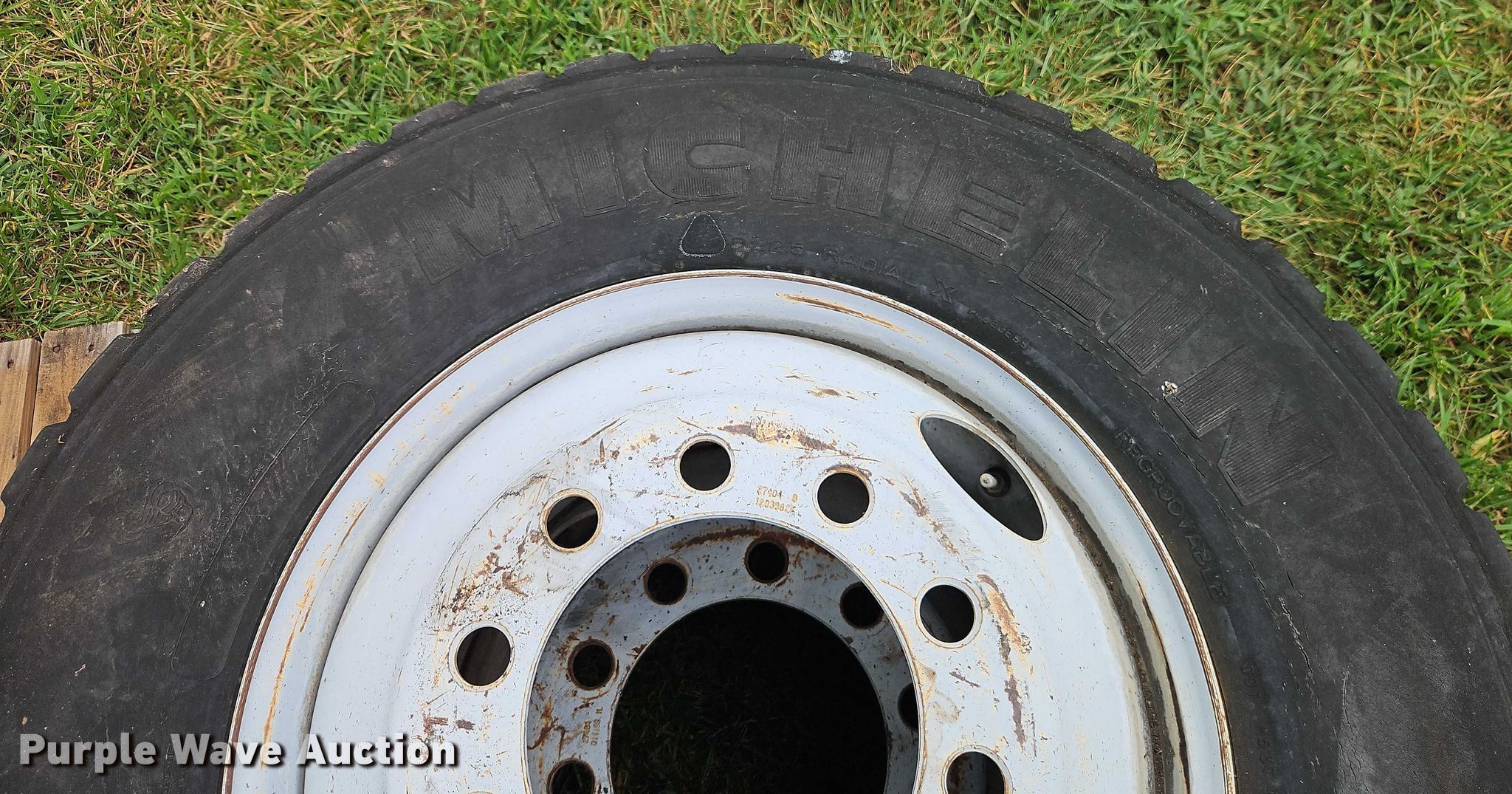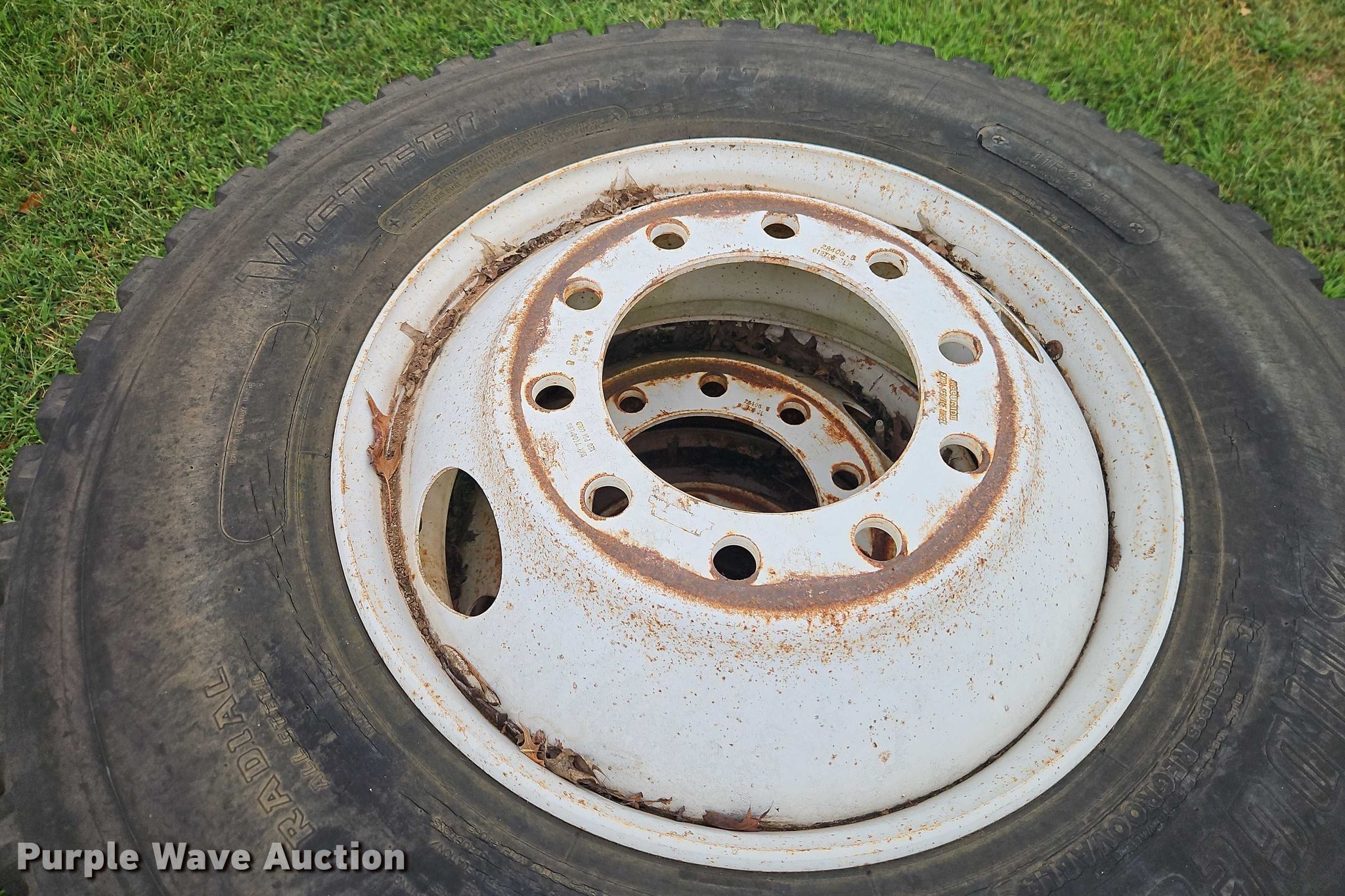Purple Wave is selling a used Fleet Tires in Missouri. This item is a (22) tires and wheels with the following: (4) Hankook 22.5/70R19.5, (4) Bridgestone 11R22.5, (4) Bridgestone 9.00R20, (10) Michelin 11R22.5