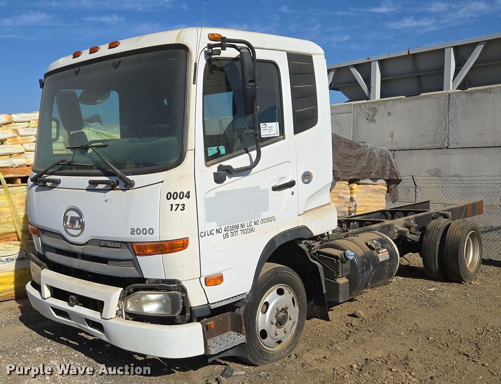 Purple Wave is selling a used Truck Chassis in California. This item is a 2011 Nissan UD2000 truck cab and chassis with the following: Miles: Unknown, VIN: JNAL310H3BAE10004