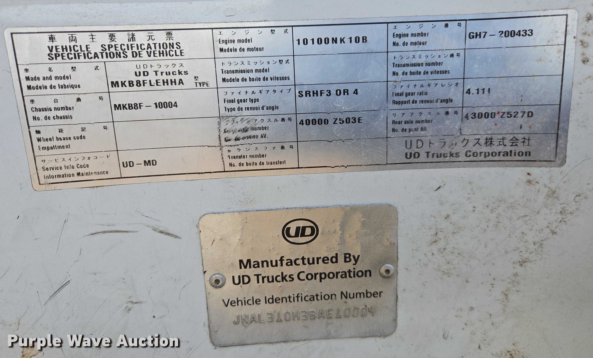 - VIN: JNAL310H3BAE10004
