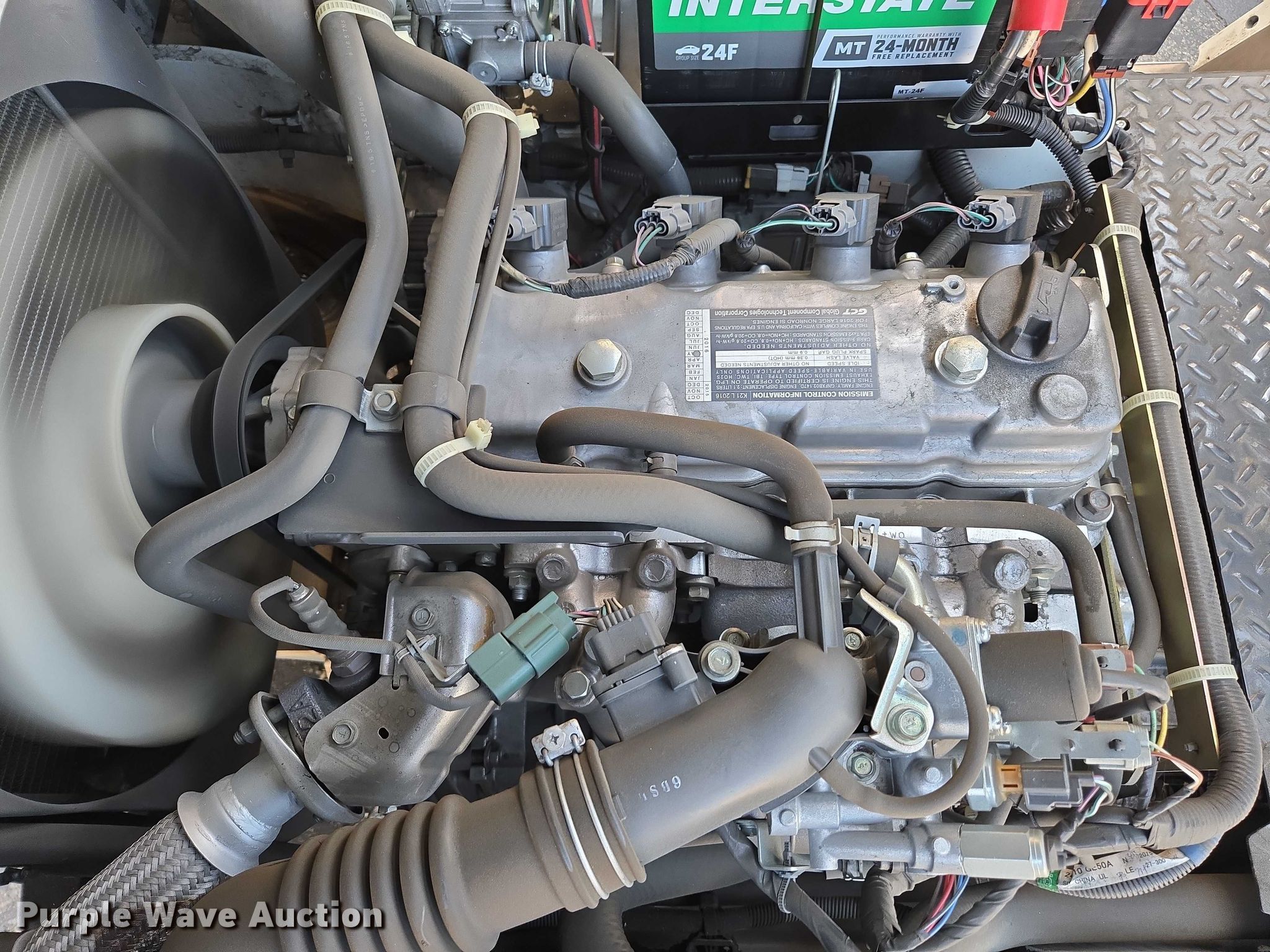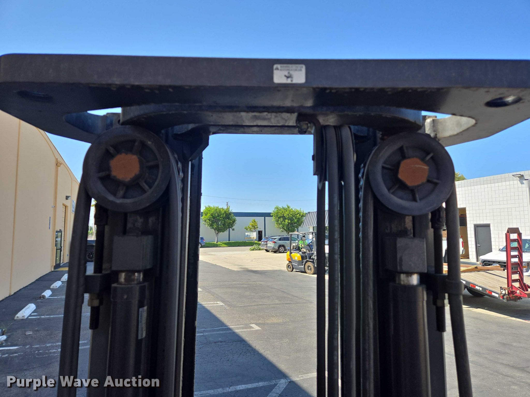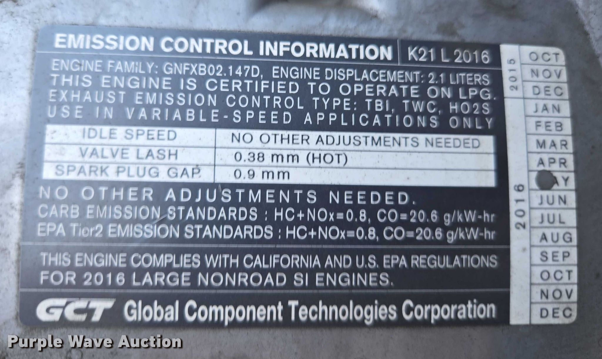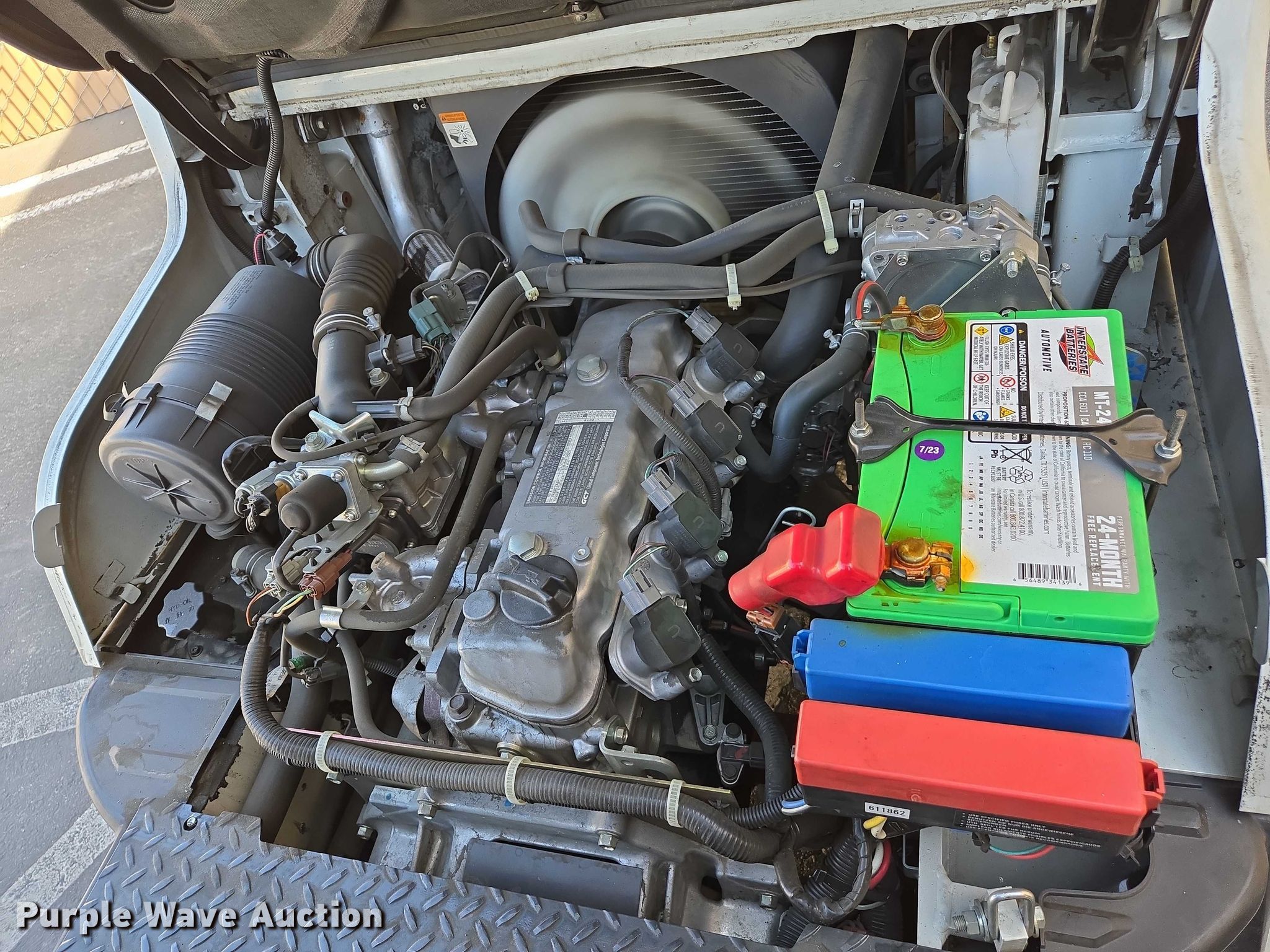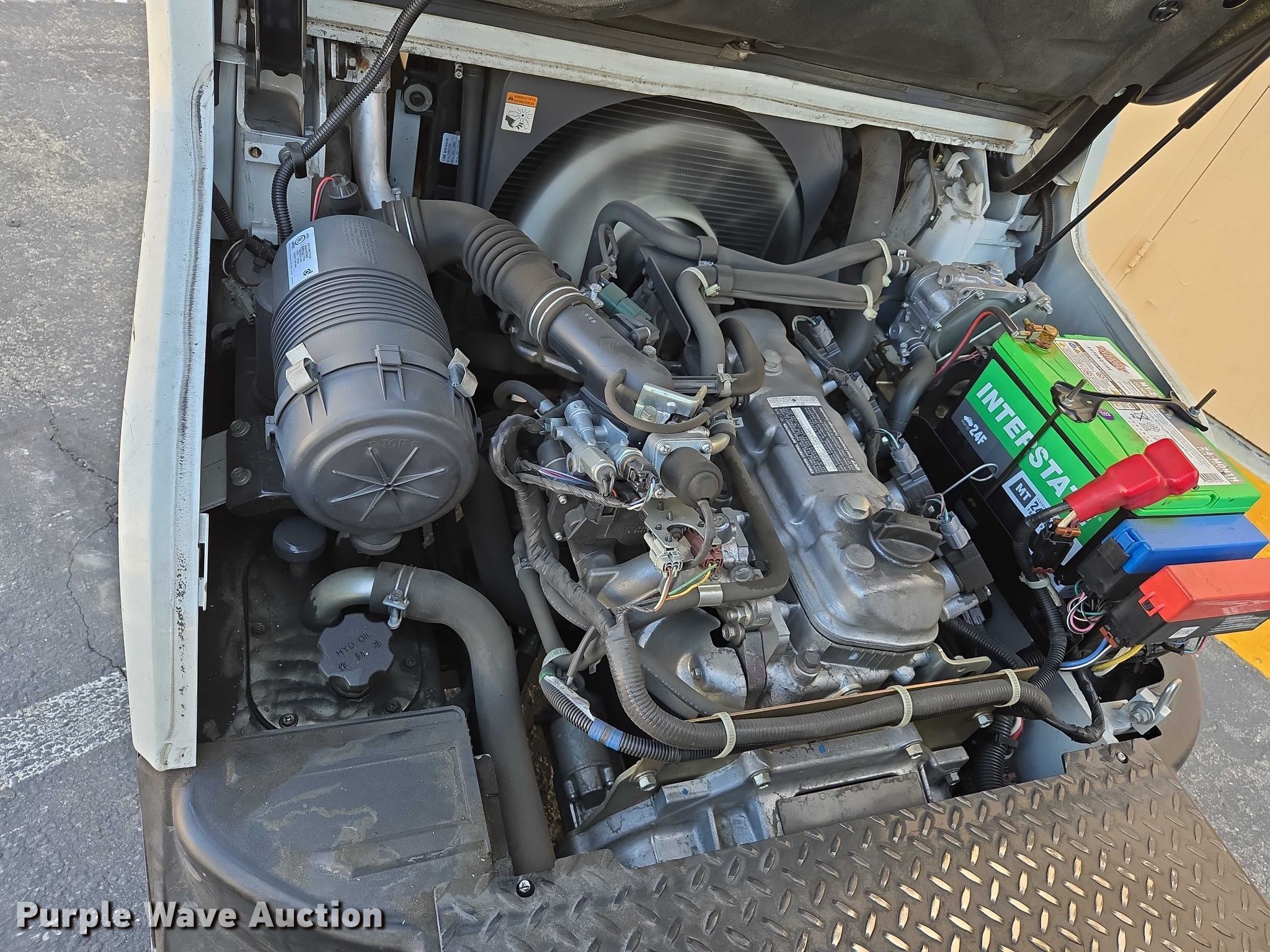 2017 UniCarriers PF50 forklift. Hours: 1,366 on meter, Miles or hours may vary, unit still in use, Serial: P1F2-9H20922, Unit #: SFS2344. Engine GCT, Displacement: 2.1L, Cylinders: 4, Fuel type: LPG LP bottle: Not included. Transmission Automatic. Operators station OROPS, Canopy. Features Maximum lift capacity: 3,930 lbs, Maximum lift height: 187", Collapsed mast height: 80", Mast stages: 3, Side shift, Mast tilt, Fork positioner, Fork length: 48". Tires Front: 7.00-12, Rear: 6.00-9, Solid. Notes Warning indicator: Master warning. Ferguson. Westminster, CA 92683