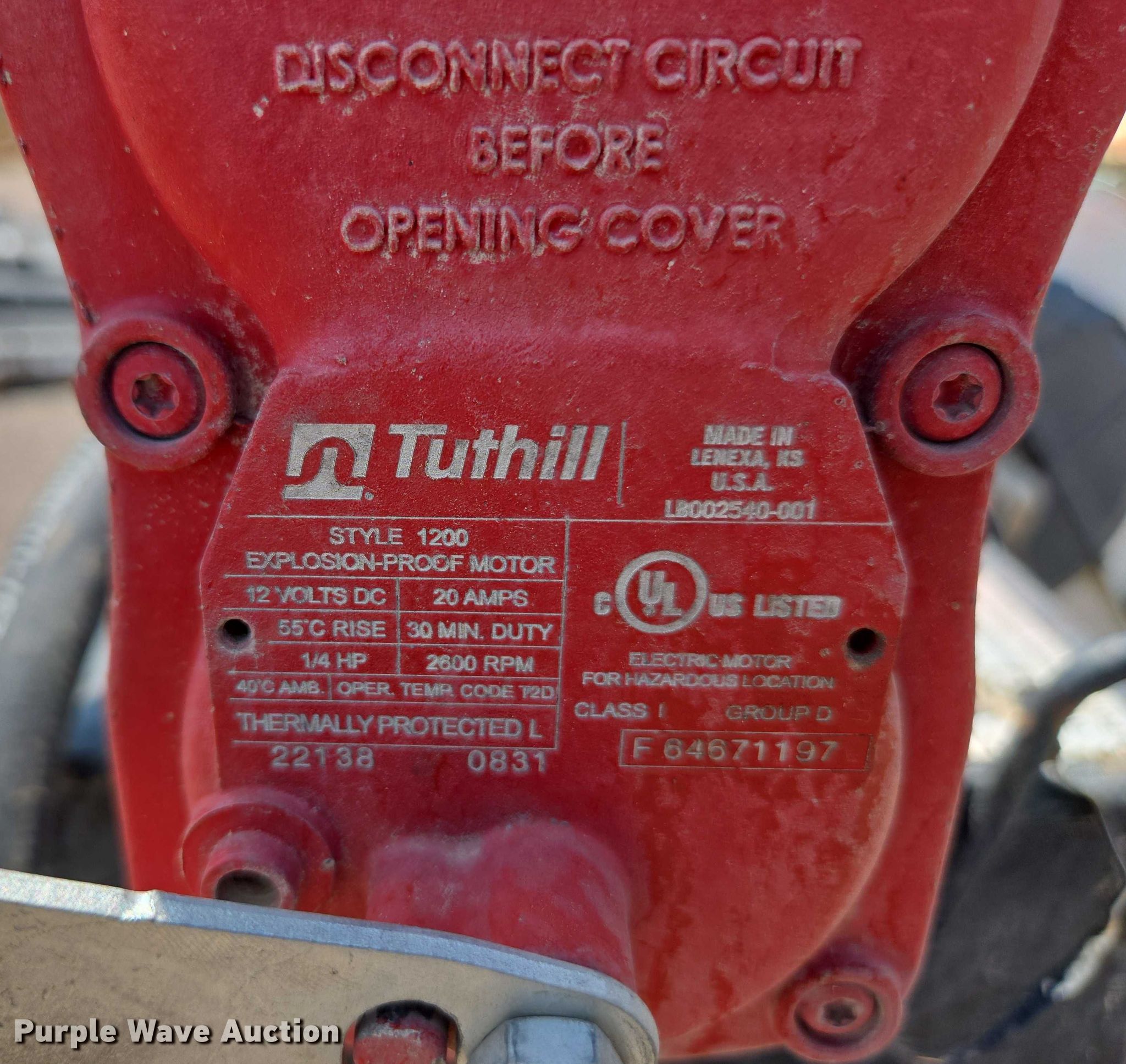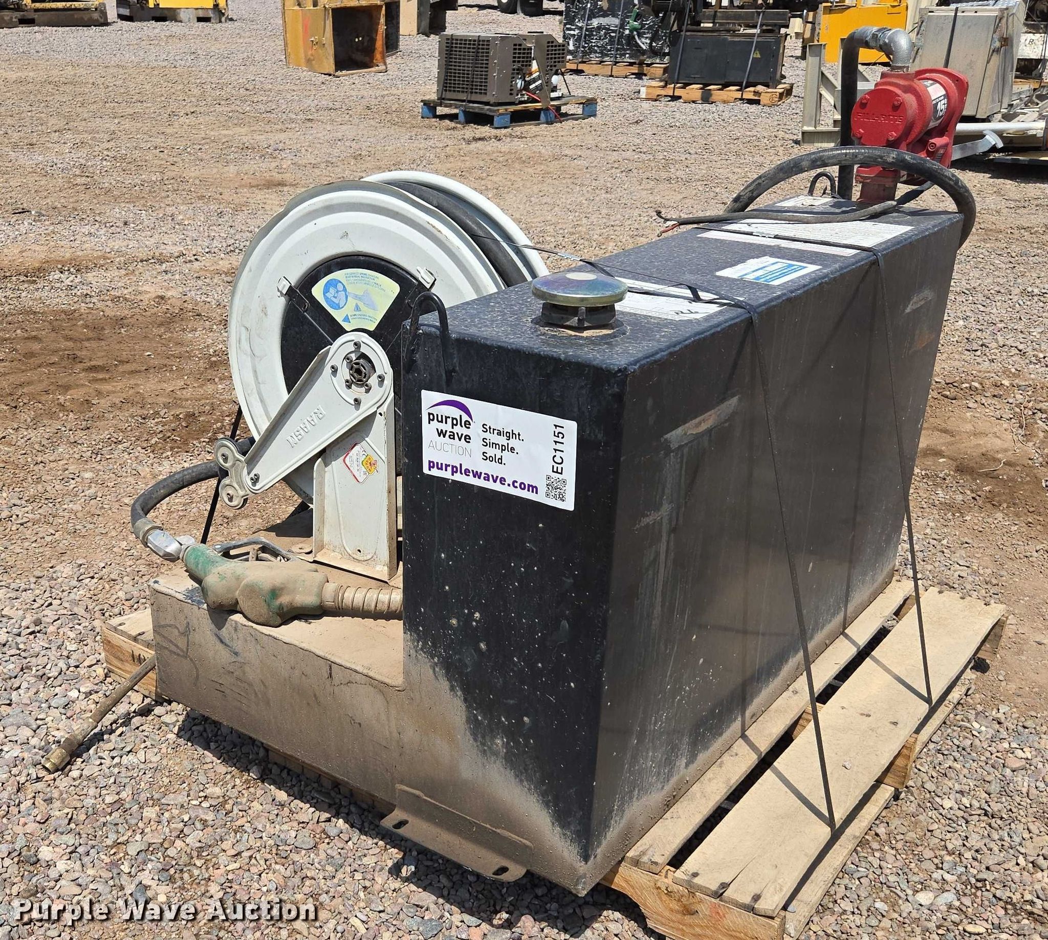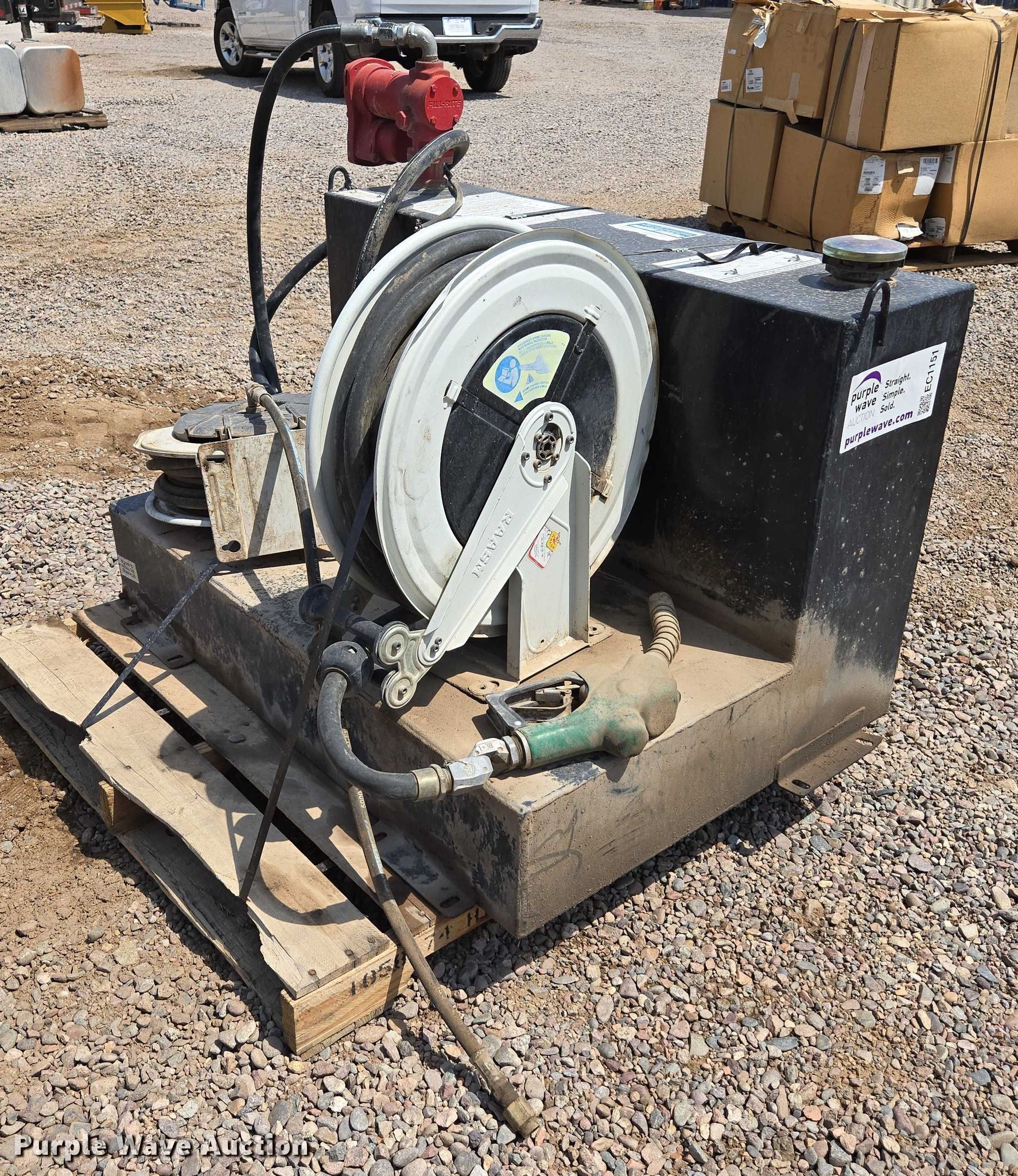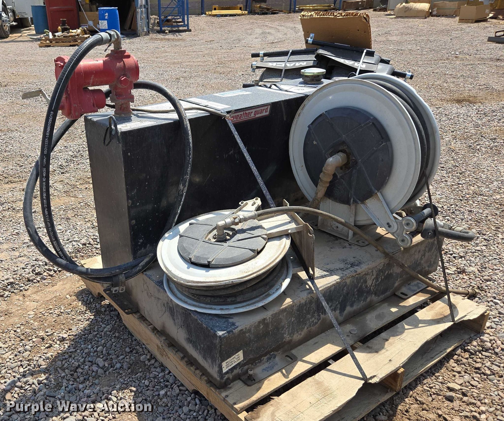 Purple Wave is selling a used Automotive Parts or Acces. in Arizona. This item is a Weatherguard 352 auxiliary fuel tank with the following: Dimensions 43" L x 30" W x 26" H, Capacity: 75 gallons, Pump, Tuthill FR1200H, Volts: 120, GPM: 15, HP: 1/4, (2) hose reels