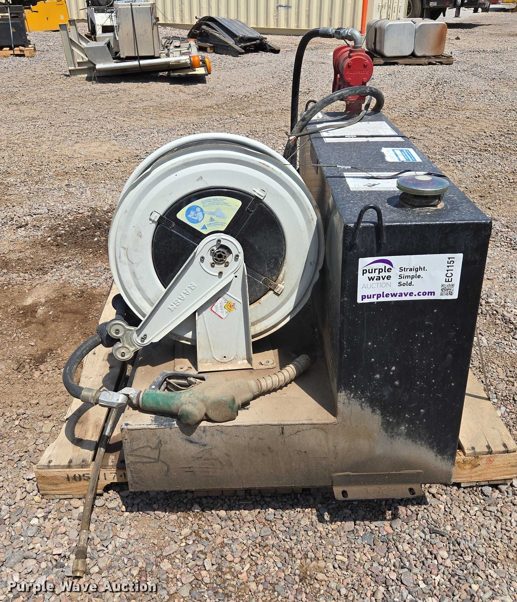 Weatherguard 352 auxiliary fuel tank. Dimensions 43" L x 30" W x 26" H Capacity: 75 gallons, Pump Tuthill FR1200H, Volts: 120, GPM: 15, HP: 1/4, (2) hose reels. Buesing Corporation. Phoenix, AZ 85040