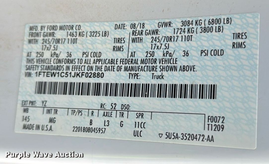 • VIN: 1FTEW1C51JKF02880