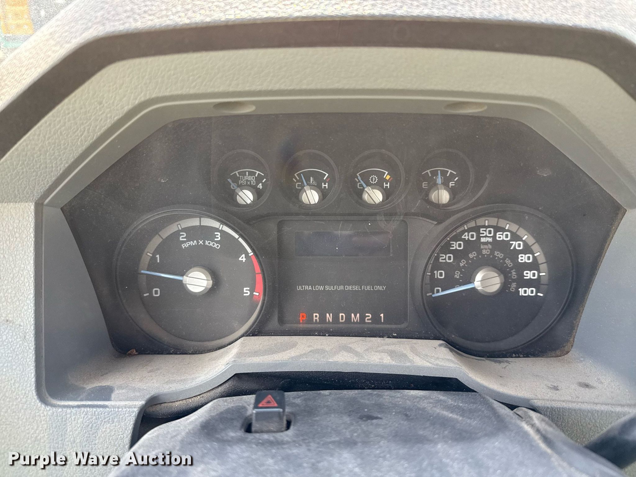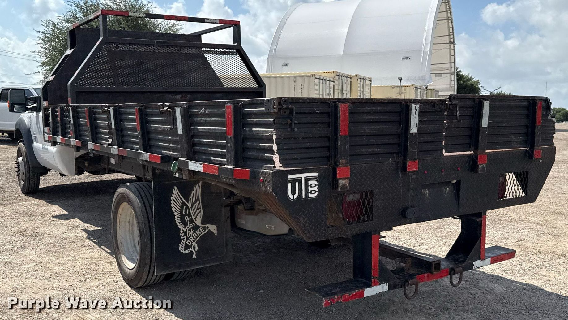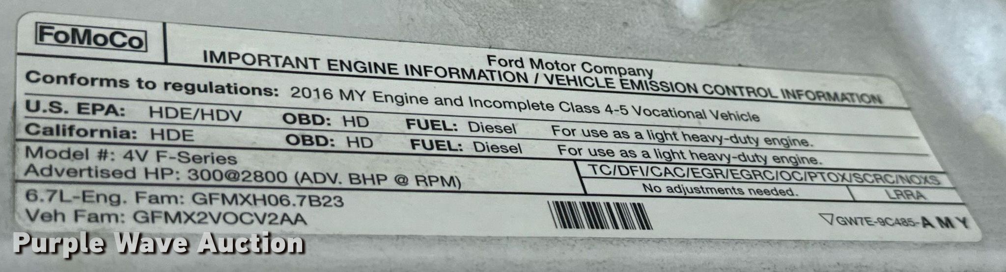 2016 Ford F450 Super Duty flatbed truck. Miles: 125,430 on odometer, VIN: 1FDUF4GTXGED14545, Unit #: 03192. Engine Displacement: 6.7L V8 OHV, Cylinders: 8, Fuel type: Diesel, HP: 440. Transmission Automatic. Interior AC, Heat, Heated mirrors, Power windows, Power locks, Cruise control, Auxiliary controls, Brake controller. Features Flatbed UTB FB 0616, 192" L x 98" W. Tires Size: 225/70R19.5. Notes Windshield chipped or cracked. Arizona title. Title distribution may be delayed up to 14 days from verification of funds. Pulice Construction. Pflugerville, TX 78660