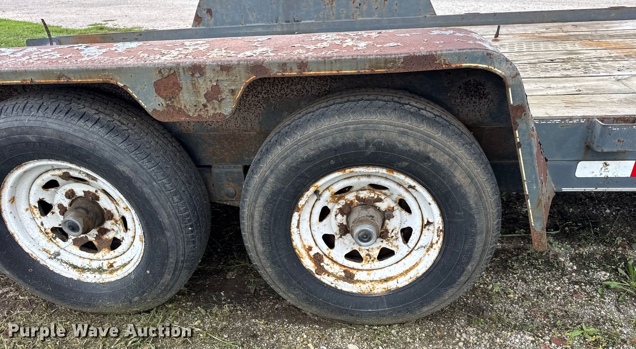 2000 B-B equipment trailer. VIN: 4L5SA2128YF001594. Dimensions Overall Length: 21', Width: 102", Deck Length: 16', Width: 80", Deck height: 18". Features Deck type: Wood. Chassis Hitch: Pintle, Landing gear: Single, Suspension: Spring, Axles: Tandem. Tires Steel wheels, Size: 225/75R15. Illinois title. Title distribution may be delayed up to 14 days from verification of funds. Central Sod Farms Inc.. Plainfield, IL 60585