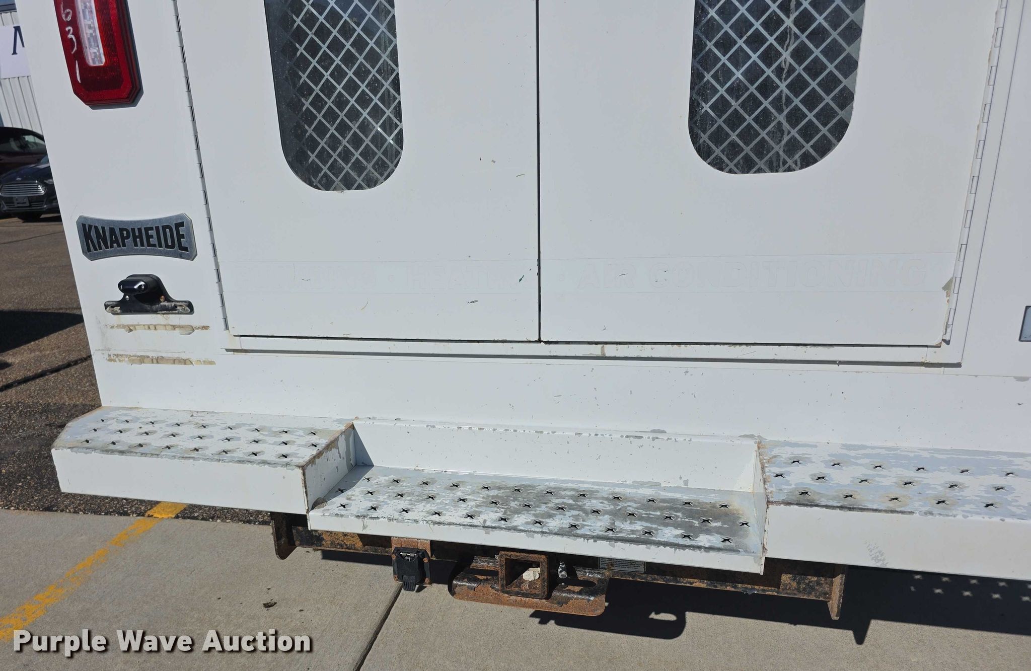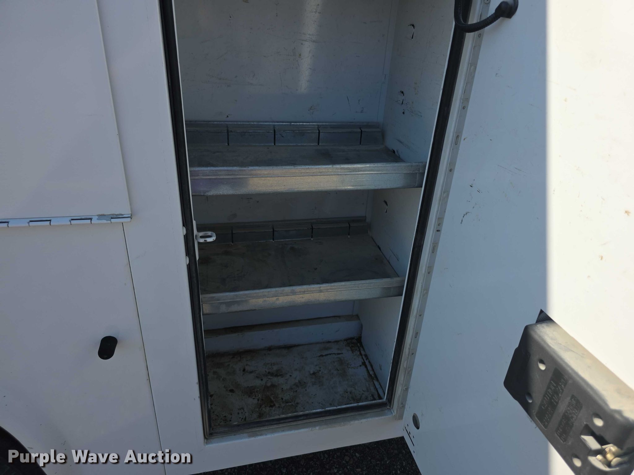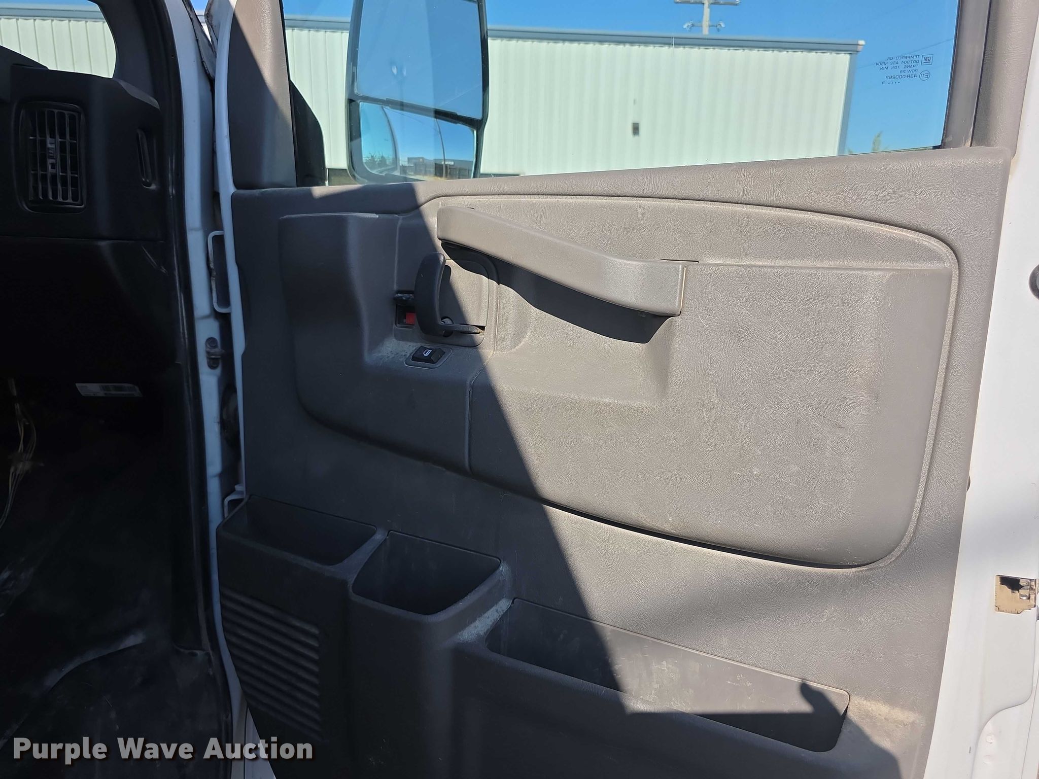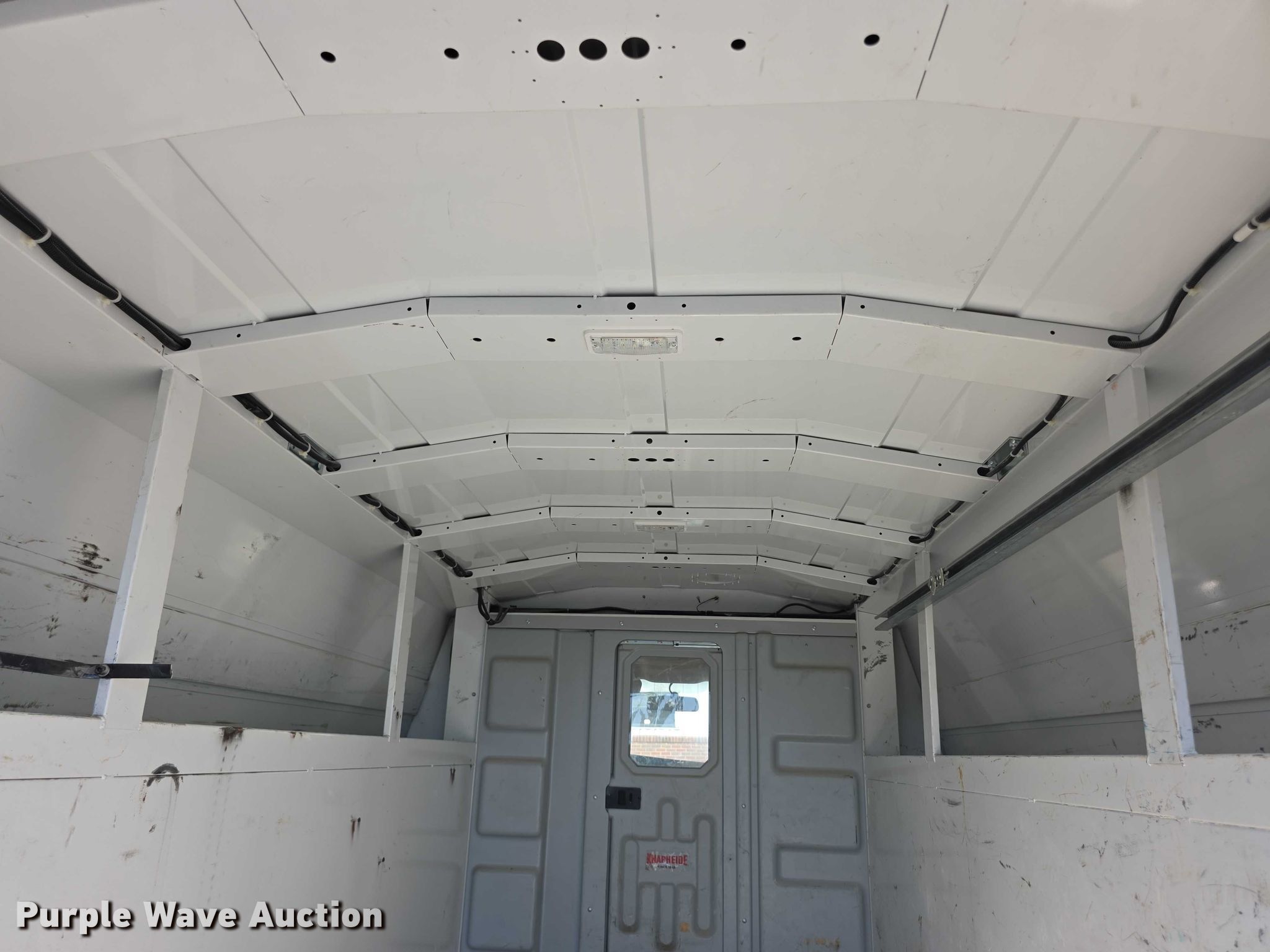 2018 GMC Savana utility van. Miles: 156,564 on odometer, VIN: 1GD07RFG7J1276171, Unit #: 108. Engine Displacement: 6.0L V8 OHV, Cylinders: 8, Fuel type: Gas. Transmission Automatic. Interior AC, Heat, Power windows, Power locks, Cruise control. Features Bed Utility bed, Knapheide KUV129SUTPW, Serial: 201711080544551, Length: 10' 9", Width: 6' 11", Height: 6' 10". Tires Size: 245/75R16. Notes Dash warning indicator: Check engine, Exhaust solenoid issues, needs replaced. Kansas title. Title distribution may be delayed up to 14 days from verification of funds. McElroy's Inc.. Topeka, KS 66611