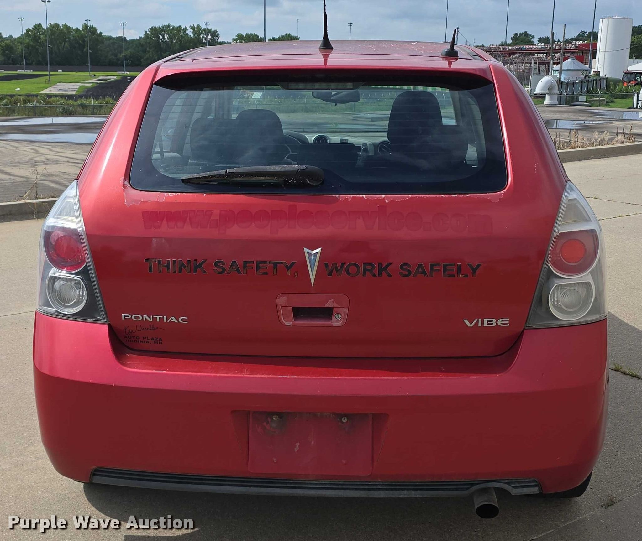 2009 Pontiac Vibe. Miles: 262,144 on odometer, VIN: 5Y2SP67049Z412895. Engine Displacement: 2.4L L4 DOHC, Cylinders: 4, Fuel type: Gas. Transmission Automatic. Interior AC, Heat, Power windows, Power locks, Cruise control. Tires Size: 205/55R16. Notes Dash warning indicator: TPMS, Windshield chipped or cracked. Minnesota title. Title distribution may be delayed up to 30 days from verification of funds. People Services Inc. Corning, IA 50841