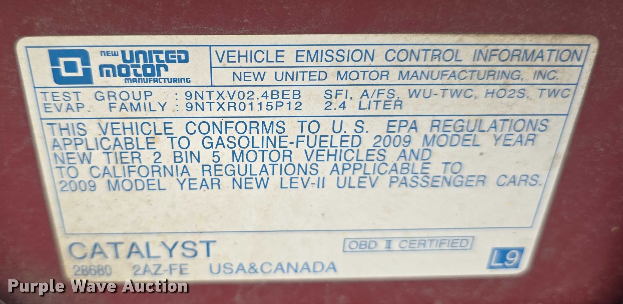 Purple Wave is selling a used Passenger Vehicle in Iowa. This item is a 2009 Pontiac Vibe with the following: Miles: 262,144 on odometer, VIN: 5Y2SP67049Z412895