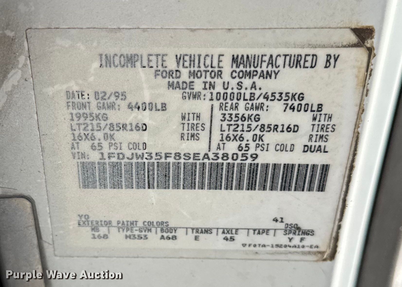 - VIN: 1FDJW35F8SEA38059