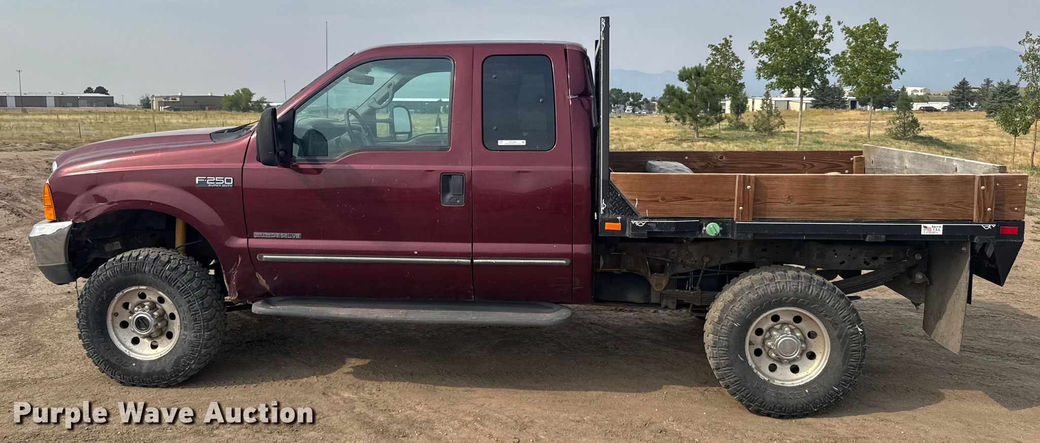 2000 Ford F250 Super Duty SuperCab flatbed pickup truck