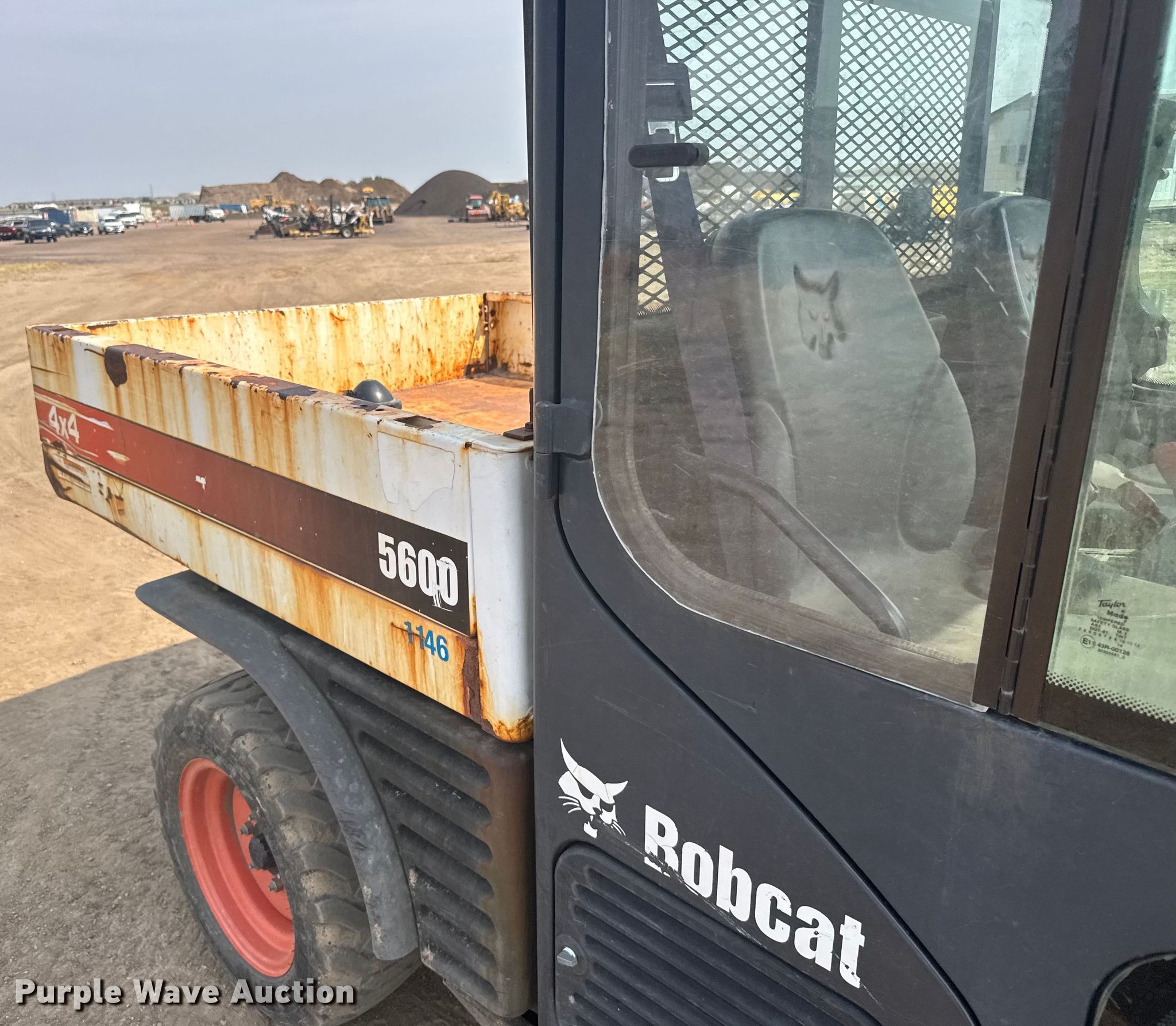 2014 Bobcat 5600 Toolcat utility vehicle. Hours: 4,017 on meter, Serial: AHG811146. Engine Cylinders: 4, Fuel type: Diesel. Transmission Hydrostatic. Chassis Four wheel drive/ All wheel drive, Four wheel steer. Operators station Enclosed cab, Heat. Features Receiver hitch, Dump bed 60" L x 56" W, Dump bed type: Electric/ Hydraulic, Attachment Description: Bucket, Width: 67", Auxiliary hydraulics, Quick coupler: Hydraulic. Tires Size: 27x10.5-15. Notes Flat tires, Dead battery. Timberline Rock 'n Roll. Colorado Springs, CO 80939