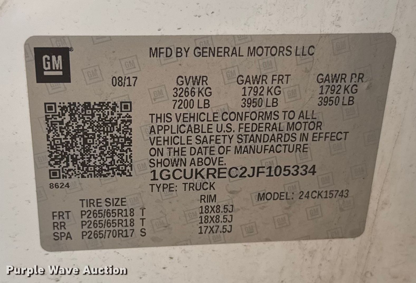 Purple Wave is selling a used 1/2 Ton Pickup or Van in Colorado. This item is a 2018 Chevrolet Silverado 1500 Crew Cab pickup truck with the following: Miles: 113,501 on odometer, VIN: 1GCUKREC2JF105334