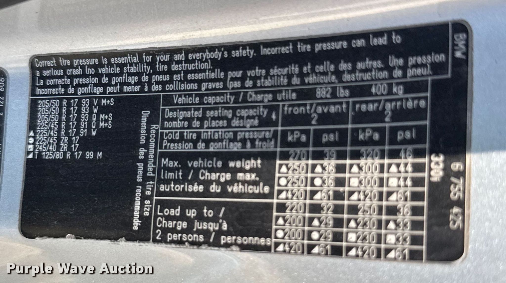 - Front: 225/45ZR17