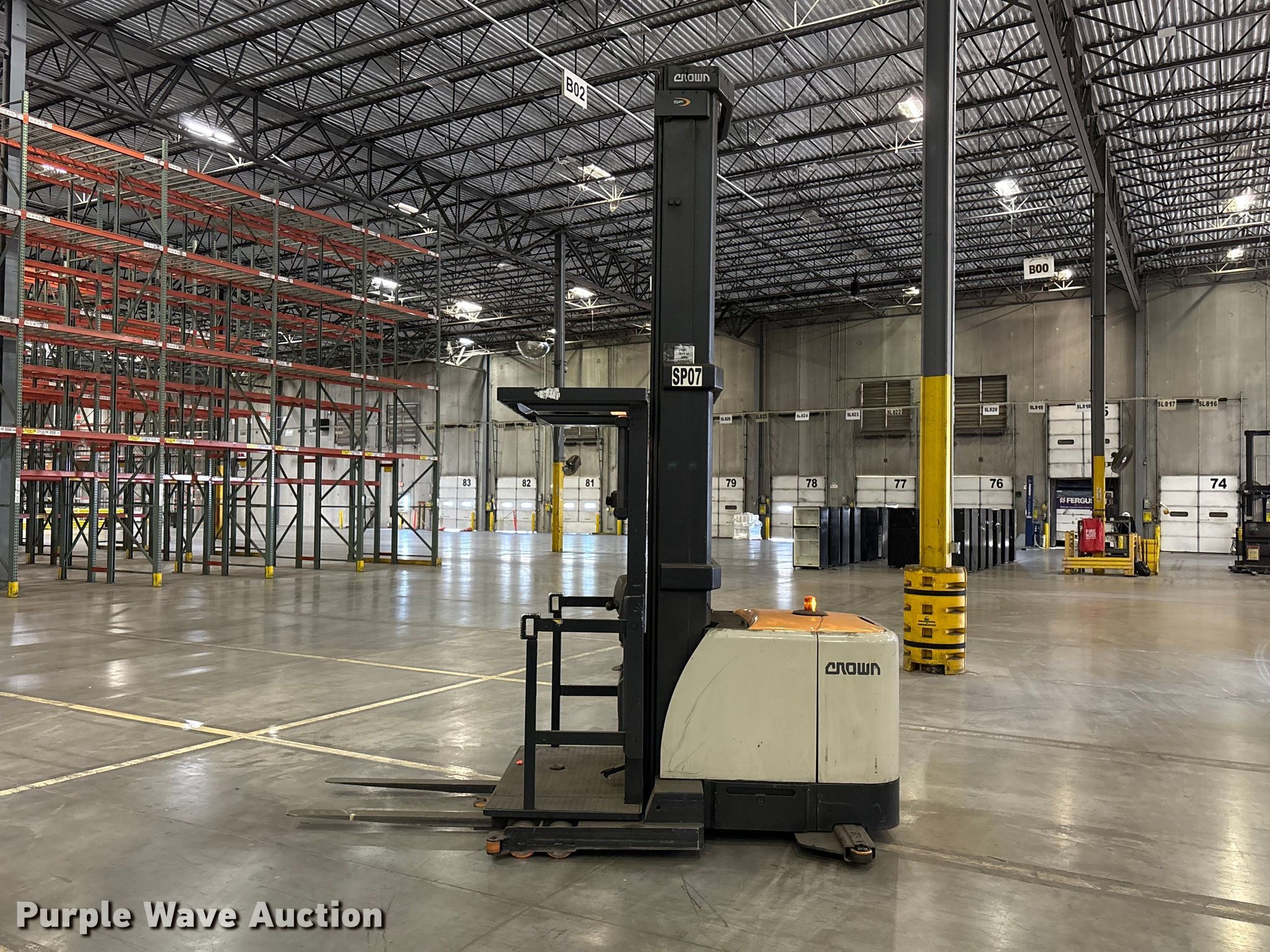 Purple Wave is selling a used Warehouse Forklift in Texas. This item is a 2017 Crown SP4050-30 order picker with the following: Hours: 8,776 on meter, Serial: 1A508677, Unit #: SFS2449