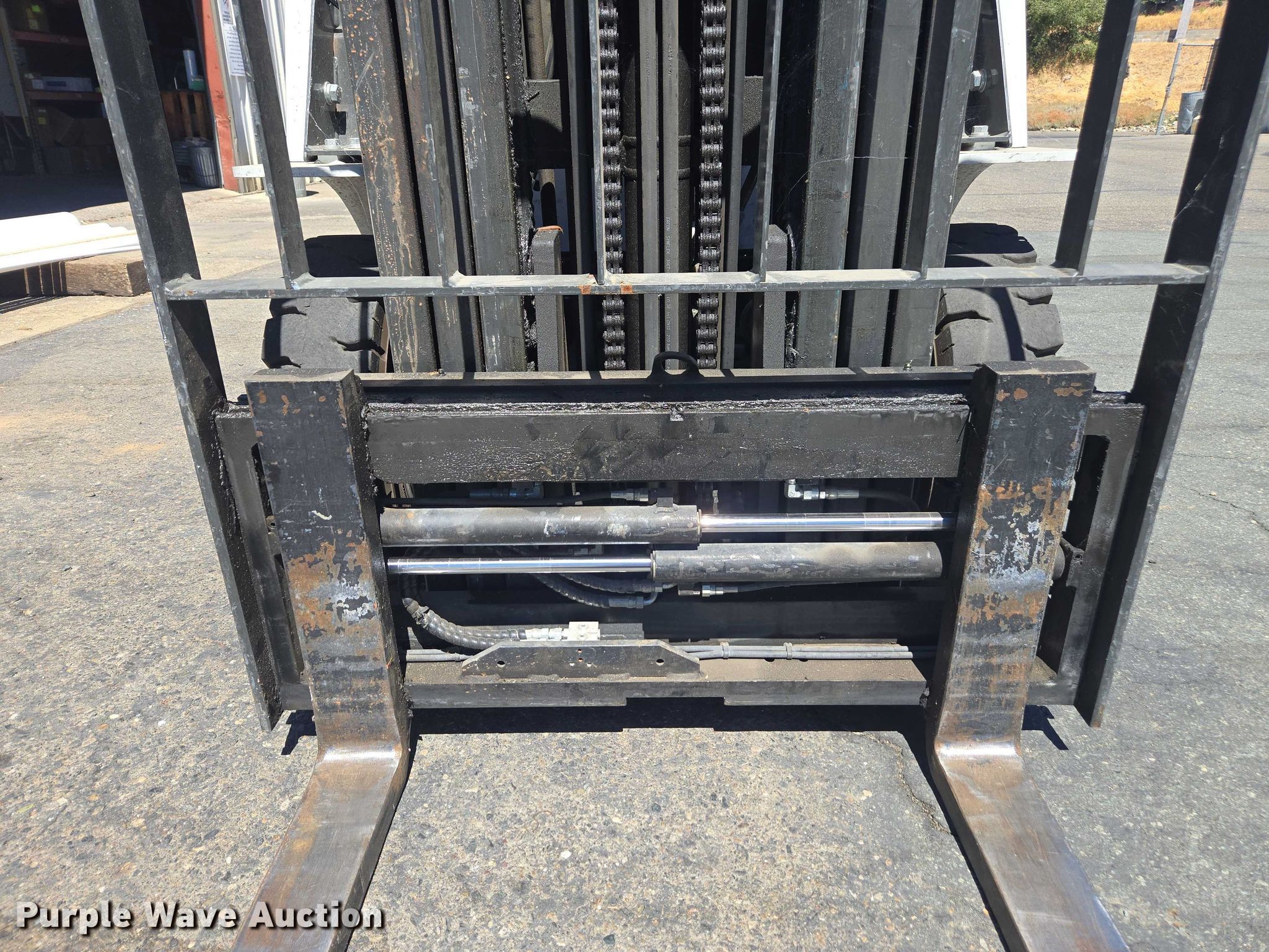 2017 UniCarriers PF50 forklift. Hours: 1,305 on meter, Serial: P1F2-9H23180, Unit #: SFS2331. Engine GCT, Displacement: 2.1L, Cylinders: 4, Fuel type: LPG LP bottle: Not included. Transmission Automatic. Operators station OROPS, Canopy. Features Maximum lift capacity: 3,325 lbs, Maximum lift height: 203", Collapsed mast height: 89", Mast stages: 3, Side shift, Mast tilt, Fork positioner, Fork length: 48". Tires Front: 7.00-12, Rear: 6.00-9, Solid. Notes Warning indicator: Master warning. Ferguson. Jackson, CA 95642