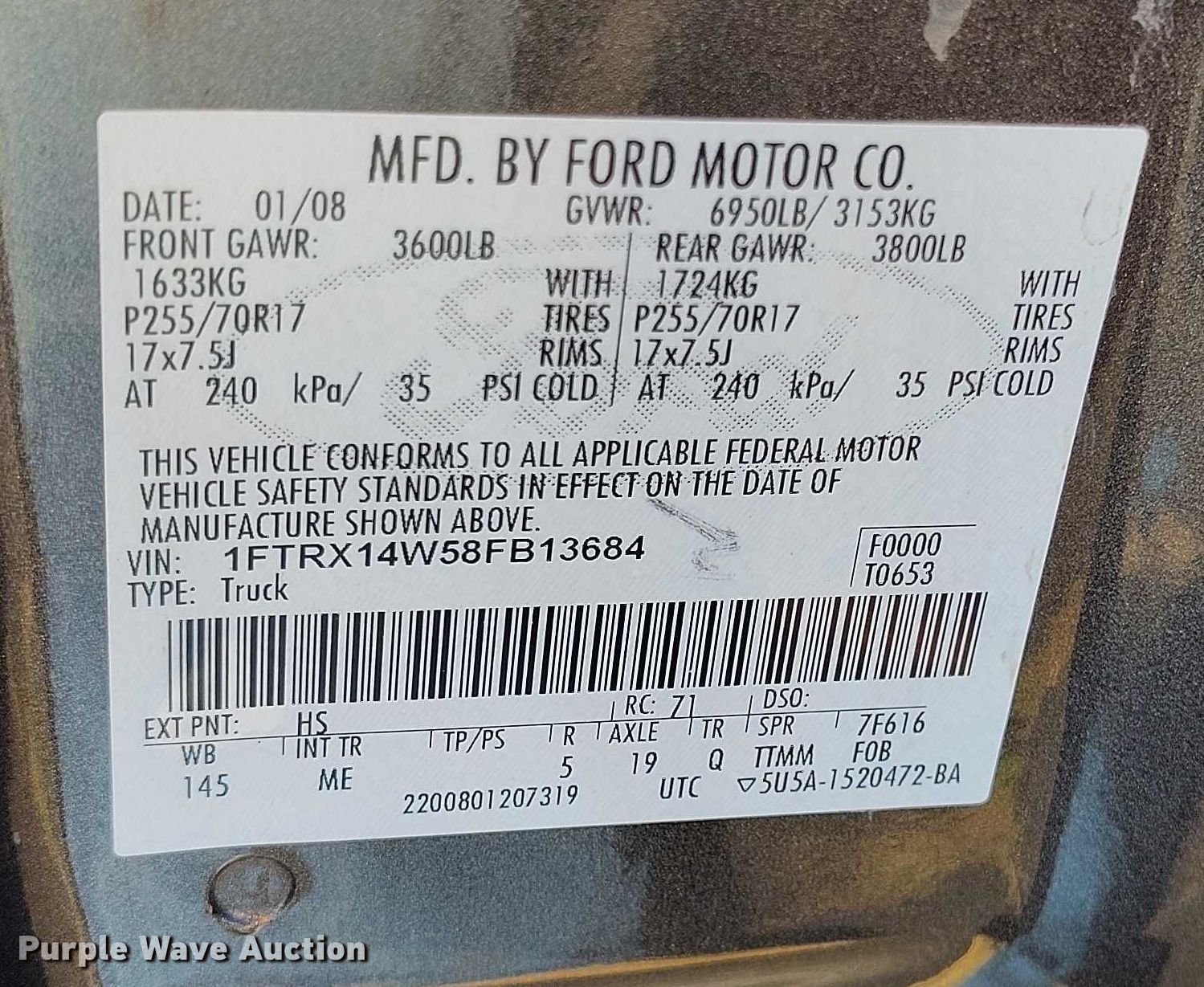 - VIN: 1FTRX14W58FB13684