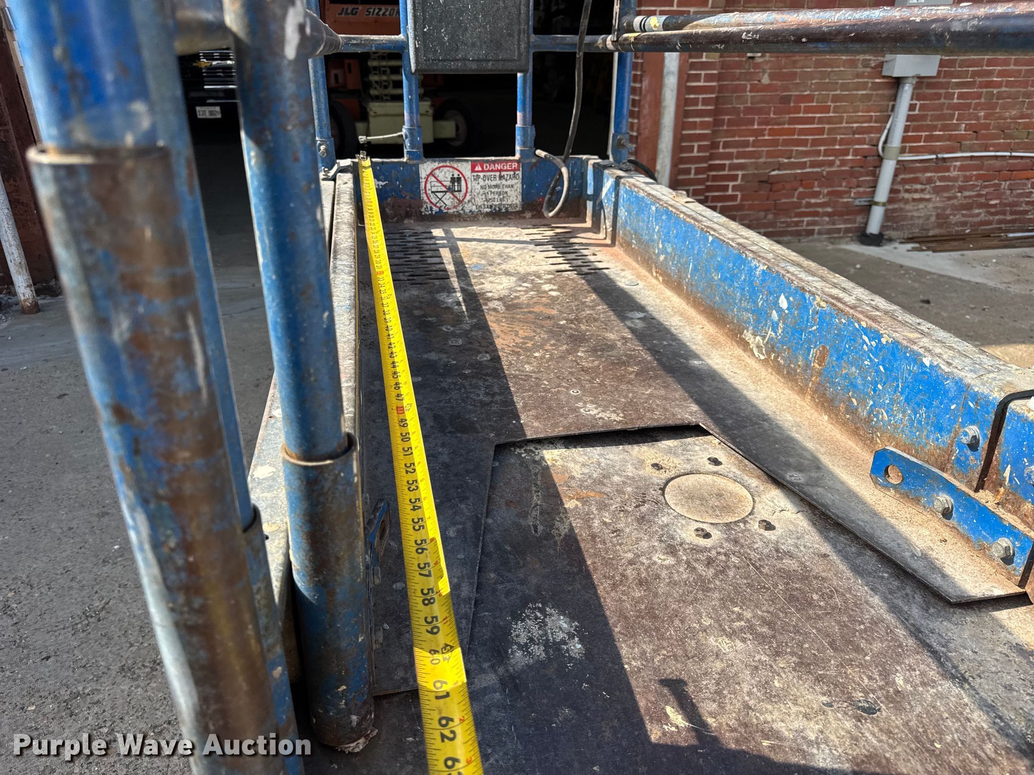 Upright Inc MX19 scissor lift. Hours: Unknown, Serial: 2884. Electric Motor Volts: 24. Features Maximum lift capacity: 500 lbs, Maximum lift height: 19', Platform: 64" L x 30" W, Platform extensions: Manual. Tires Tire size: 12x4, Solid, Non-marking. A. Fischer Builders. Quincy, IL 62301