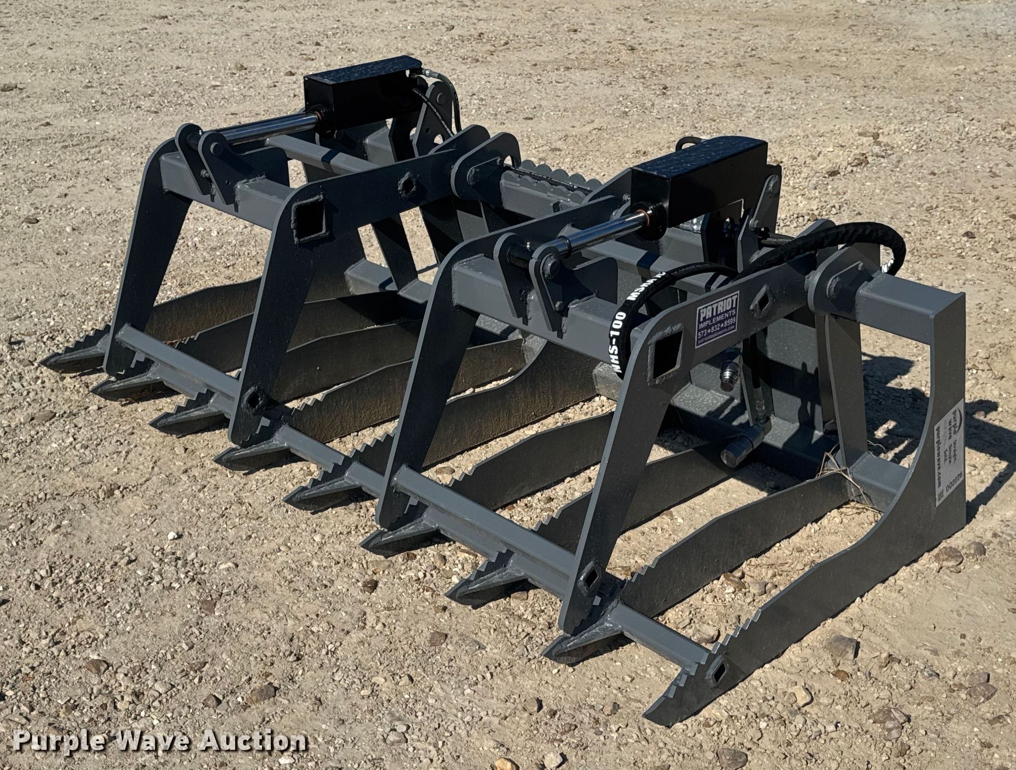 Purple Wave is selling a used Skid Steer Attach. in Missouri. This item is a Patriot Implements skid steer grapple bucket with the following: Serial: 25M1081, Width: 72", Unused