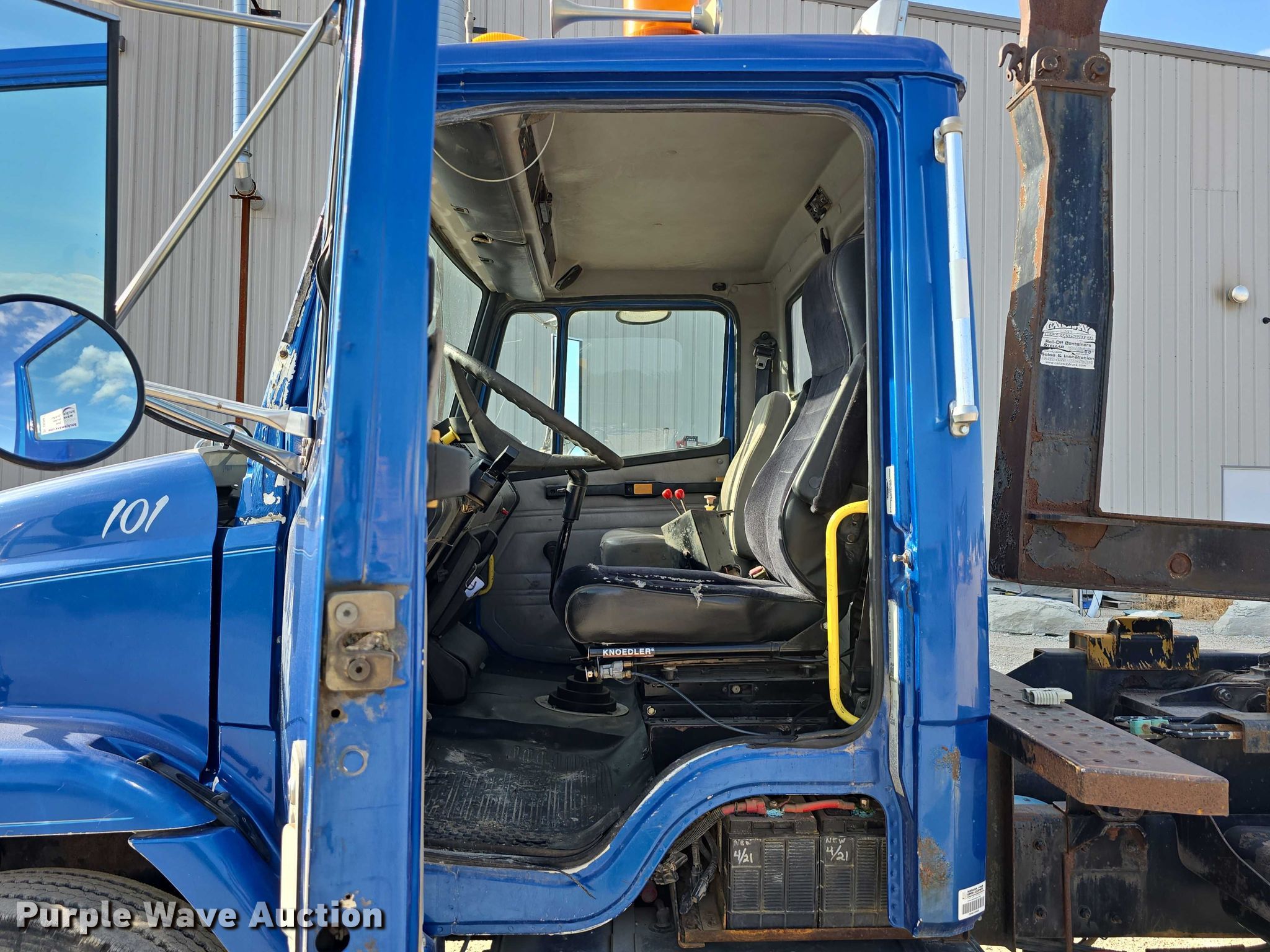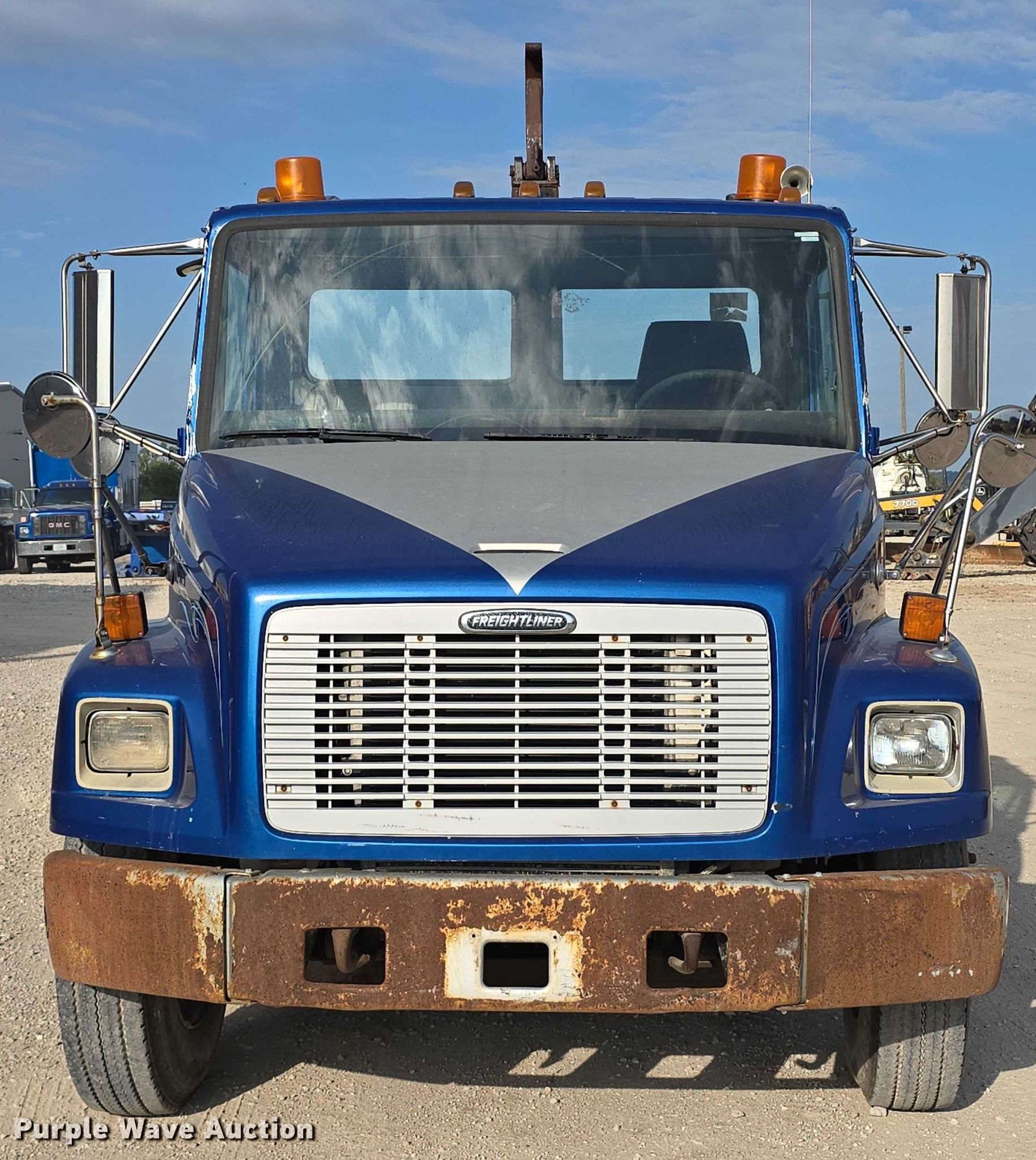 Purple Wave is selling a used Rollback or Tow Truck in Iowa. This item is a 1999 Freightliner Business Class hook lift truck with the following: Miles: 119,991 on odometer, Hours: 5,342 on meter, VIN: 1FVXJLBB1XHB00753