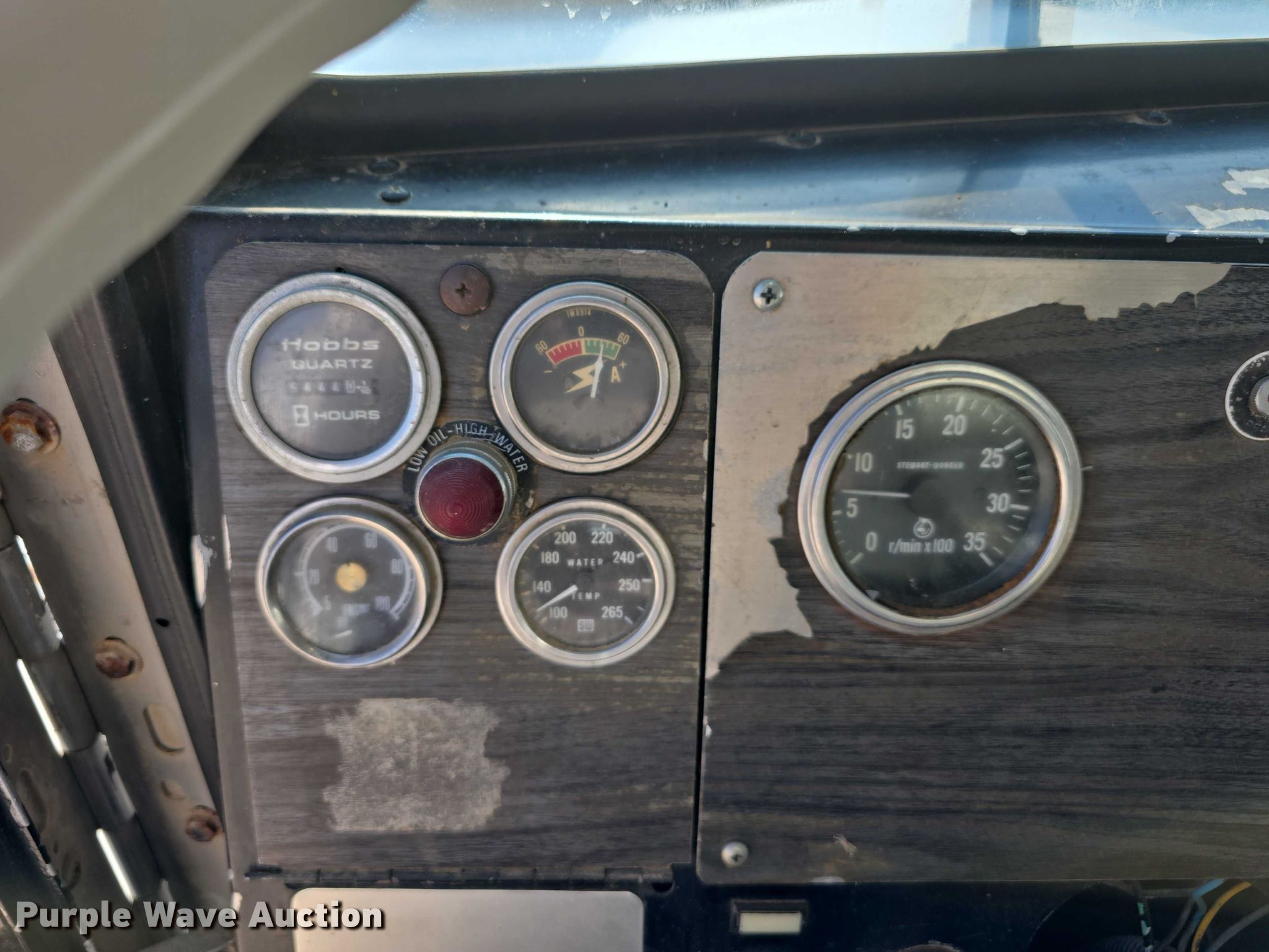 1979 Kenworth water truck. Miles: 221,732 on odometer, Hours: 5,444 on meter, VIN: 160748K. Engine Cummins, Cylinders: 6, Fuel type: Diesel. Transmission Manual, Speed: 5, plus 2. Chassis Axles: Tandem, Suspension: Spring over walking beam, Brakes: Air, PTO. Interior Heat, Auxiliary controls. Features Bed Tank bed, Length: 14', Width: 96", Spray bar: Front, Rear, Side discharge, Hose reel, Top fill, Sight tube, Rear drain: 4". Tires Front: 385/65R22.5, Rear: 11R22.5. Nebraska title. Title distribution may be delayed up to 14 days from verification of funds. Neuvirth Construction. Crescent, IA 51526