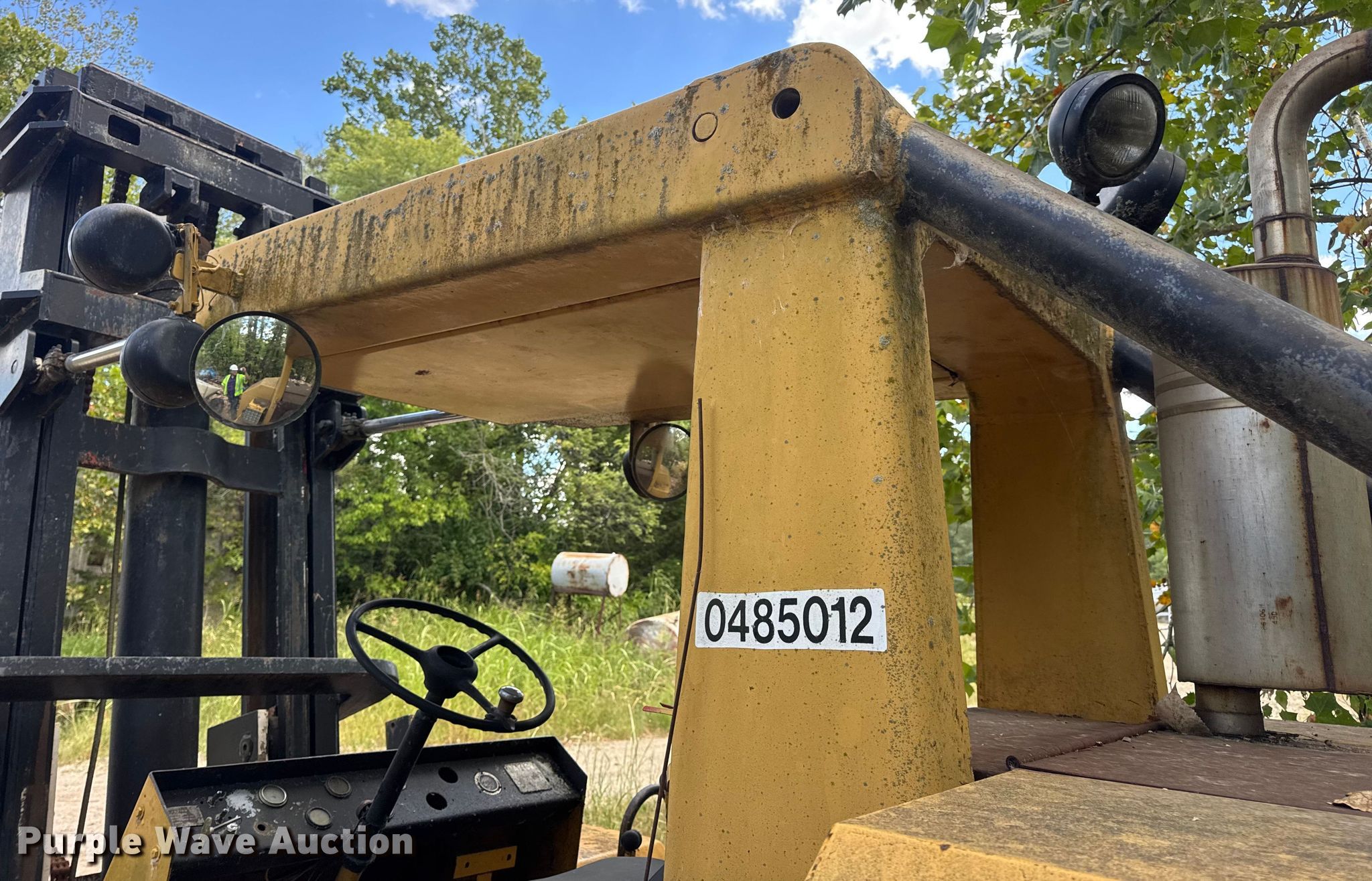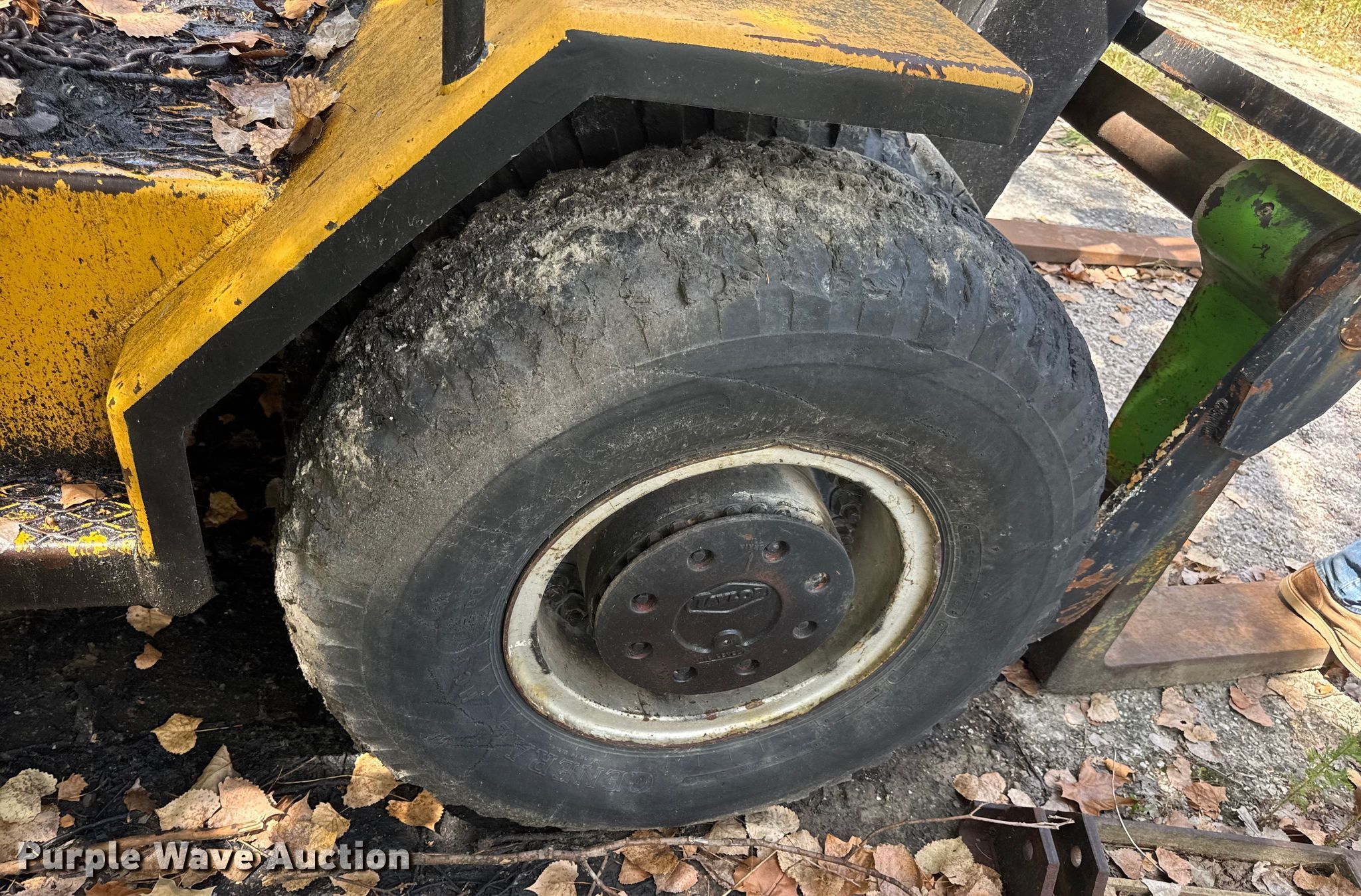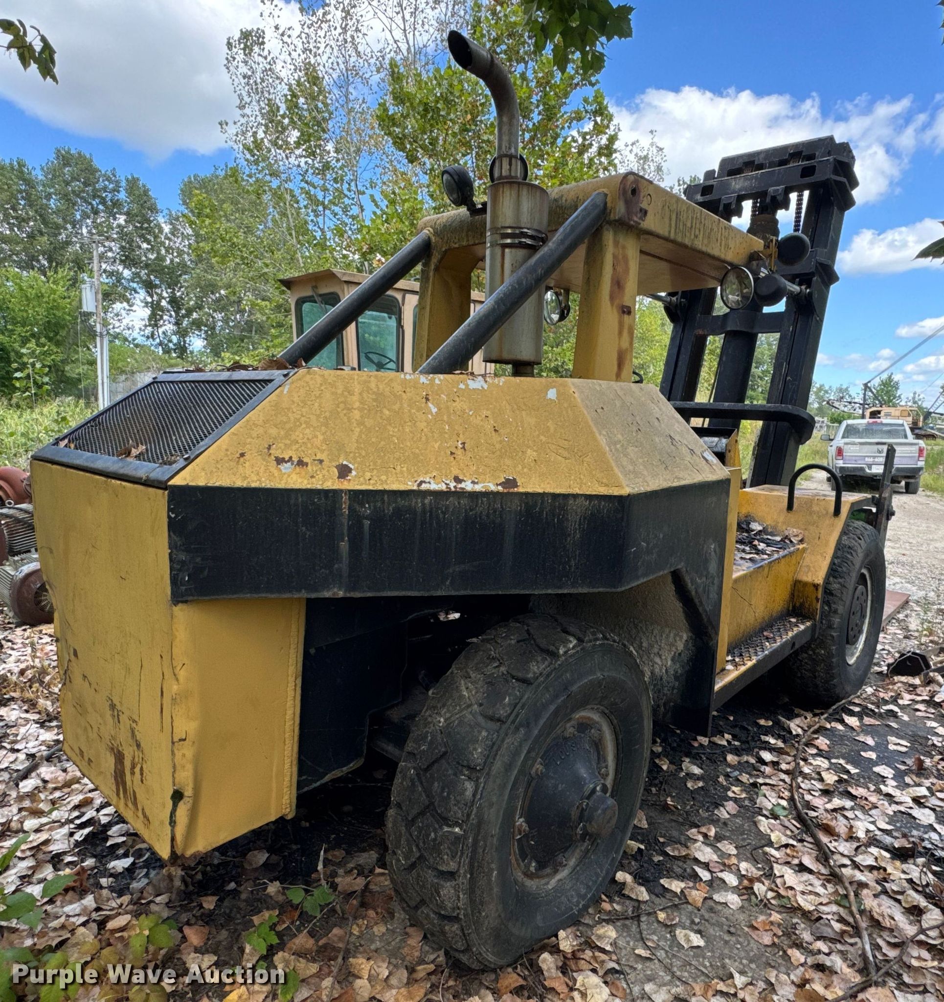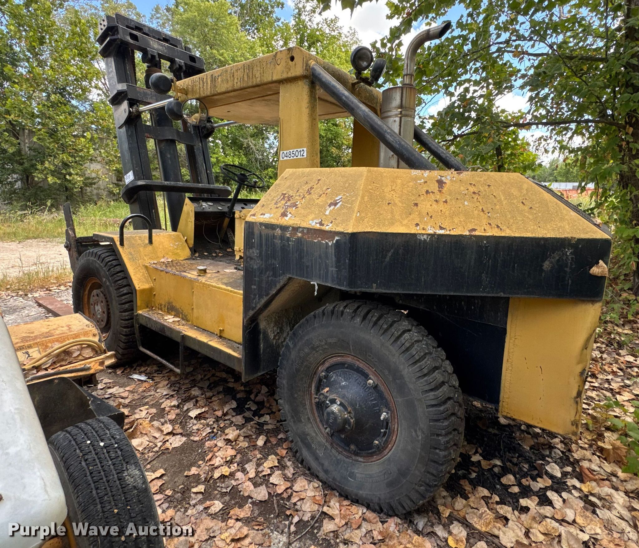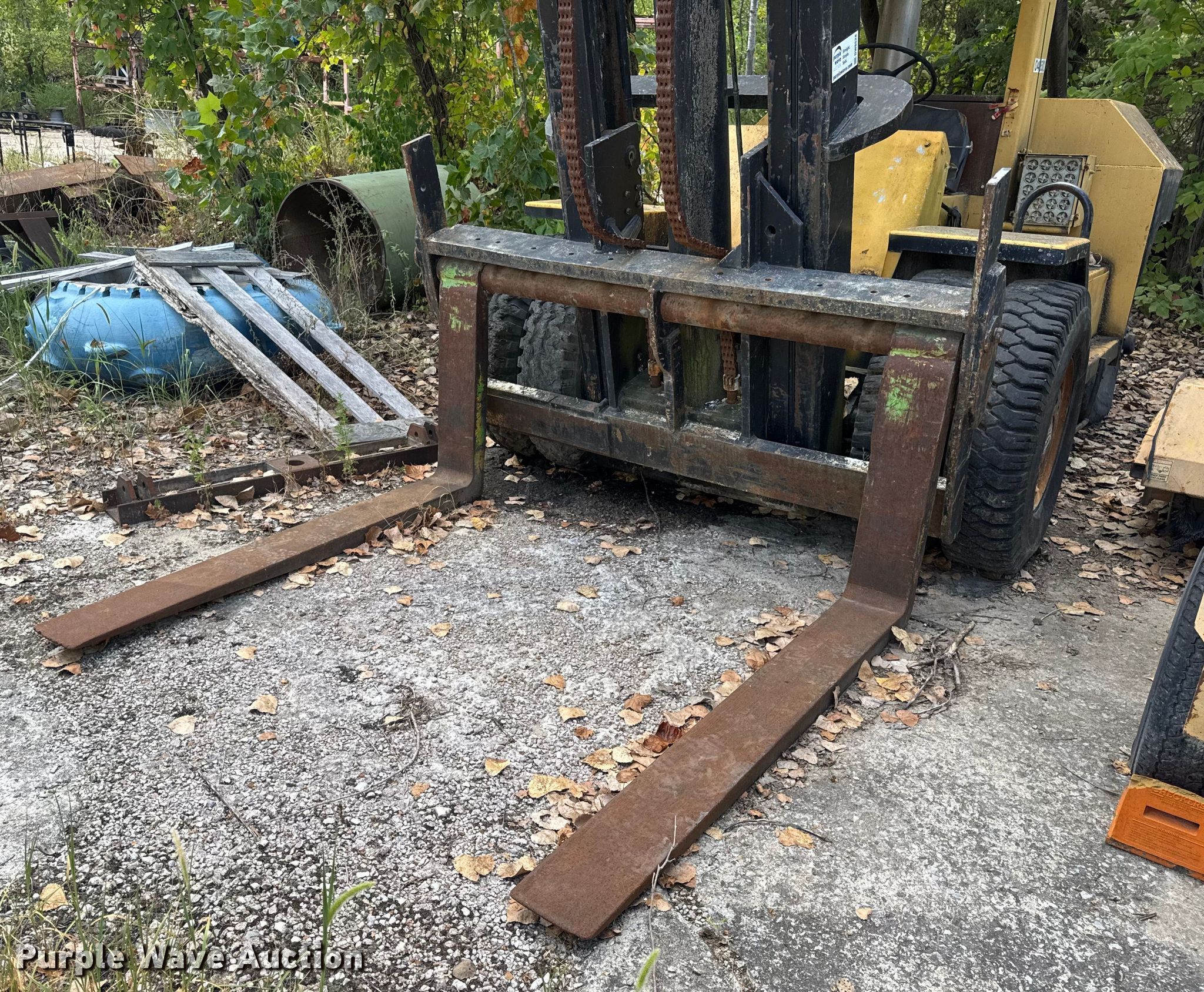 Taylor forklift. Hours: Unknown, Unit #: 0485012. Engine Detroit Diesel, Fuel type: Diesel. Operators station OROPS. Features Collapsed mast height: 146", Mast stages: 2, Mast tilt, Fork length: 72". Tires Size: 12.00-20. Notes Hydraulic leak, Non-operational unit. Capital Sand Company. Jefferson City, MO 65101
