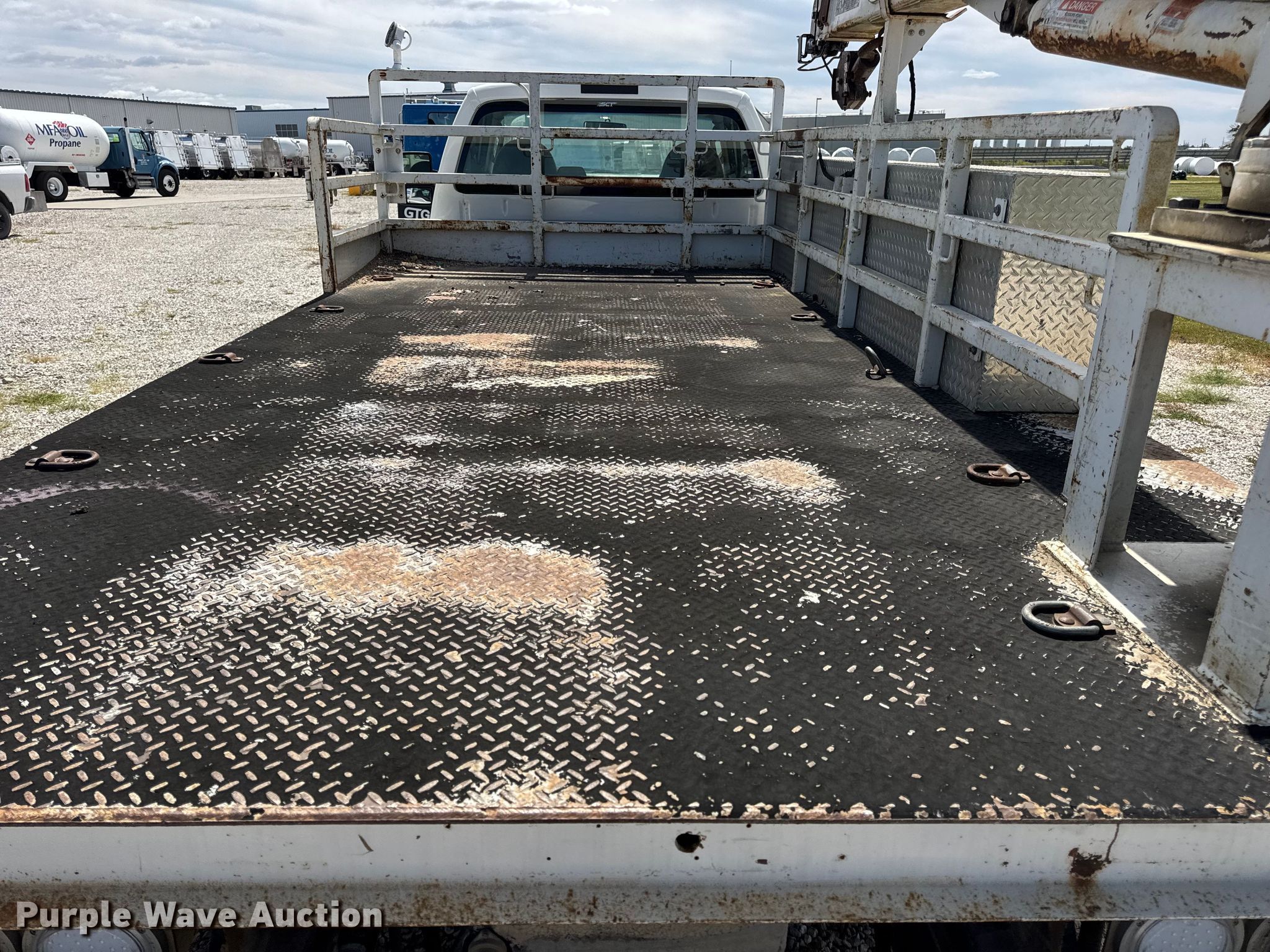 2008 Ford F550 Super Duty XL utility / service truck. Miles: 291,110 on odometer, VIN: 1FDAF57R58ED39318. Engine Displacement: 6.4L, Cylinders: 8, Fuel type: Diesel. Transmission Automatic. Chassis Four wheel drive, Axles: Single, Suspension: Spring, Brakes: Hydraulic, PTO, GVWR: 19,500 lbs, Wheelbase: 189". Interior AC, Heat, Heated mirrors, Cruise control, Auxiliary controls, Brake controller. Features Bed H&H Sales Company 96168S/I, Serial: 840494, Length: 14', Width: 96", Crane Auto Crane 6406H, Maximum boom length: 27' Maximum lift capacity: 6,400 lbs.. Tires Size: 225/70R19.5. Notes Dash warning indicator: Check engine, Jump start required during on-site data collection, Oil leak, Transmission leak , Unknown operating condition of crane, remote issues, Non-operational AC. Missouri title. Title distribution may be delayed up to 30 days from verification of funds. MFA Oil. Moberly, MO 65270