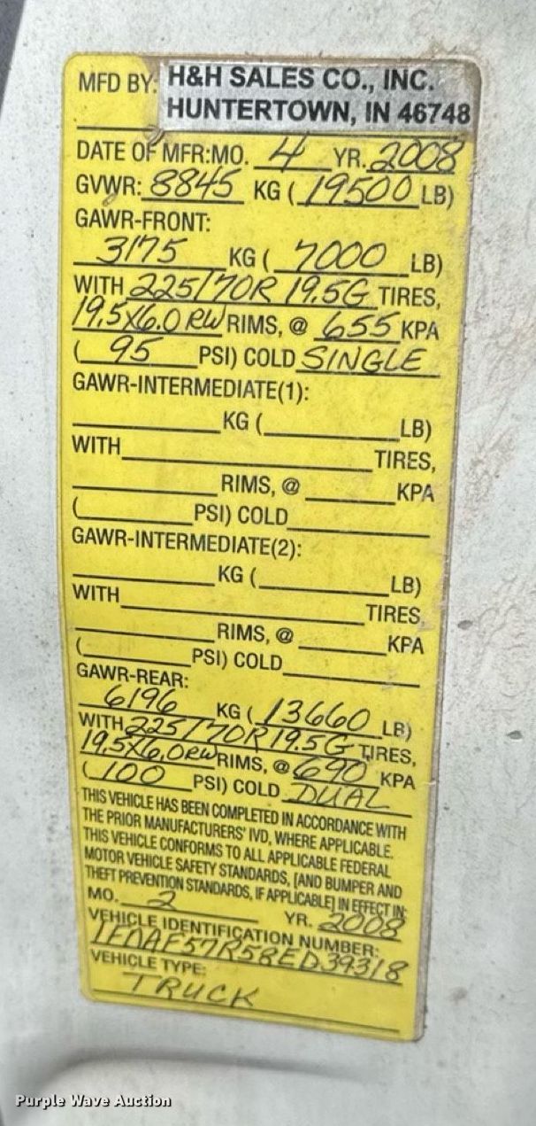 - VIN: 1FDAF57R58ED39318