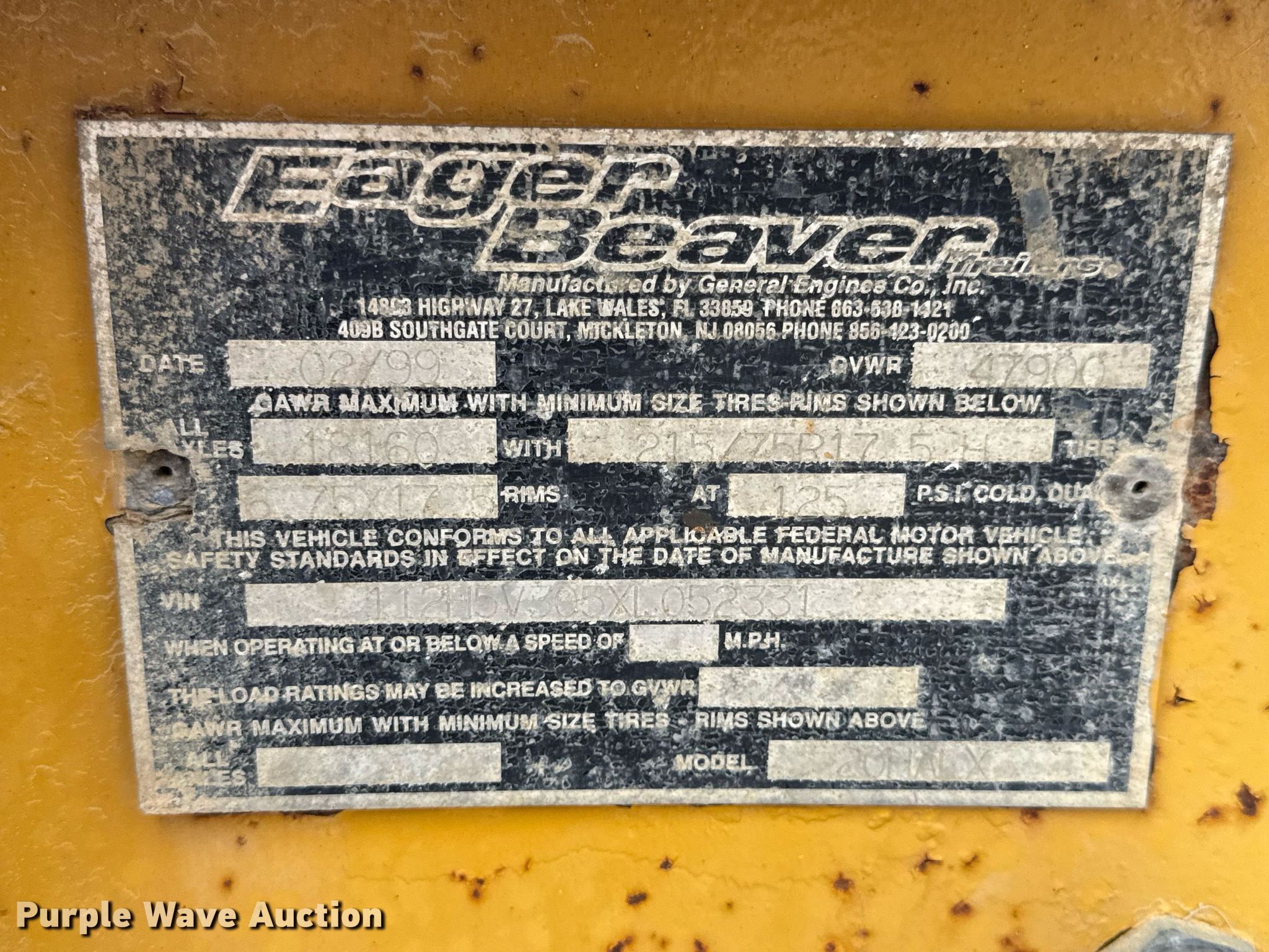 Take a look at this used 1999 Eager Beaver 20HALX equipment trailer being sold on September 25th, 2025 in the SOLD! September 25 Construction Equipment Auction made by Eager Beaver. Take a look at all of the item information below or take a look at similar auctions for Trailers.