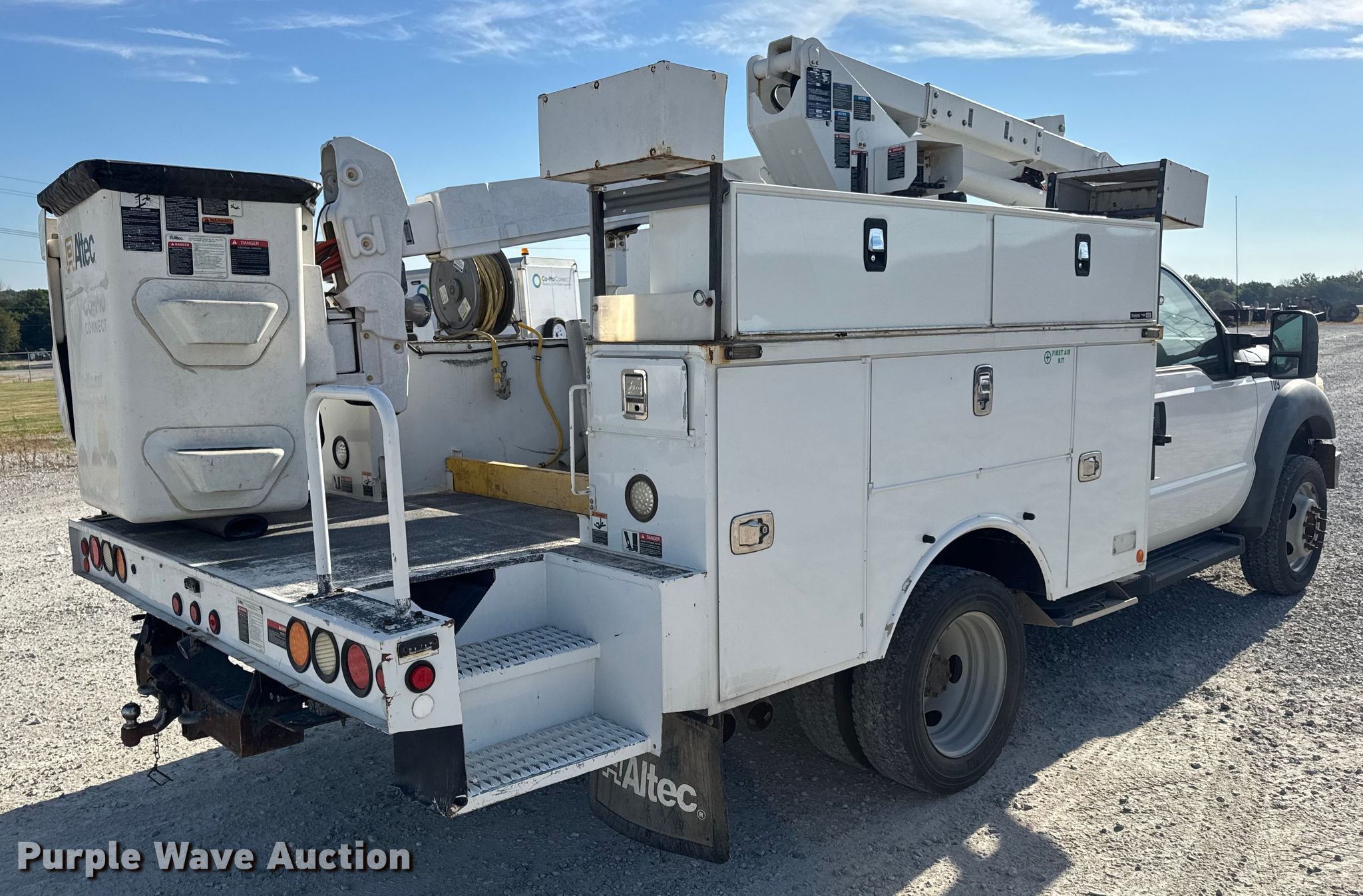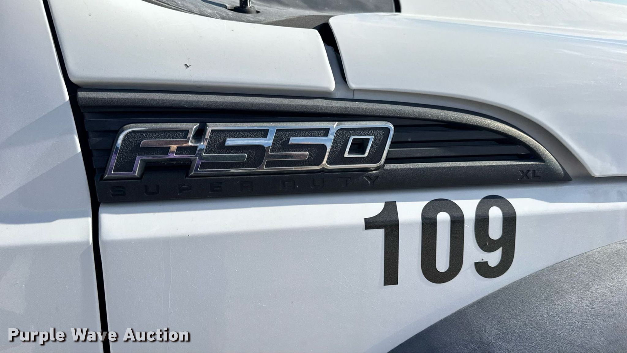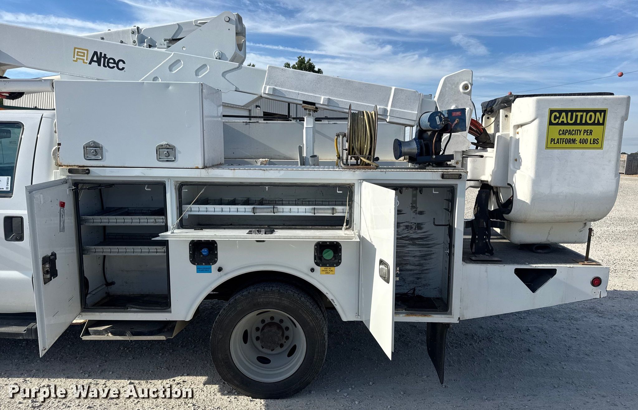 2015 Ford F550 Super Duty XL bucket truck. Miles: 123,885 on odometer, VIN: 1FDUF5HT5FEB26759, Unit #: 109. Engine Displacement: 6.7L, Cylinders: 8, Fuel type: Diesel. Transmission Automatic. Chassis Four wheel drive, Axles: Single, Suspension: Spring, Brakes: Hydraulic, PTO, GVWR: 18,000 lbs. Interior AC, Heat, Cruise control, Backup camera, Auxiliary controls, Brake controller. Features Bed Utility bed, Altec, Serial: 856-33152089, Length: 11' 8", Width: 94", Boom Altec AT37G, Serial: 1014DE17129, Mast height: 37.5', Maximum lift capacity: 400 lbs, Boom type: Articulating, Insulated, Telescopic, Man basket, Boom controls Ground, Platform/ basket, Certification valid through: 03/2026. Tires Size: 225/70R19.5. Notes Windshield chipped or cracked. Missouri prior salvage motor vehicle title. Title distribution may be delayed up to 14 days from verification of funds. Co-Mo Electric Cooperative. Tipton, MO 65081
