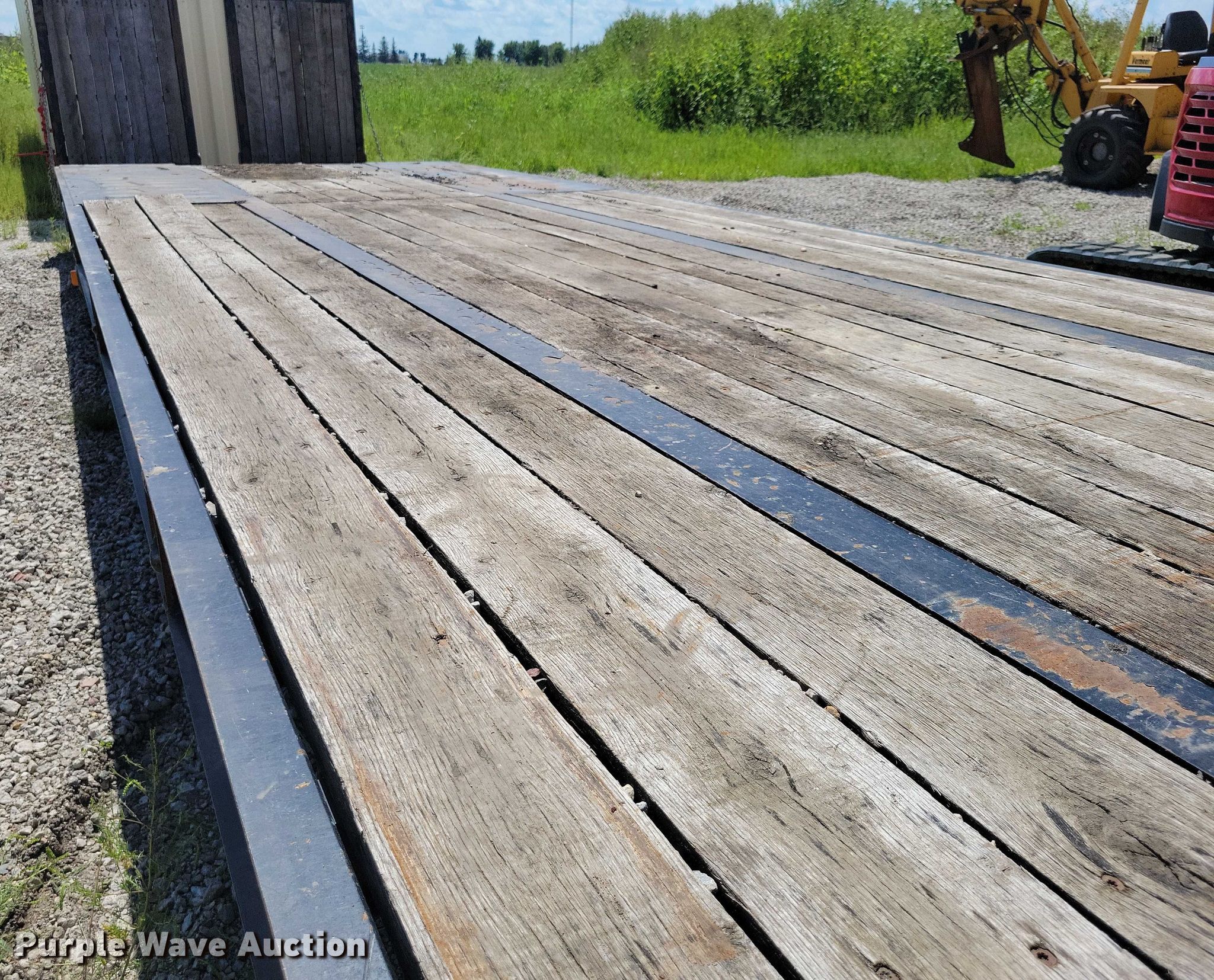 2017 B-B Trailers FB8X31TPT equipment trailer. VIN: 4L5FB3621HF040444. Dimensions Overall Length: 38', Width: 102", Deck Length: 24', Width: 102", Deck height: 36", Tail length: 7', Ramps: Air Length: 68". Features Deck type: Wood. Chassis Hitch: Pintle, Landing gear: Dual, Suspension: Spring, Brakes: Air, Axles: Tandem, GVWR: 45,000 lbs, GAWR: 22,500 lbs. Tires Steel wheels, Size: 235/75R17.5. Iowa title. Title distribution may be delayed up to 14 days from verification of funds. Martin Hildreth Co. Rockwell City, IA 50579
