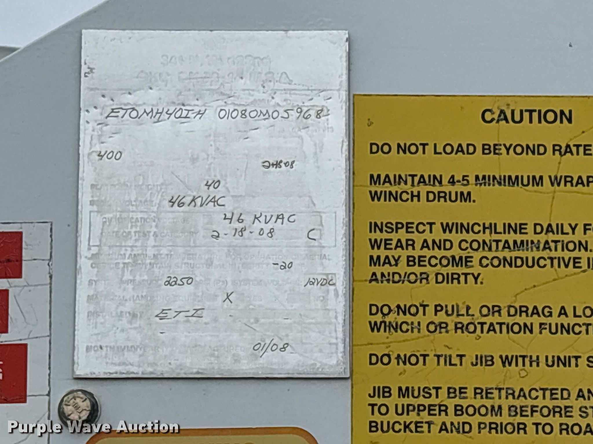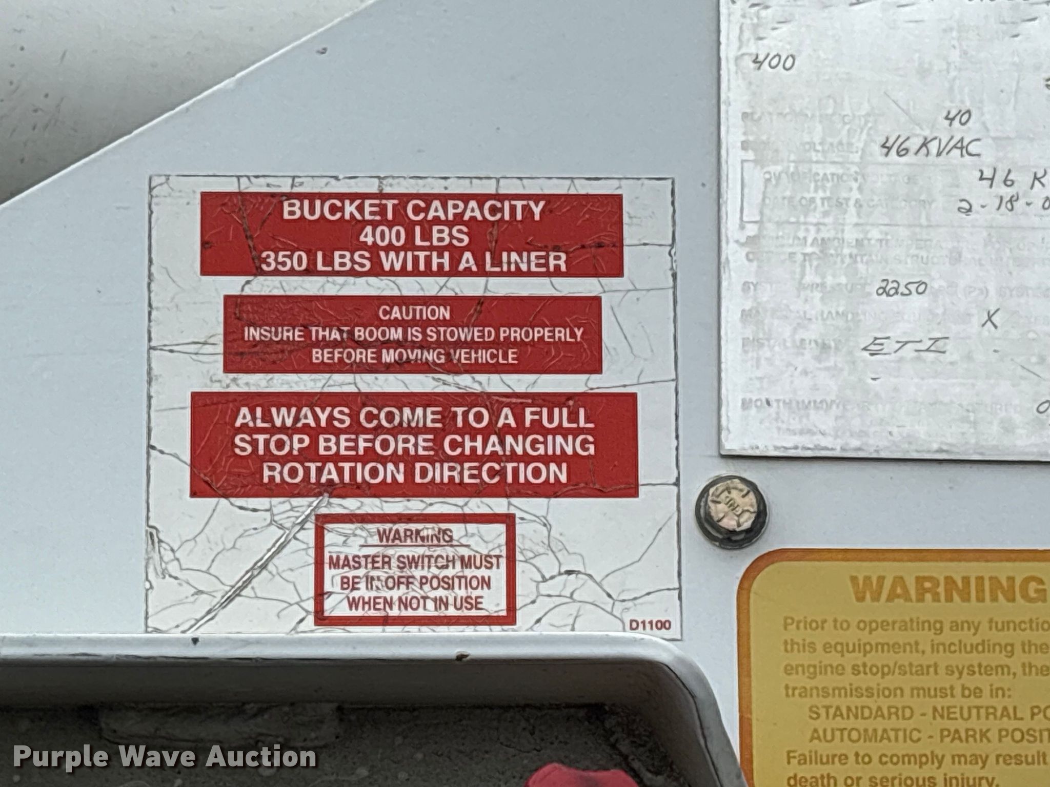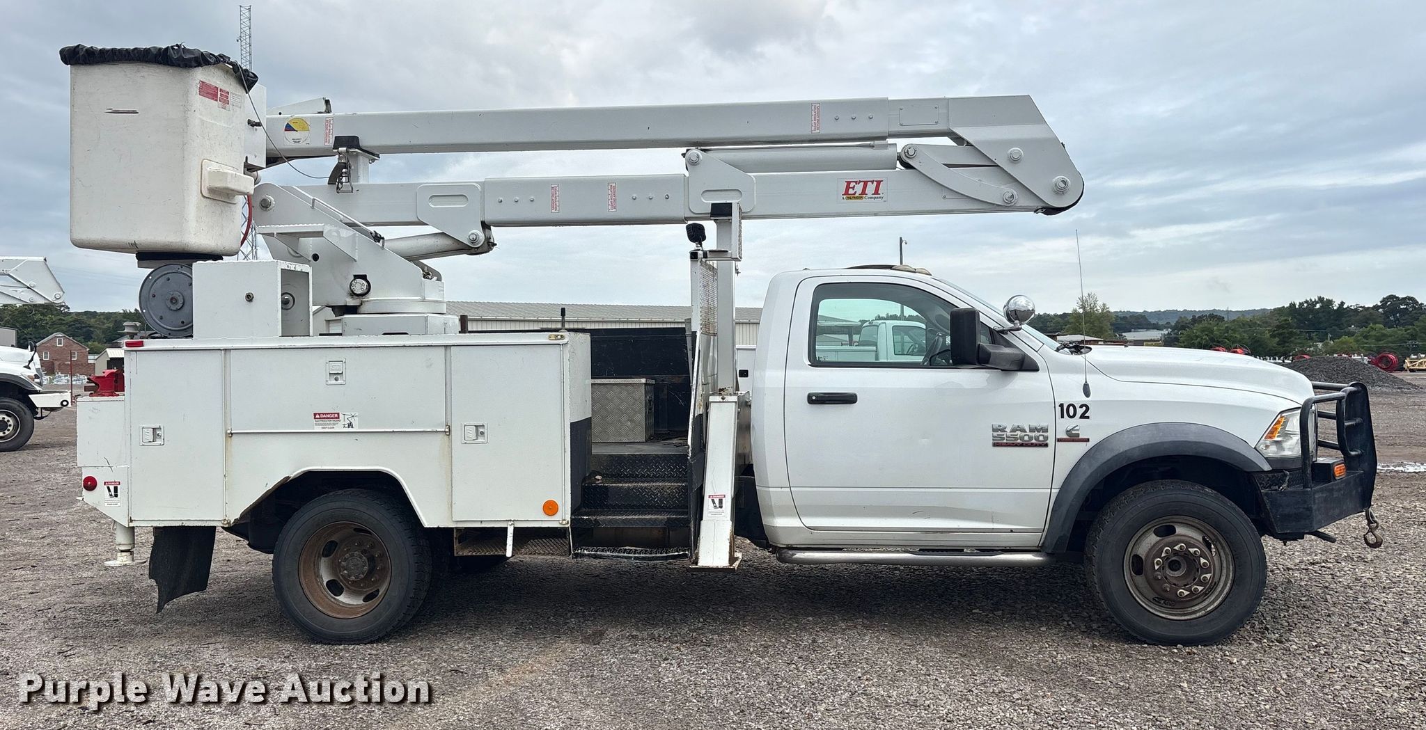 2013 Dodge Ram 5500 bucket truck. Miles: 218,649 on odometer, VIN: 3C7WRNBL7DG524285, Unit #: 102. Engine Cummins, Displacement: 6.7L, Cylinders: 8, Fuel type: Diesel. Transmission Automatic. Chassis Four wheel drive, Axles: Single, Suspension: Spring, Brakes: Hydraulic, PTO, GVWR: 19,500 lbs. Interior AC, Heat, Cruise control, Brake controller. Features Bed Utility bed, ETI 58122ET0MH, Serial: 11155, Length: 11', Width: 7' 10", Boom 2008 ETI ET0MH40IH, Serial: 01080M05968, Boom length: 40', Mast height: 46', Maximum lift capacity: 40 lbs, Boom type: Articulating, Insulated, Man basket, Boom controls Ground, Platform/ basket, Material handler. Tires Size: 245/70R19.5. Notes Dash warning indicator: Check engine. Arkansas title. Title distribution may be delayed up to 14 days from verification of funds. Arkansas Valley Electric Cooperative Corp.. Ozark, AR 72949