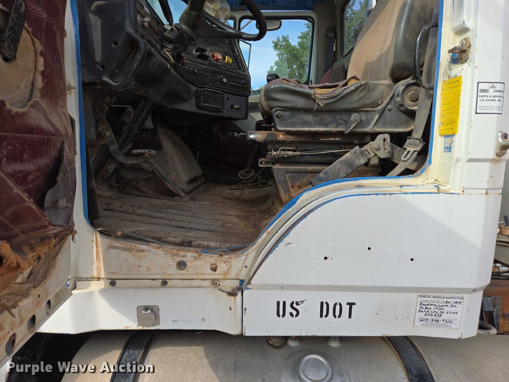 1989 Freightliner FLC11264 water truck. Miles: 170,278 on odometer, VIN: 1FUPZSYB4KH442881. Engine Caterpillar 3406B, Serial: 4MG59867, Cylinders: 6, Fuel type: Diesel. Transmission Manual, Speed: 10. Chassis Axles: Tandem, Differential lock: Inter-axle, Suspension: Spring over walking beam, Brakes: Air, PTO. Interior Heat, Heated mirrors. Features Bed Tank bed, Length: 15', Width: 7' 6", Capacity: 3,900 gallons, Spray bar: Rear, Side discharge, Top fill, Sight tube, Rear drain: 4". Tires Size: 11R22.5. Notes Interior driver door damage, Window issues, will not close, Non-operational RPM gauge, Non-operational fuel gauge, Windshield chipped or cracked. South Dakota title. Title distribution may be delayed up to 14 days from verification of funds. Zandstra Construction. Rapid City, SD 57701