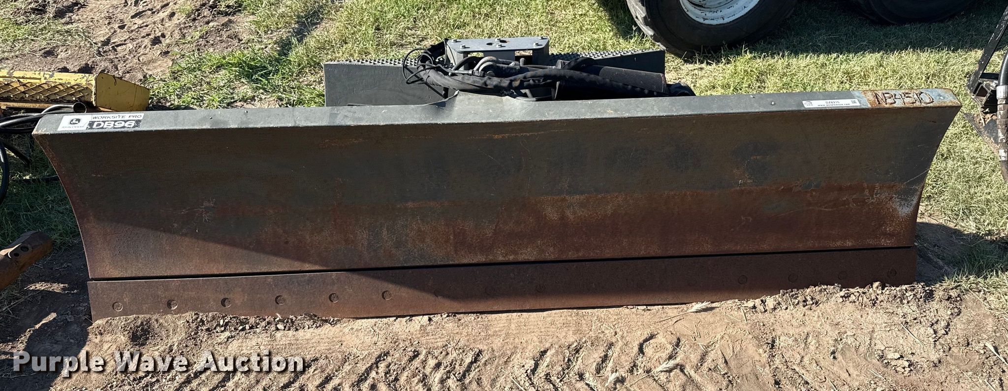Purple Wave is selling a used Skid Steer Attach. in Kansas. This item is a John Deere DB96 skid steer dozer blade with the following: Serial: T0DB96X110059, Width: 96"