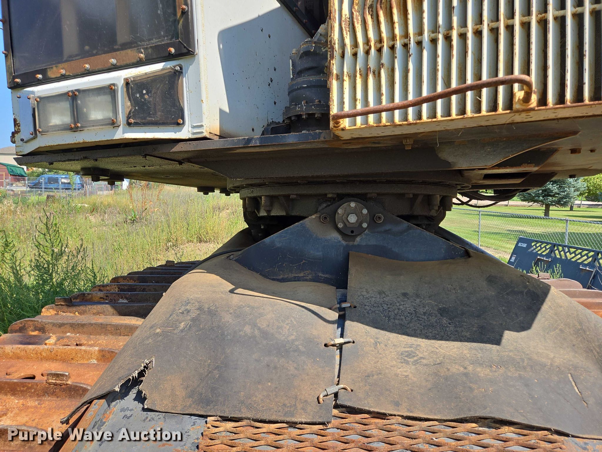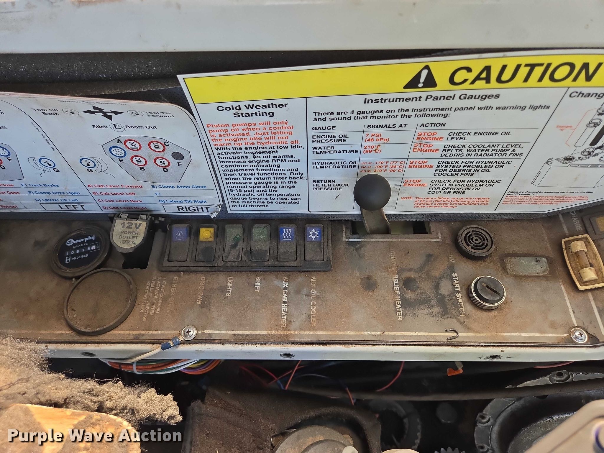 Timbco T425-D tree harvester. Hours: 10,874 on meter, Serial: AT4C-1846-090600. Engine Cummins, Cylinders: 6, Fuel type: Diesel. Transmission Hydrostatic. Operators station Enclosed cab, AC, Heat. Features Quadco OFH, Serial: 22414, Blade diameter: 60", Boom Boom length: 13', Boom type: Articulating, Boom controls: Joystick. Tracks Width: 24", Steel. Notes Hydraulic leak, Track pad missing, Batteries need replaced, Final drive disassembled, but included , Unknown operating condition. Escalante Tree Service. 5816 Leroy Street. Rapid City, SD 57703