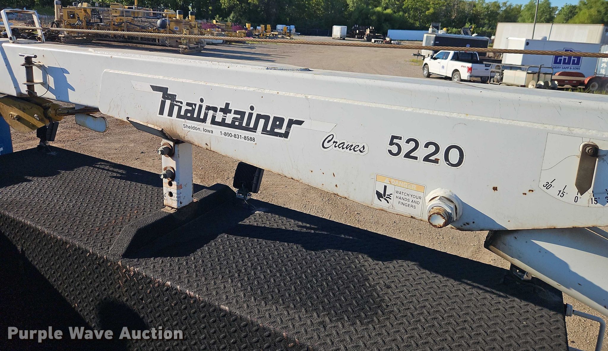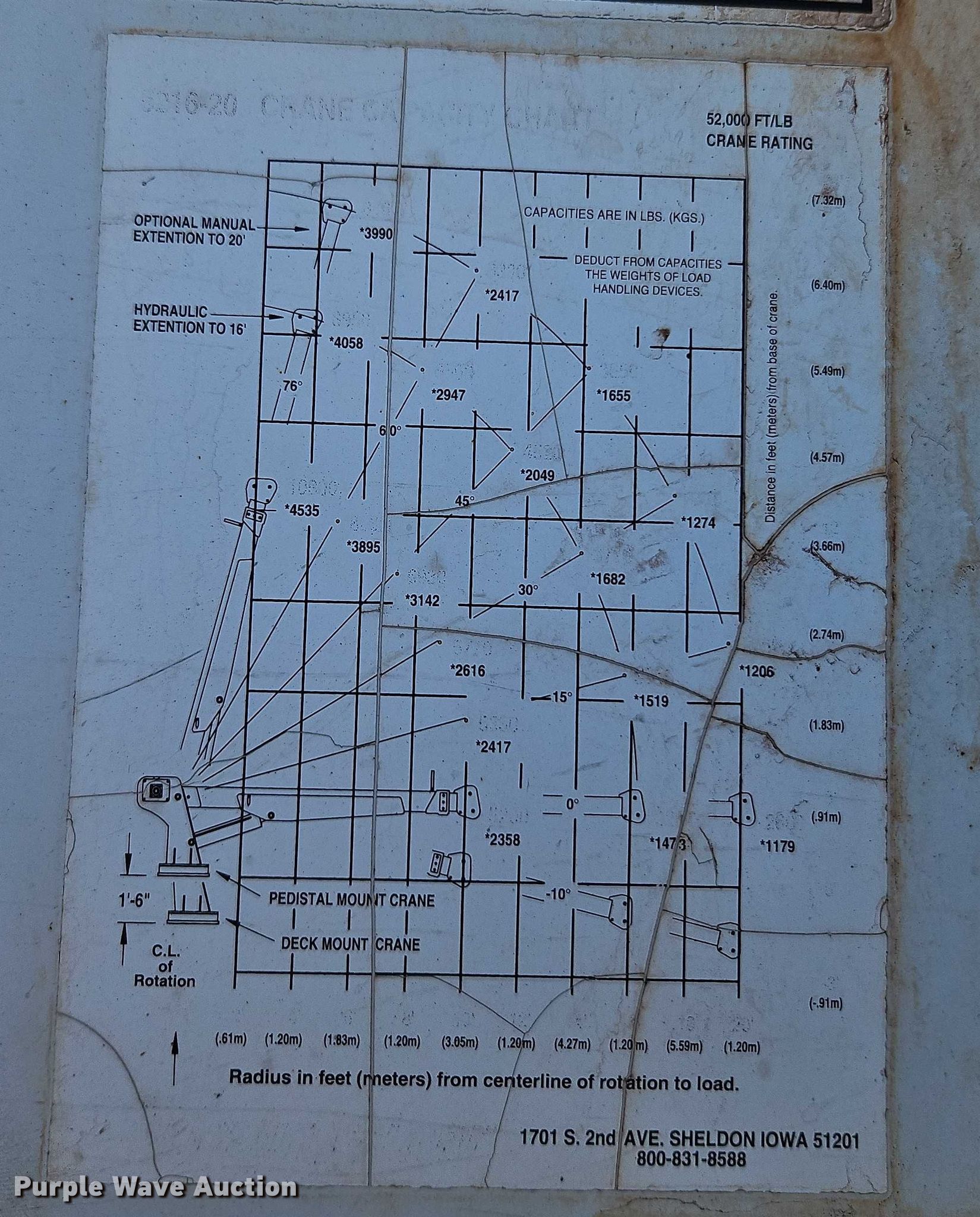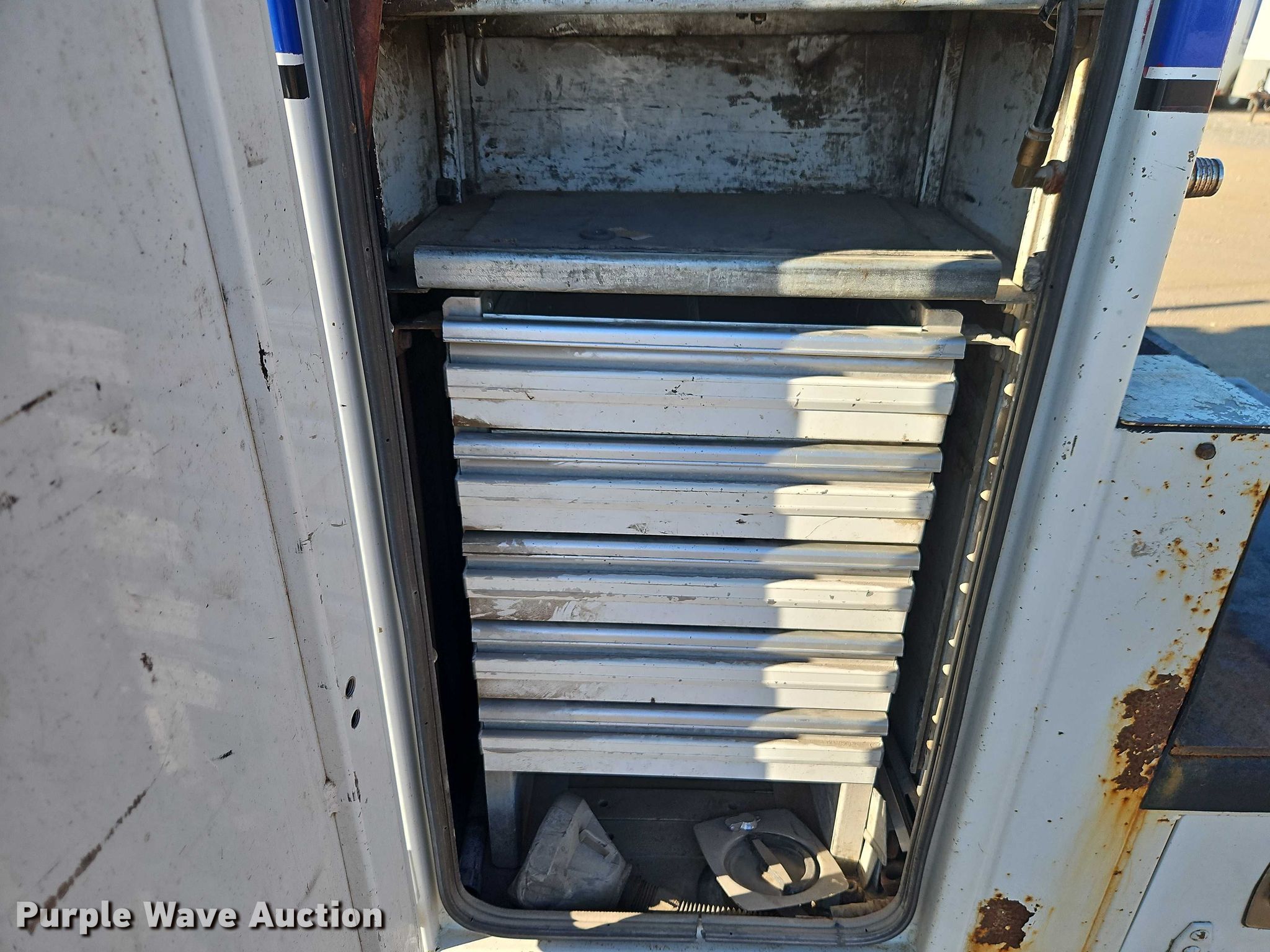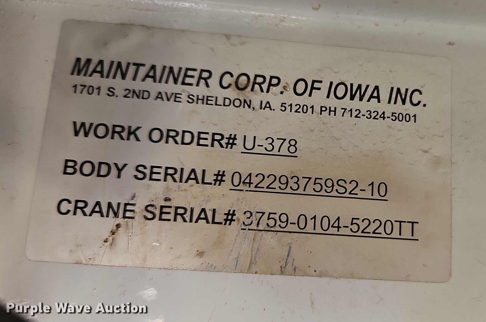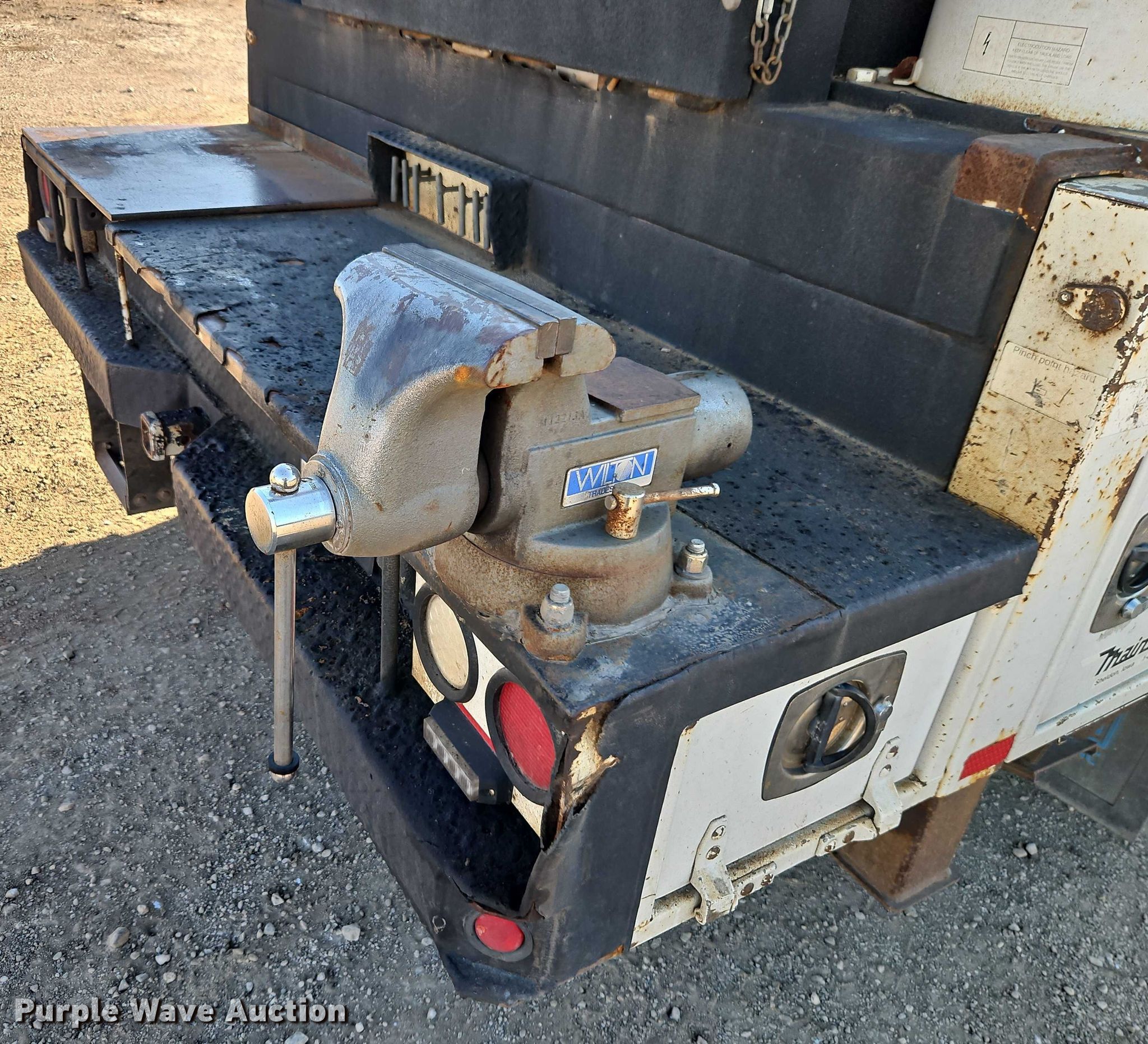 2005 Ford F750 Super Duty XL utility / service truck. Miles: 403,592 on odometer, VIN: 3FRWF75T15V143710, Unit #: 5-147. Engine Caterpillar, Displacement: 7.2L OHV, Cylinders: 6, Fuel type: Diesel. Transmission Manual, Speed: 6. Chassis Axles: Single, Suspension: Spring, Brakes: Air, PTO, Wet kit, GVWR: 25,999 lbs, Wheelbase: 493". Interior AC, Heat, Cruise control, Auxiliary controls. Features Bed Utility bed, Maintainer U-378, Serial: 042293759S2-10, Length: 16' 6", Width: 96", Torch bottle rack, Welder/generator Miller Big Blue 500D, Hours: 854 on meter, Fuel type: Gas, 240V outlets: 1, 120V outlets: 2, Welder type: Leads, Tig, CC, CV, Wire, Stick (AC/DC), Air compressor, Crane Maintainer 5220, Maximum boom length: 20' Maximum lift capacity: 10,000 lbs.. Tires Size: 11R22.5. Notes Dash warning indicator: ABS. Missouri title. Title distribution may be delayed up to 30 days from verification of funds. Emery Sapp & Sons, Inc.. Bucyrus, KS 66013