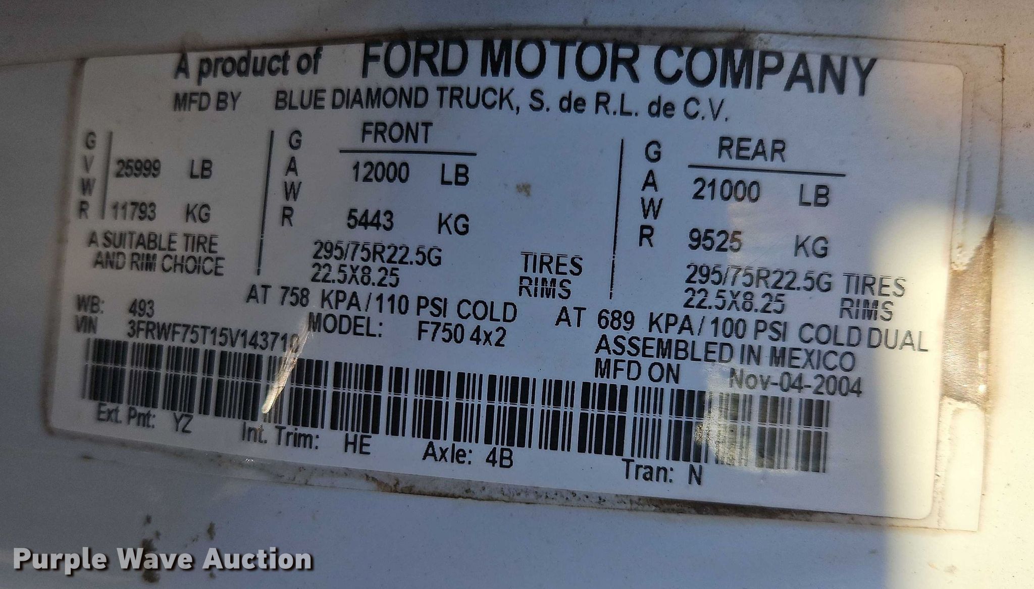 Purple Wave is selling a used Service Truck in Kansas. This item is a 2005 Ford F750 Super Duty XL utility / service truck with the following: Miles: 403,592 on odometer, VIN: 3FRWF75T15V143710, Unit #: 5-147