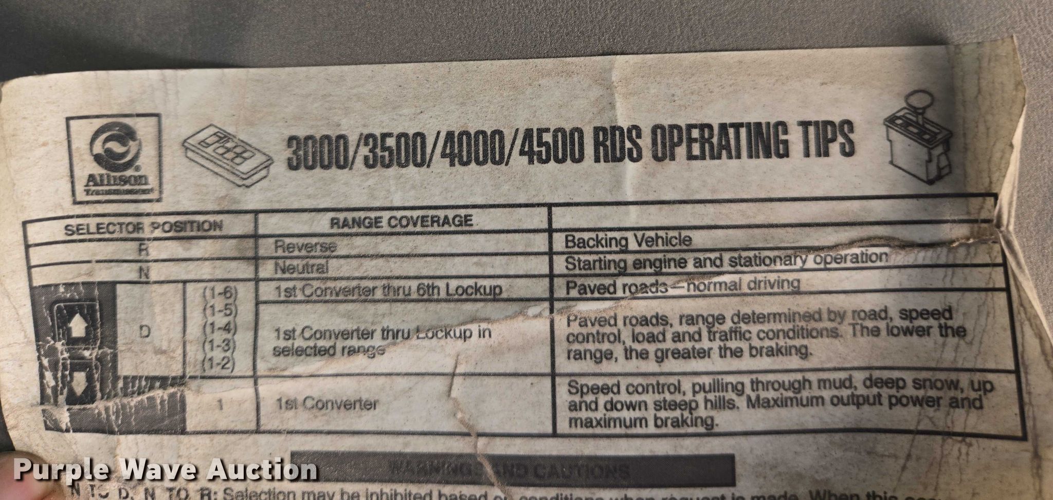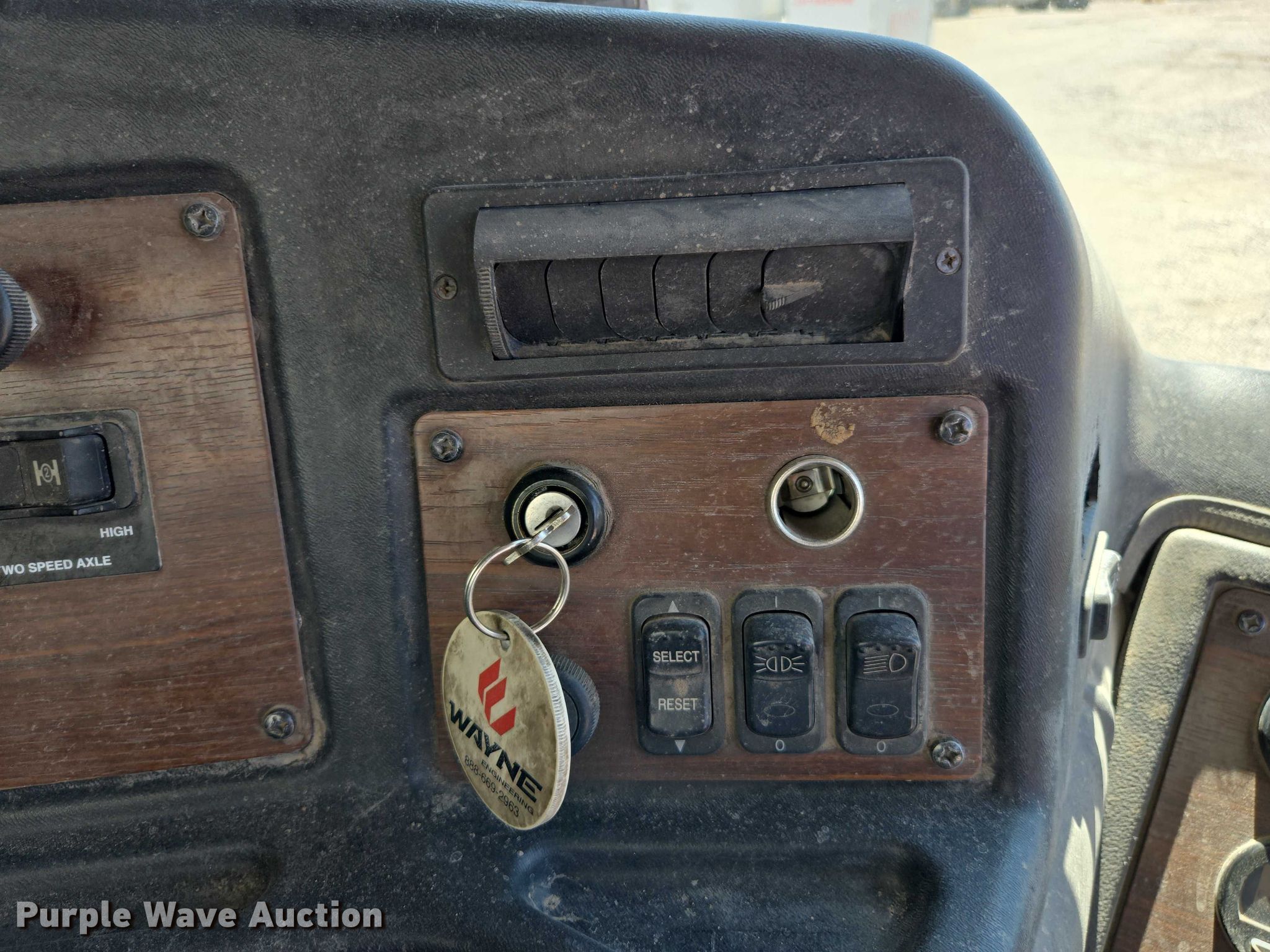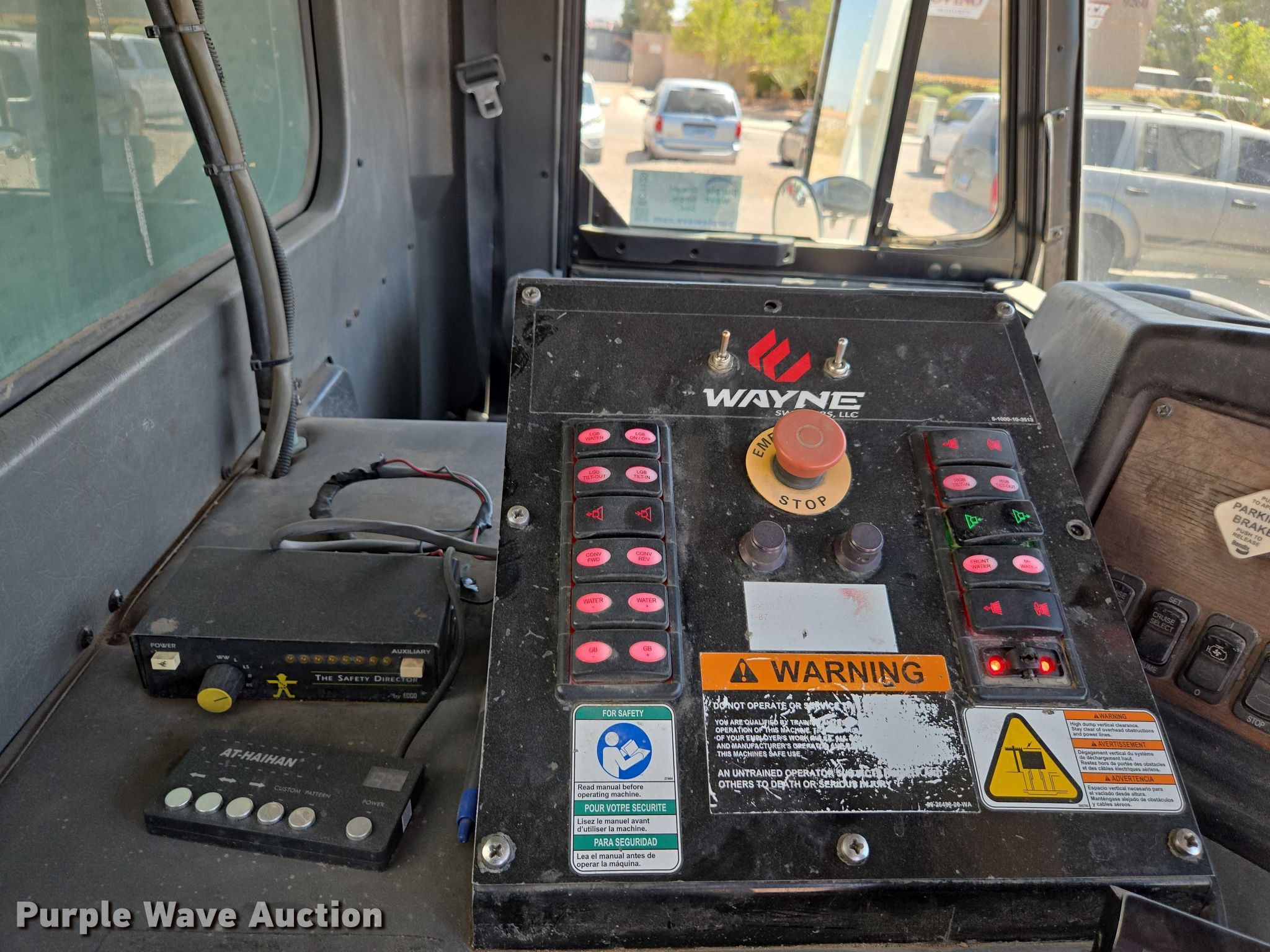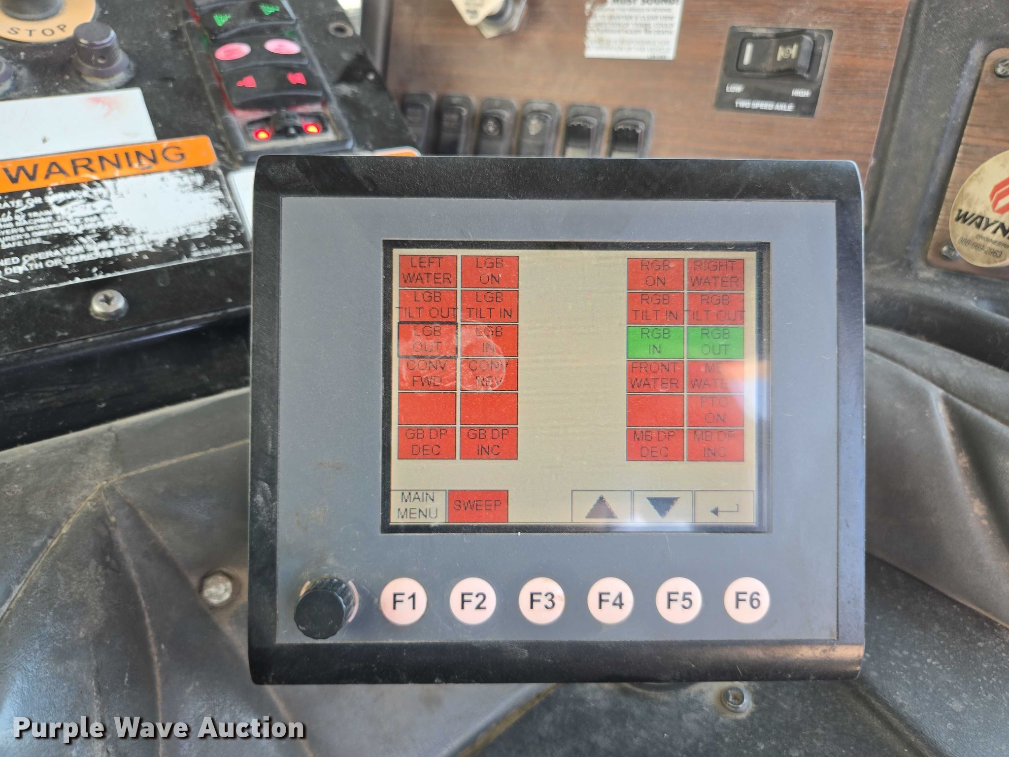 2013 Peterbilt 320 street sweeper truck. Miles: 157,000 on odometer, VIN: 3BPZH58X6DF195950. Engine Cummins ISL, Displacement: 8.9L, Cylinders: 6, Fuel type: Diesel. Transmission Automatic. Chassis Suspension: Spring, Brakes: Air, GVWR: 35,350 lbs. Operators station AC, Heat, Video monitoring system. Features Bed Sweeper bed, Wayne Warrior, Serial: 8007, Length: 13', Width: 87", Sweeper bed type: Conveyor, Broom Width: 66", Left gutter broom Diameter: 36", Right gutter broom Diameter: 36", Water spray system. Tires Size: 11R22.5. Nevada title. Title distribution may be delayed up to 30 days from verification of funds. Topnotch Services, Inc. Las Vegas, NV 89139