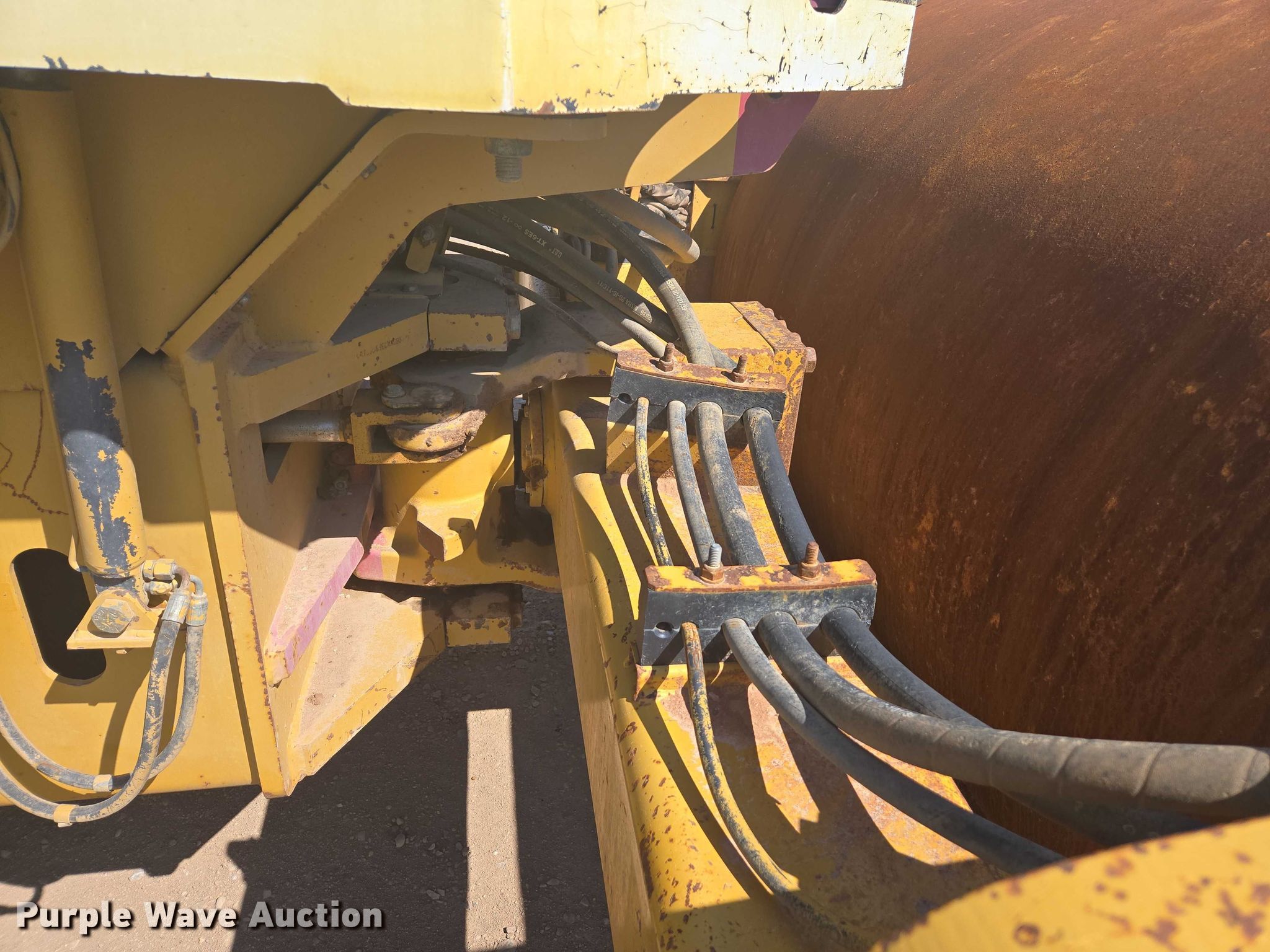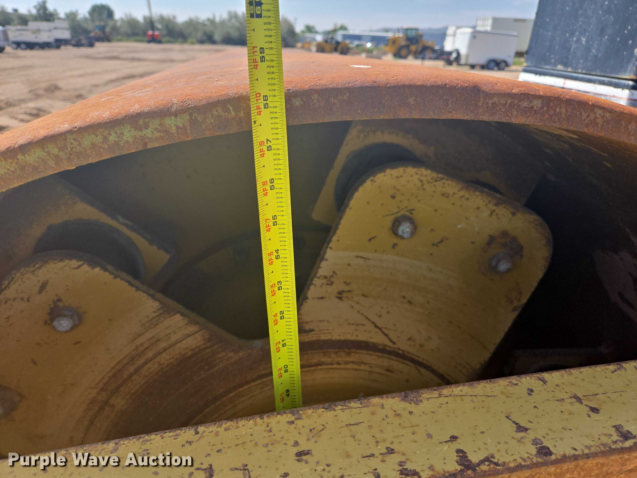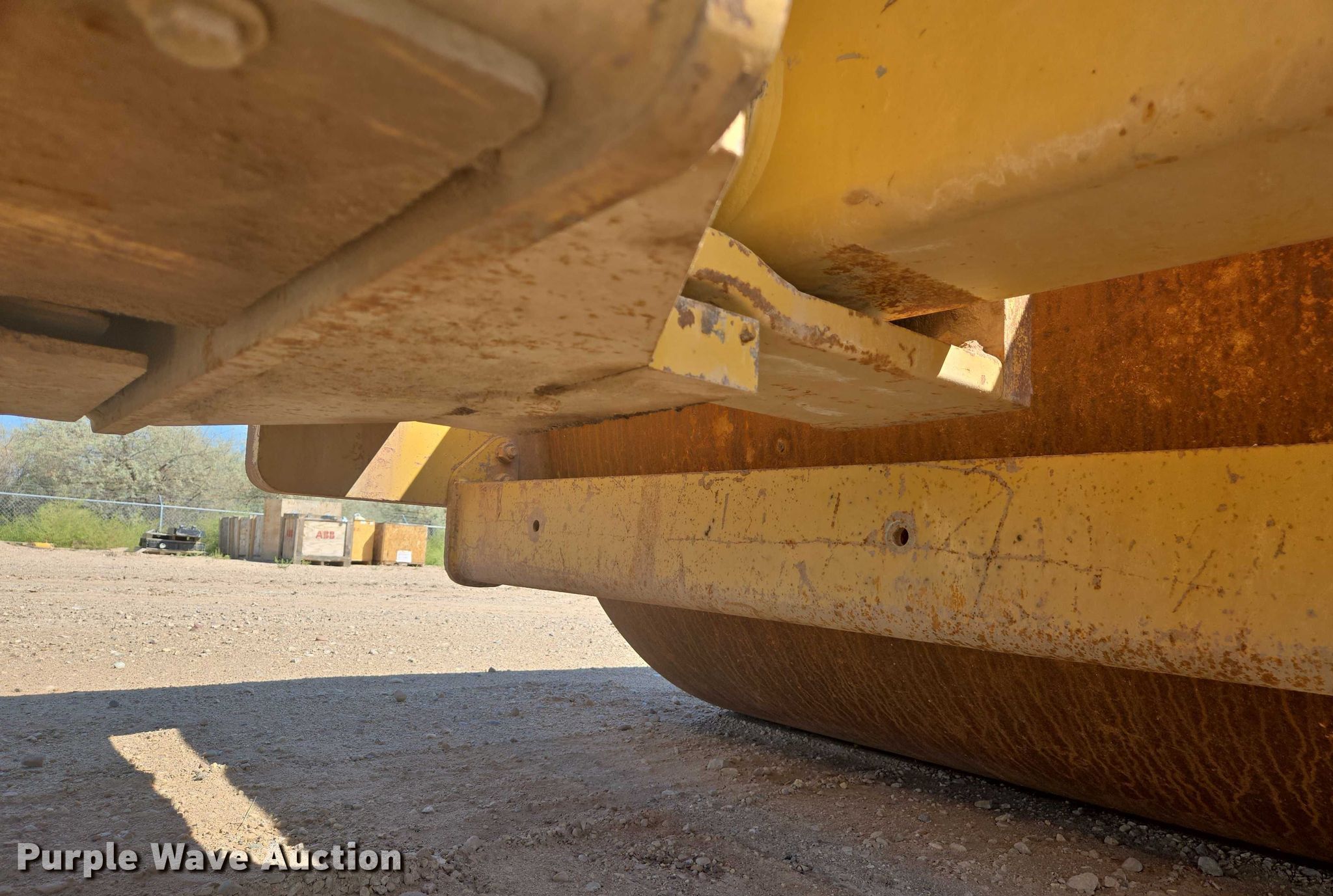 2005 Caterpillar CS-583E single drum vibratory roller. Hours: Unknown, Serial: CATCS583ECNX00332. Engine Caterpillar 356E, Fuel type: Diesel, HP: 150, kW: 112. Transmission Hydrostatic, Two speed travel. Operators station Enclosed cab. Features Drum Drum type: Smooth, Width: 84", Diameter: 60", Drum scrapers. Tires Size: 23.1-26. Notes Non-operational engine, hole in block Parts missing, Non-operational unit. Ponderosa Oil Field Services Inc. Naples, UT 84078