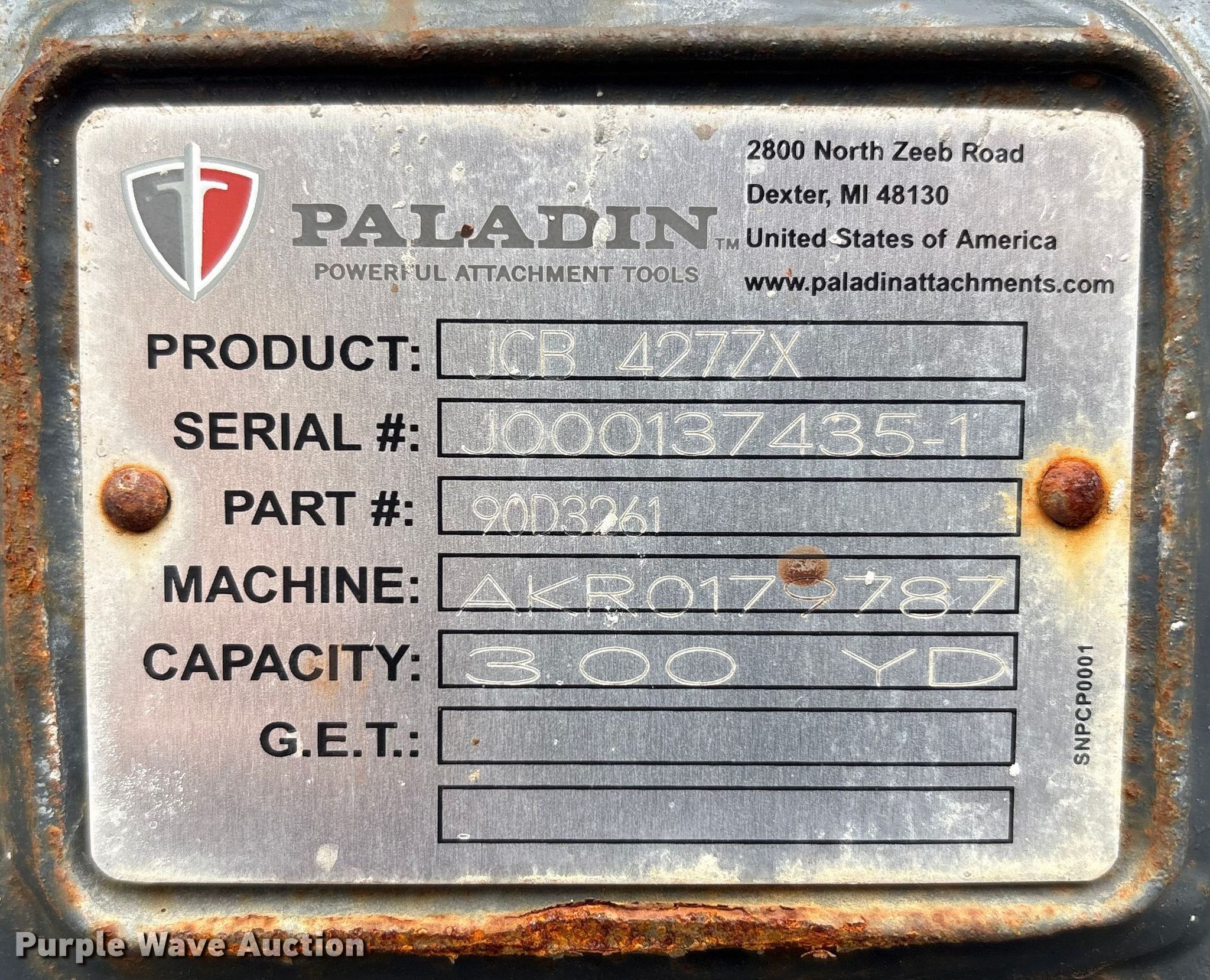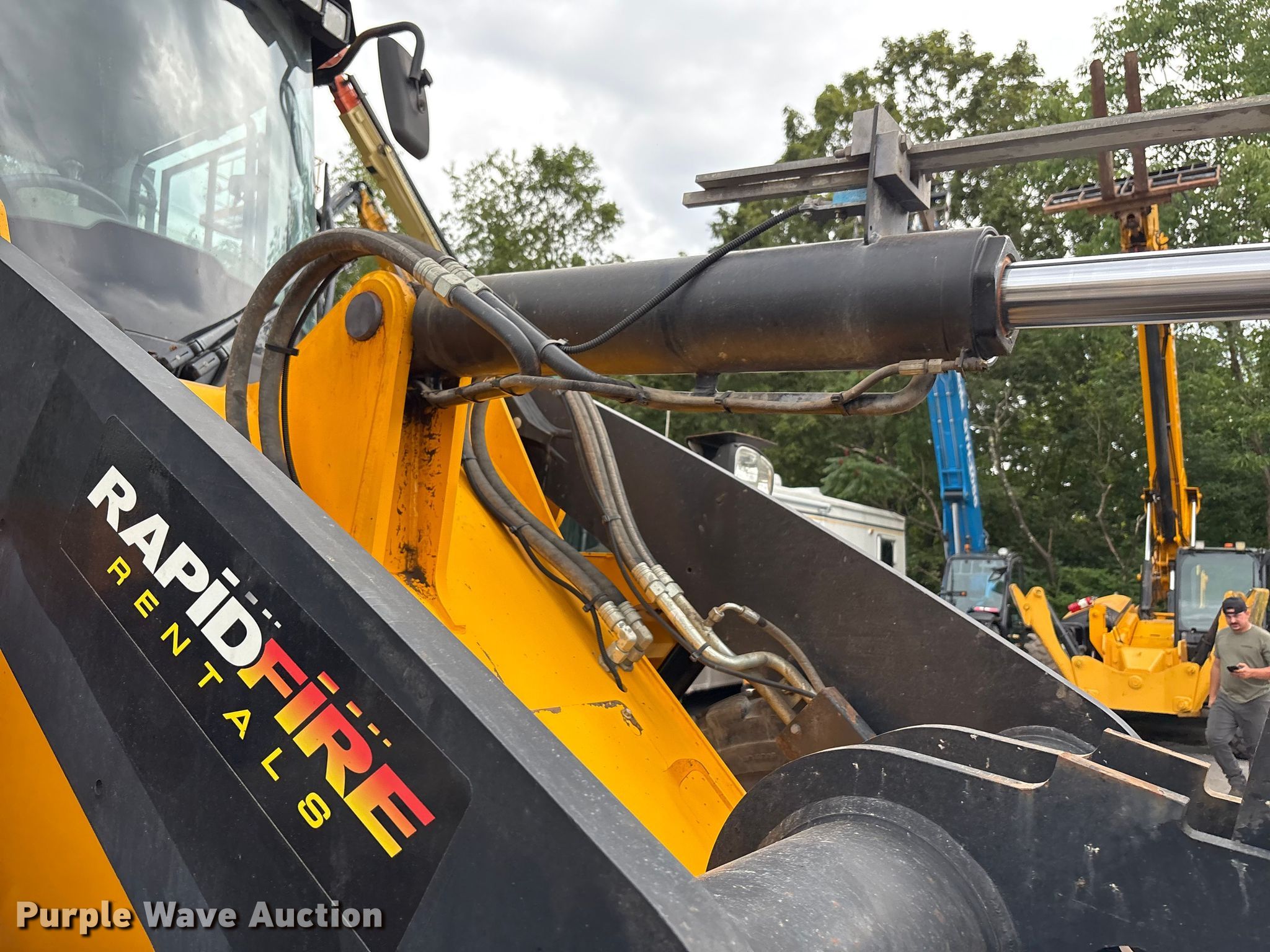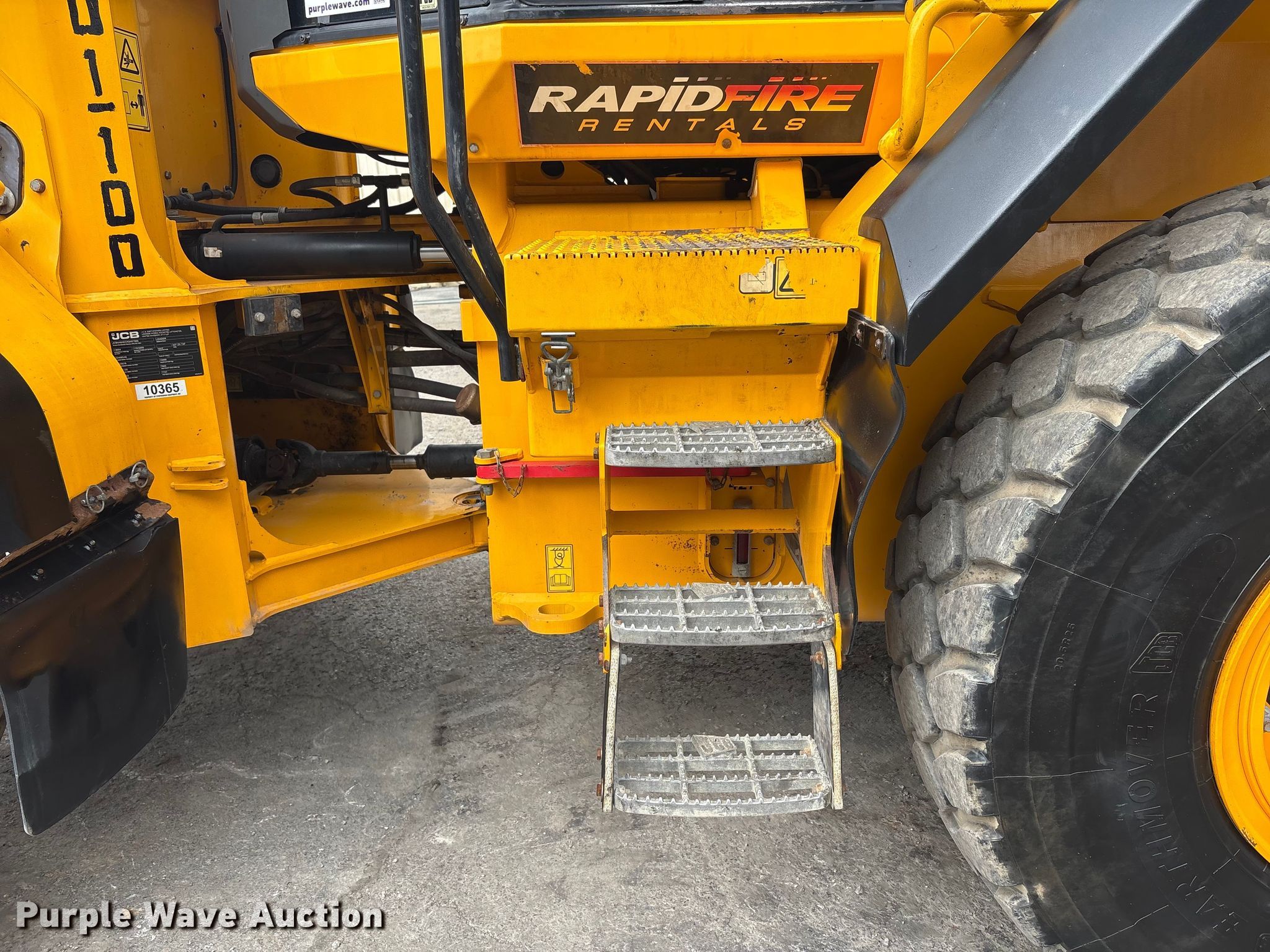 2019 JCB 427ZXT4F wheel loader. Hours: 7,315 on meter, Serial: JCB4A6AECK2407966. Engine Cylinders: 4, Fuel type: Diesel. Transmission Powershift. Operators station Enclosed cab, AC, Heat, Bucket controls: Joystick, Ride control. Features Auxiliary hydraulics: Front, Quick coupler: Hydraulic, Bucket Paladin, Capacity: 3 cu.yd., Width: 106", Cutting edge: Bolt-on. Tires Size: 20.5R25. Rapid Fire Rentals. Coraopolis, PA 15108