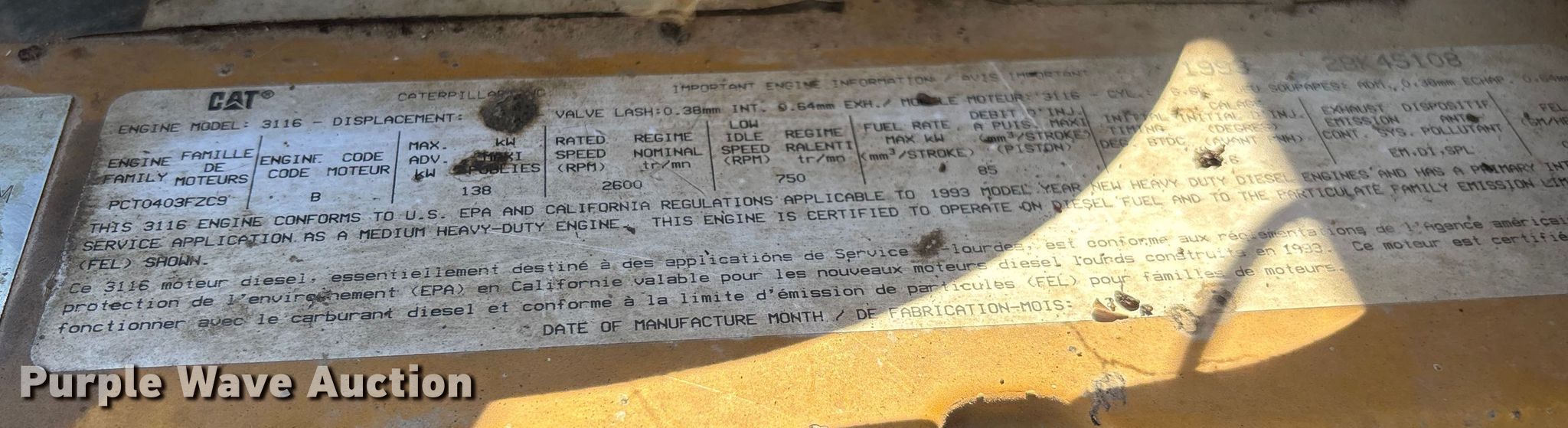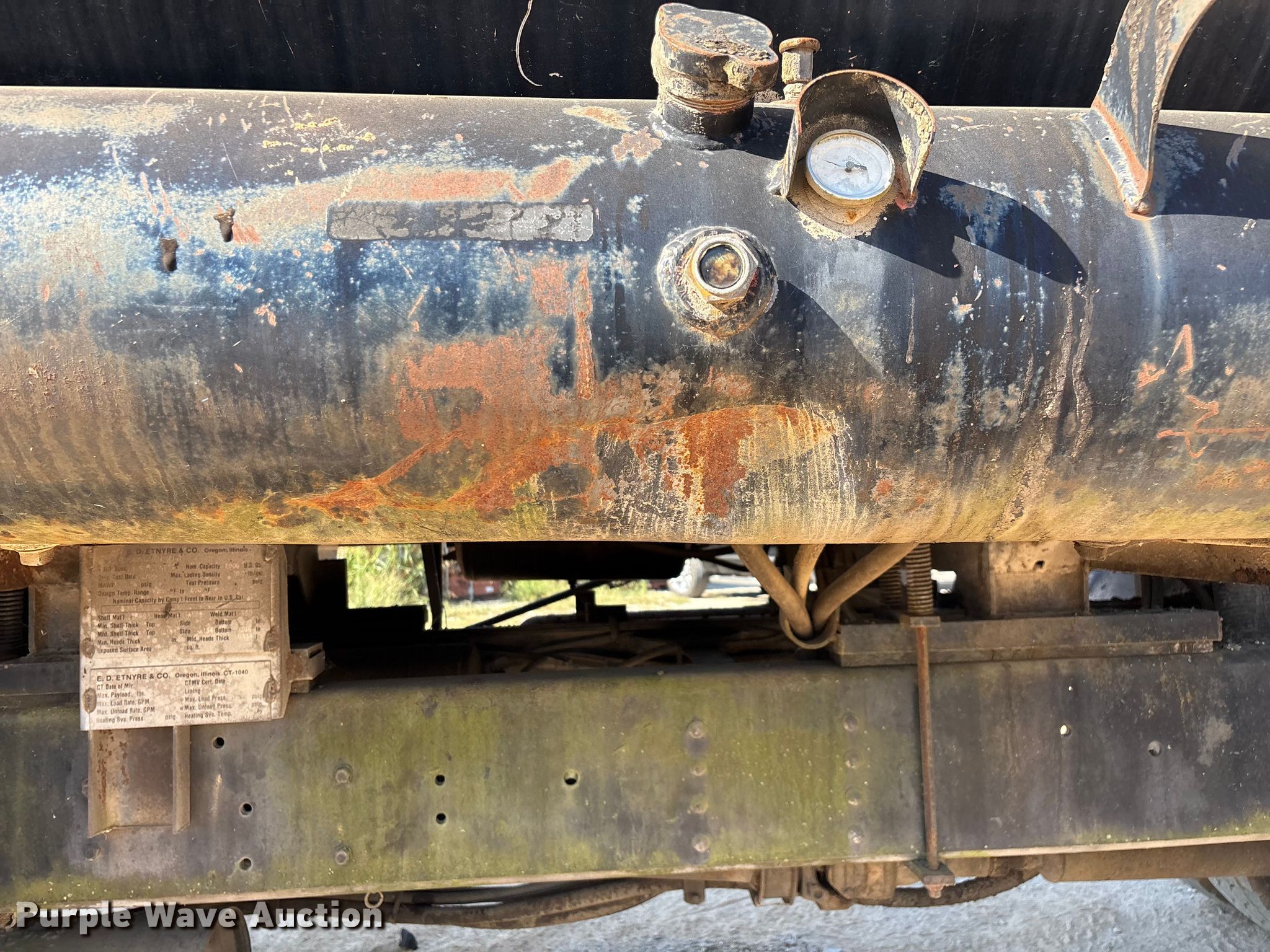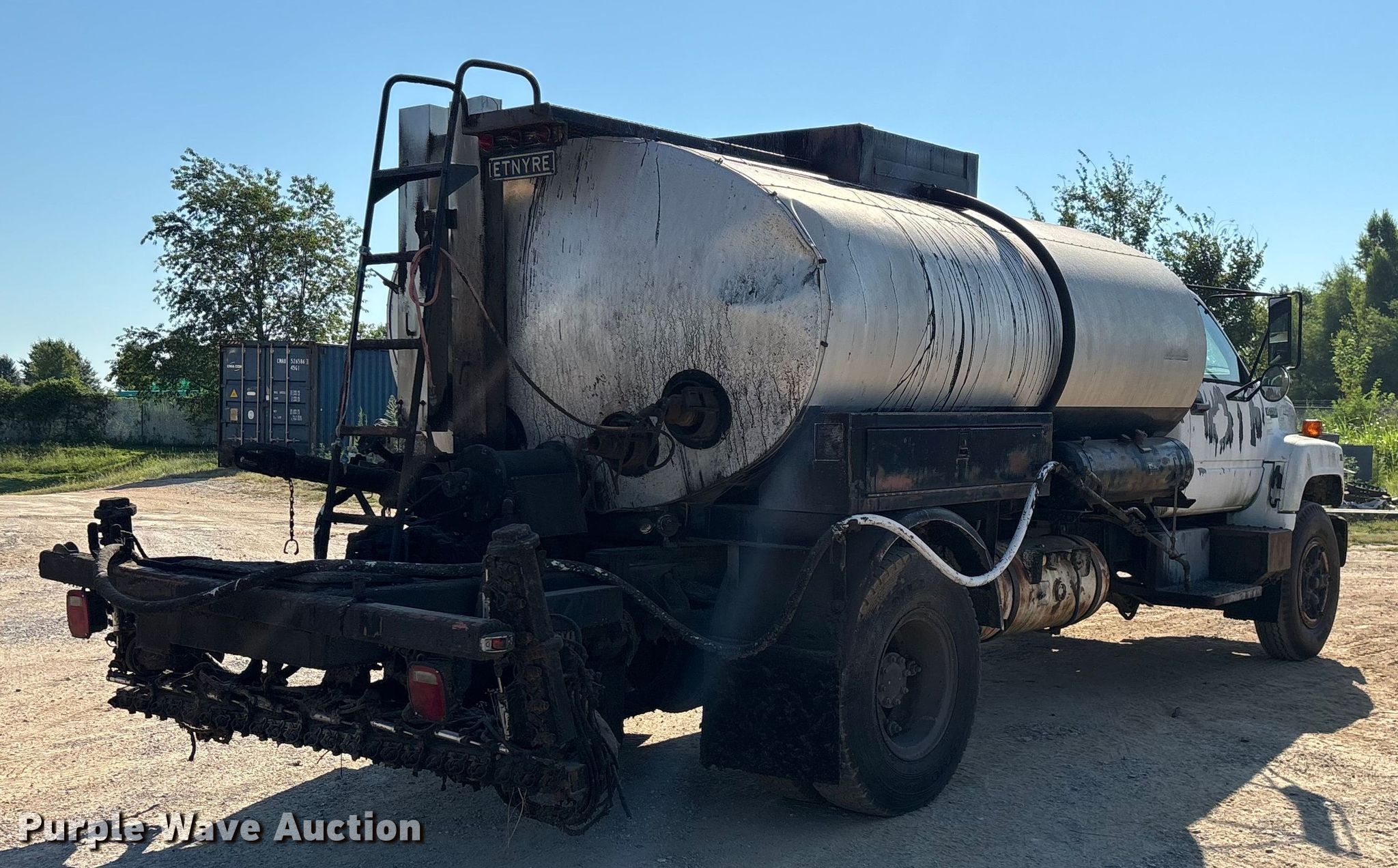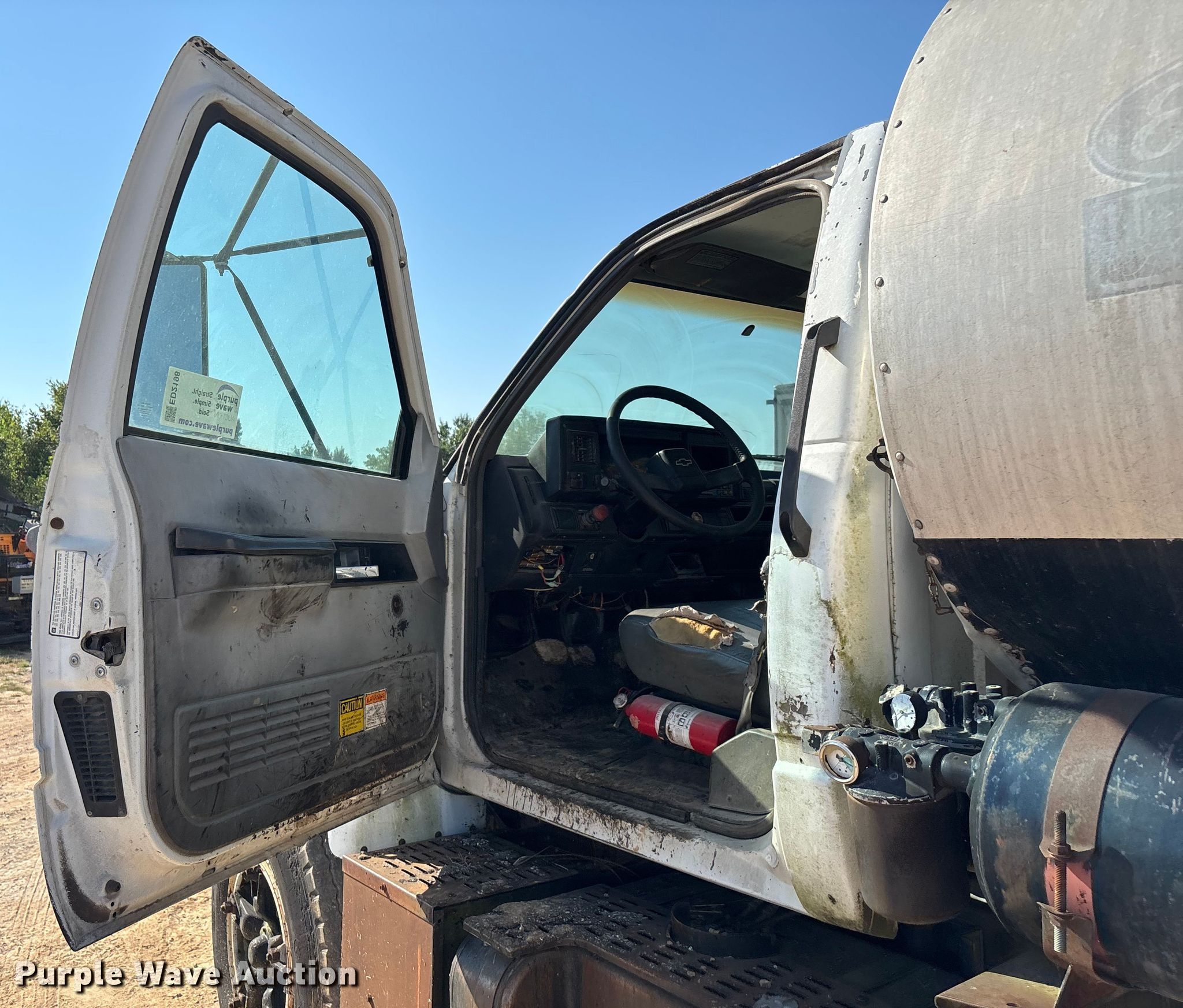 1994 Chevrolet Kodiak C6500 tack distributor truck. Miles: 57,897 on odometer, VIN: 1GBM7H1J1RJ106147, Unit #: 228-10. Engine Caterpillar 3116, Serial: 2BK45108, Displacement: 6.6L, Cylinders: 6, Fuel type: Diesel. Transmission Manual, Speed: 5, plus 2. Chassis Axles: Single, Suspension: Spring, Brakes: Air, PTO, GVWR: 32,000 lbs. Interior AC, Heat. Features Bed Tank bed, Etnyre S-2000, Serial: S-1275, Capacity: 2,000 gallons, Spray bar: Rear, Top fill. Tires Size: 10.00R20. Notes Contents not included, Possible AC issues, may need charged, Unknown operating condition of tack bed, Windshield chipped or cracked, Dead battery, Jump start required during on-site data collection, Speedometer issues, Air leak, Vice grips not included, Contents not included. Arkansas title. Title distribution may be delayed up to 14 days from verification of funds. Grant Garrett Excavating. Rogers, AR 72758